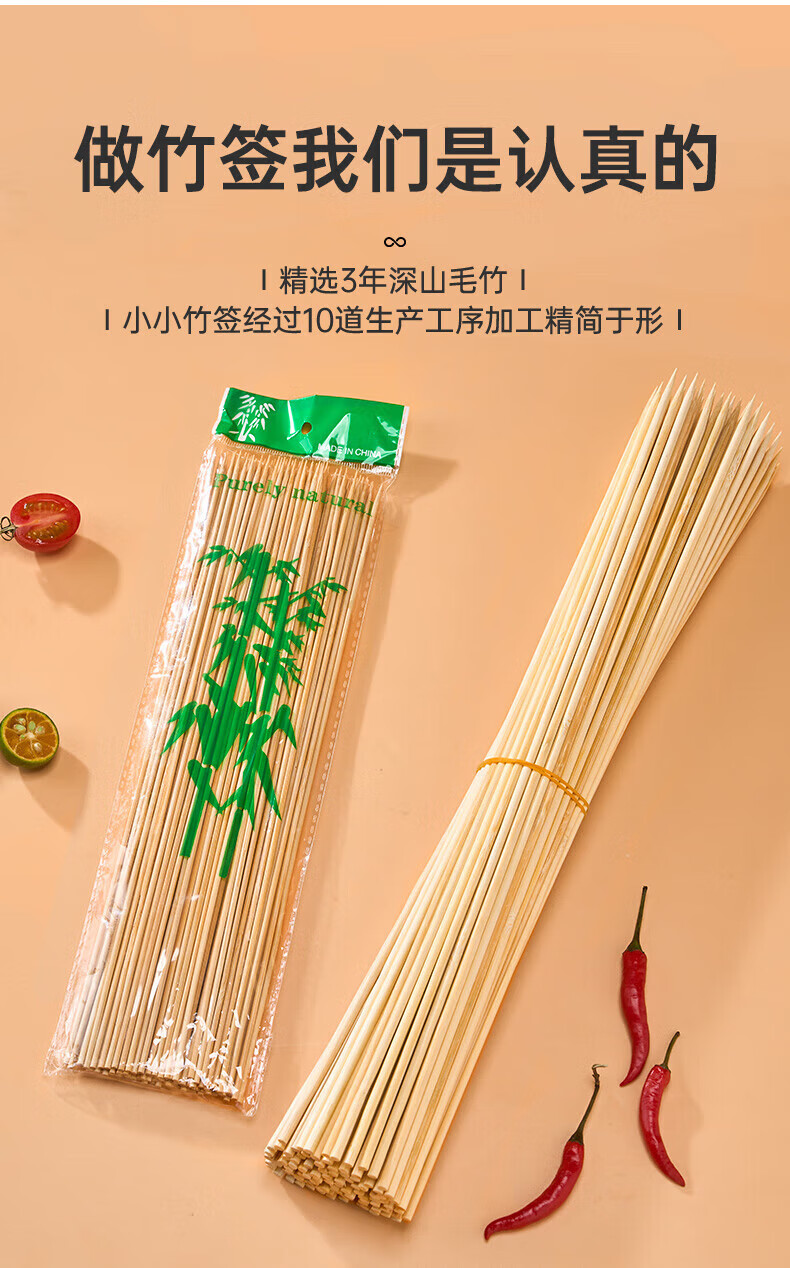 Jingxianju candied haws bamboo skewers 40cm candied haws marshmallow skewers long set full set oden disposable barbecue disposable bamboo skewers two packs 40cm 100 pieces