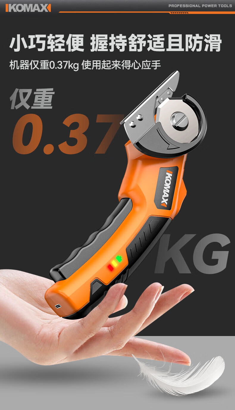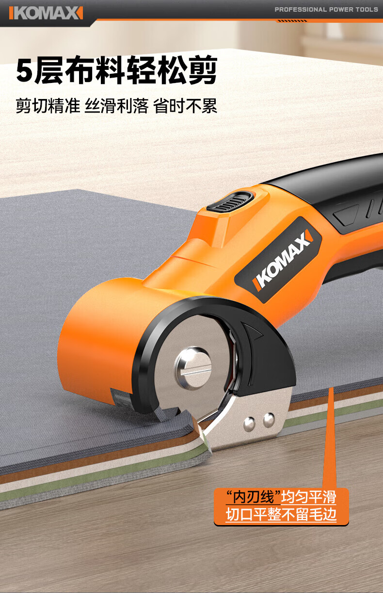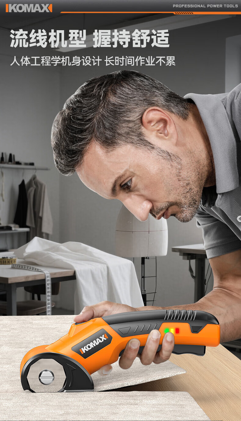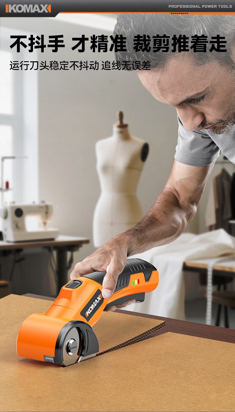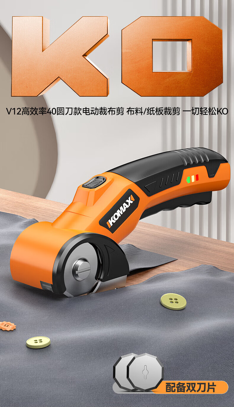 KOMAX electric scissors, cloth cutting artifact, small electric scissors for tailors, clothing fabric cutting machine, electric cutting knife V6 high efficiency 40 round knife style single blade