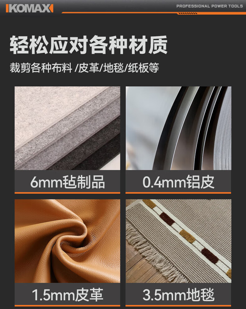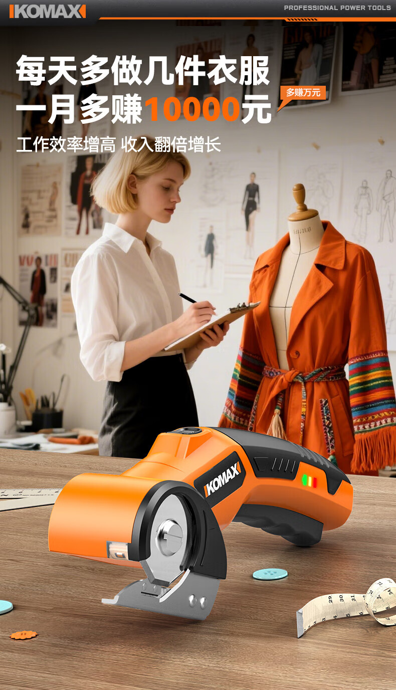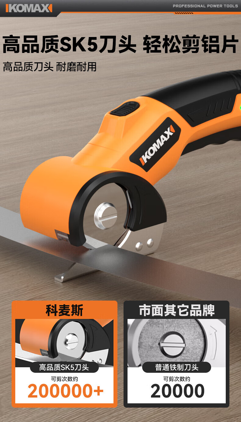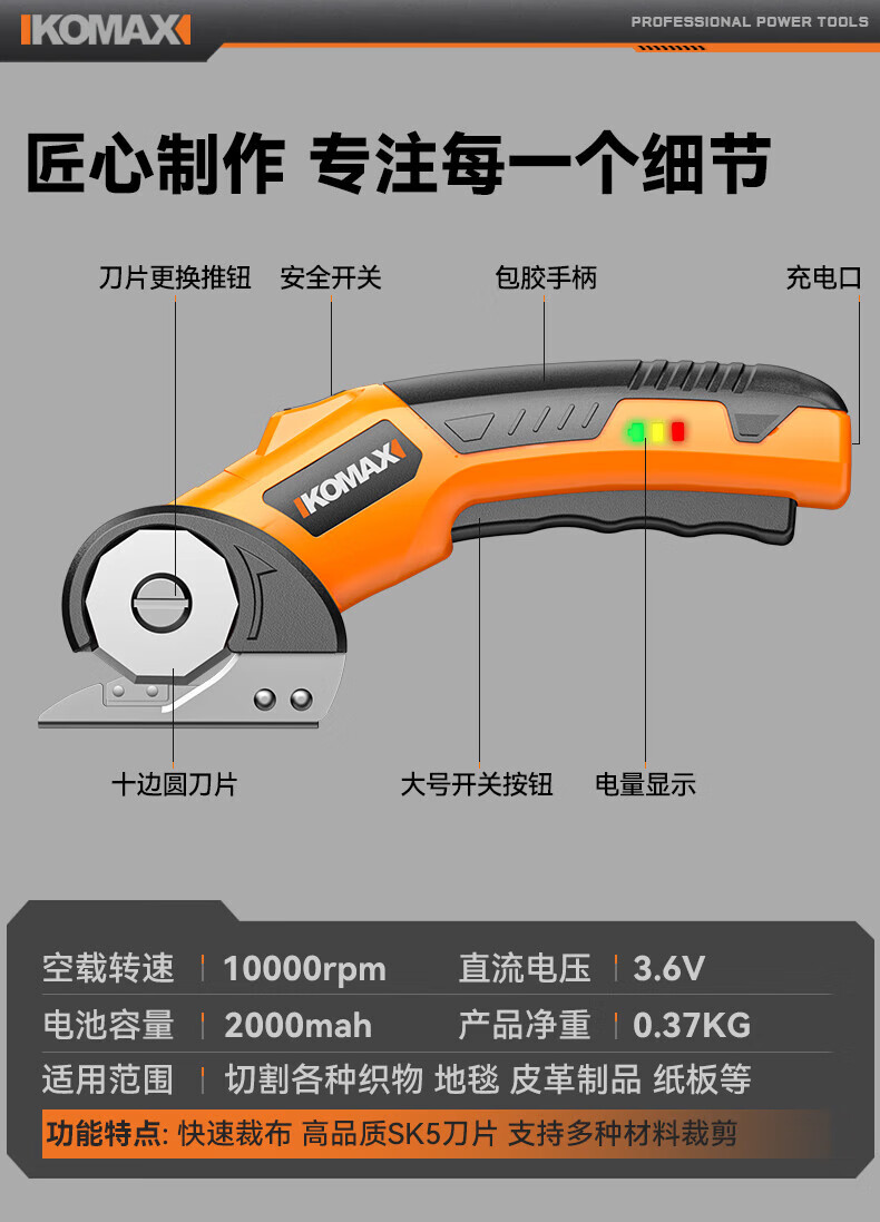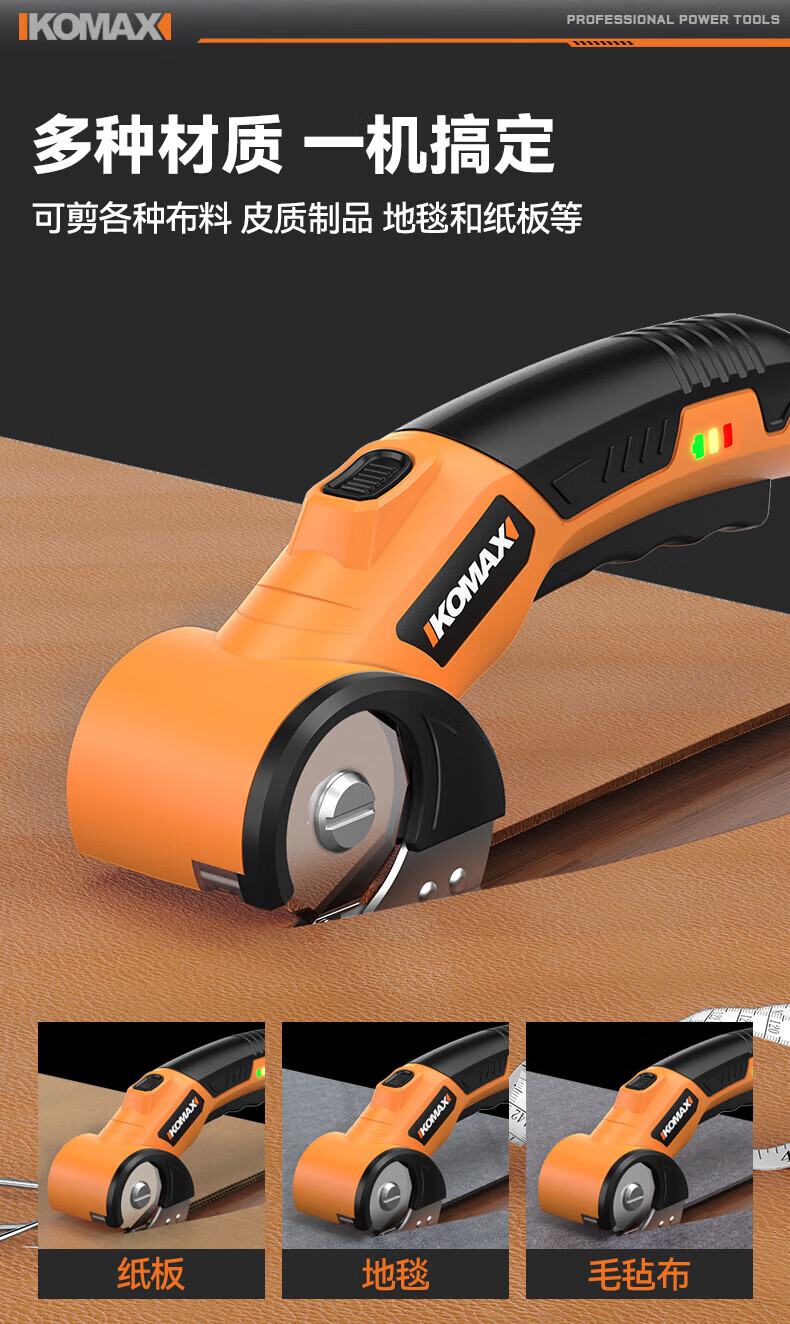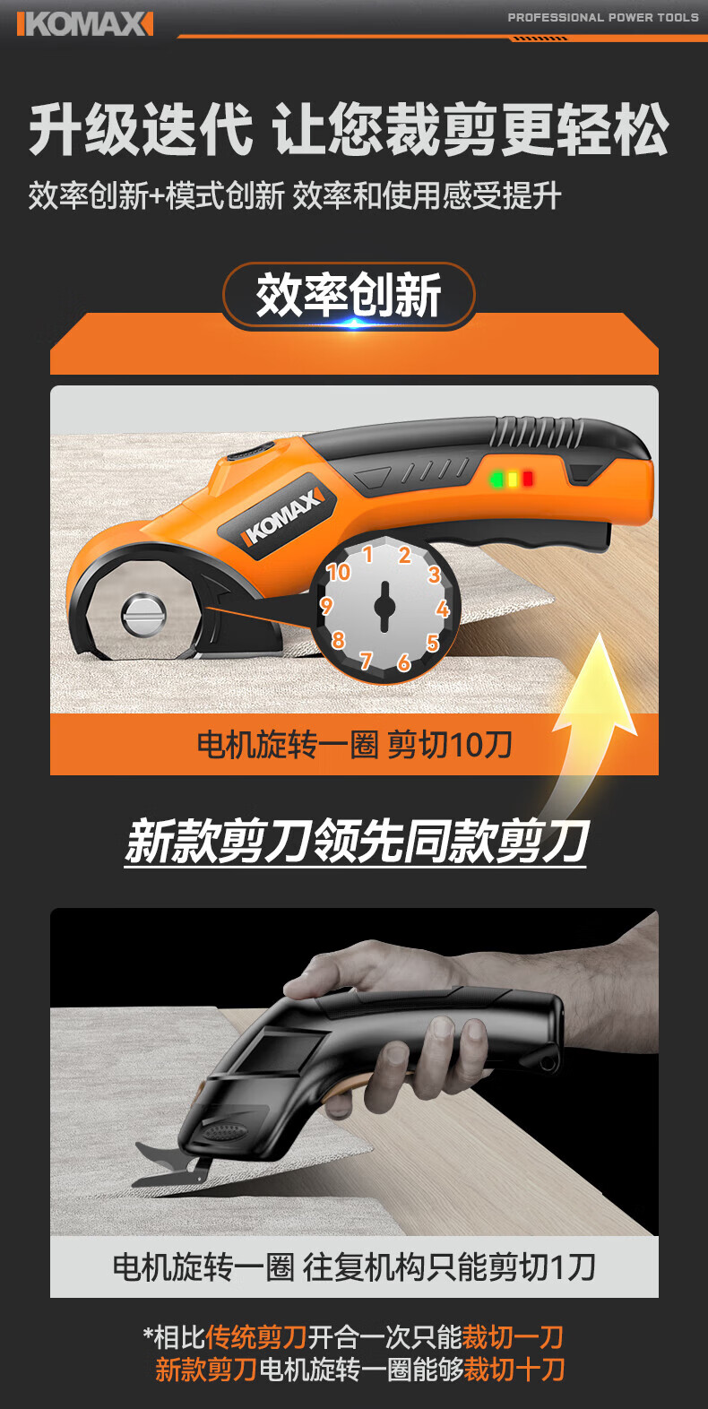 KOMAX electric scissors, cloth cutting artifact, small electric scissors for tailors, clothing fabric cutting machine, electric cutting knife V6 high efficiency 40 round knife style single blade