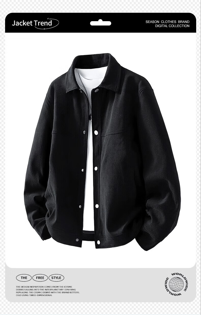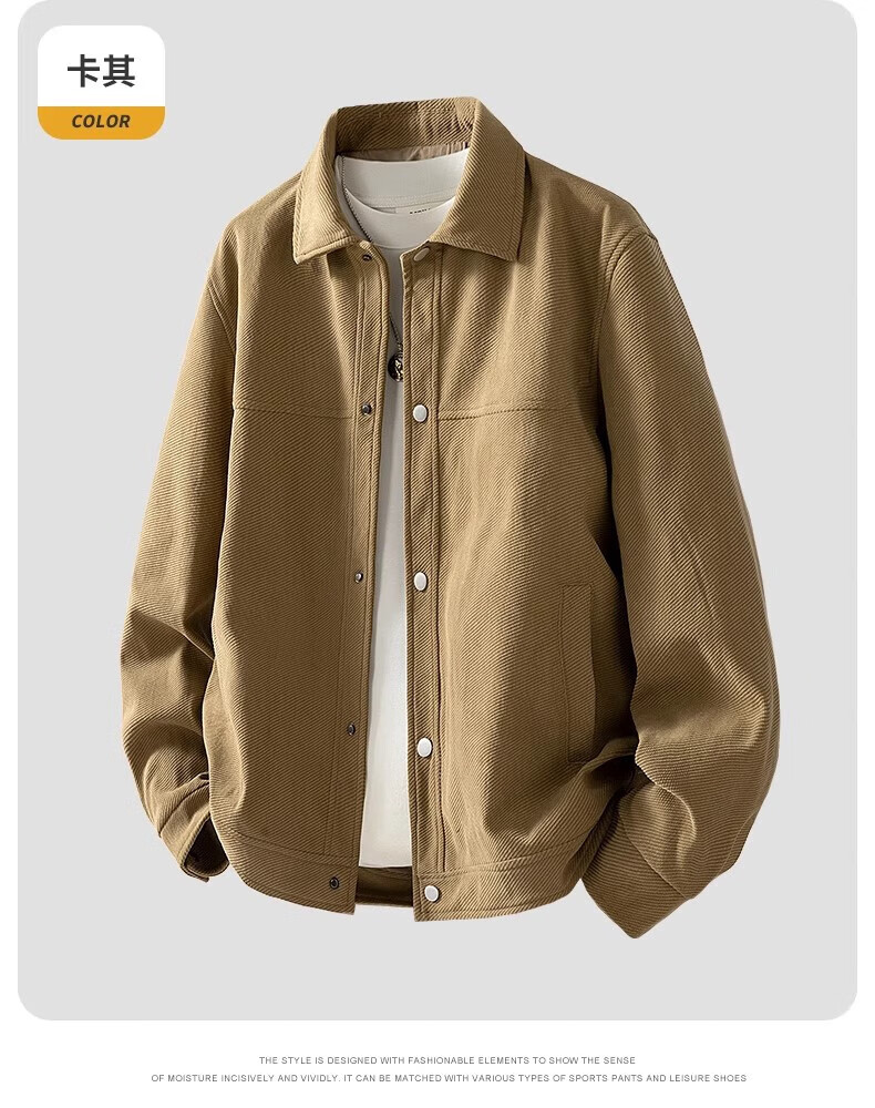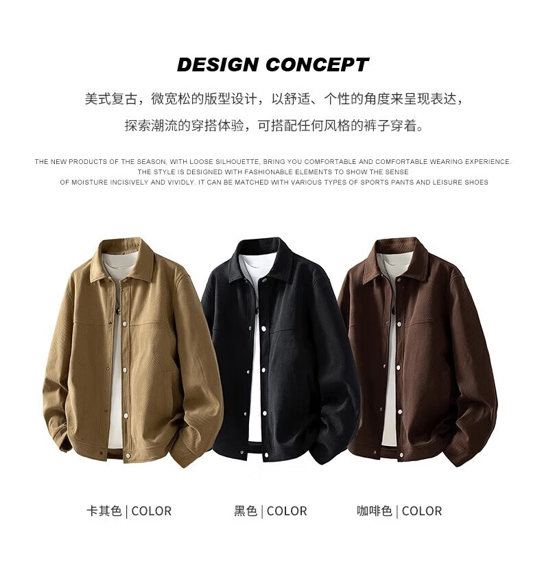 JEEP SPIRIT light luxury simple retro lapel jacket men's autumn and winter loose casual American trend all-match jacket black simple and comfortable M 80-110 catties