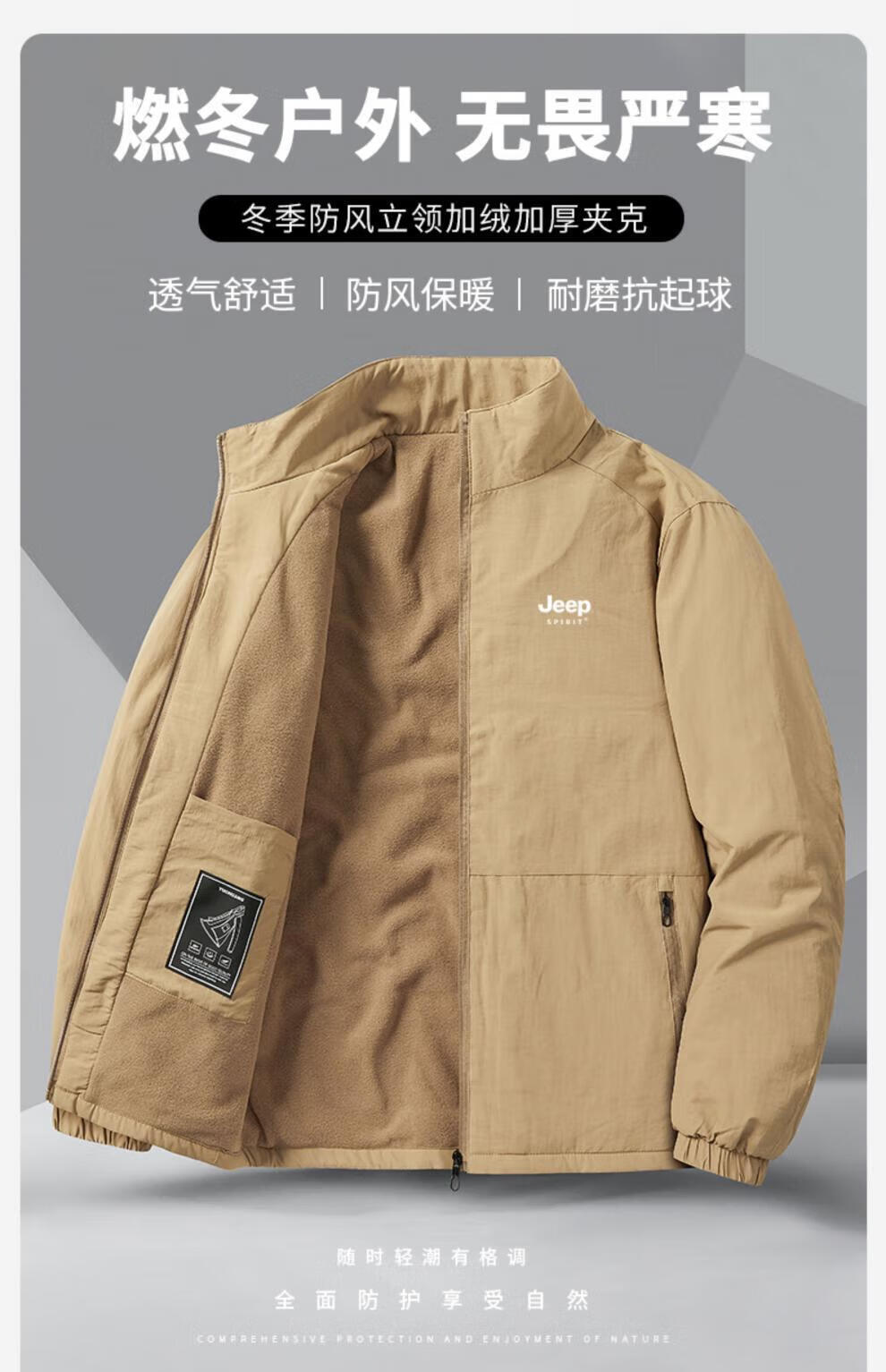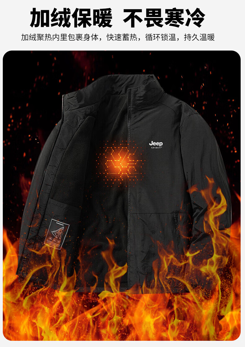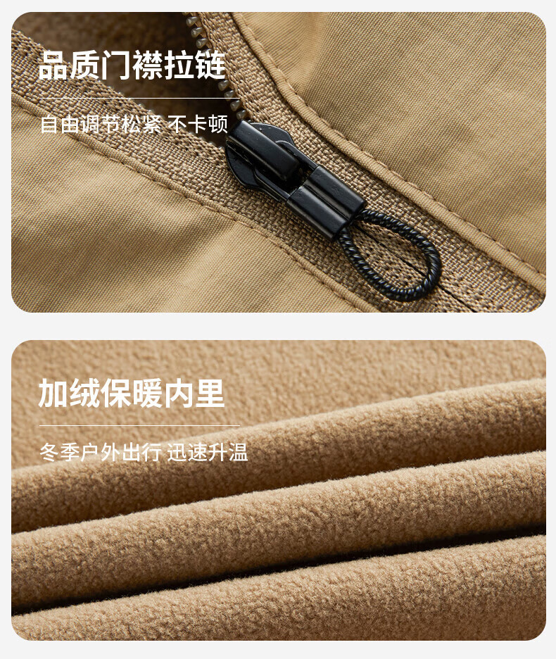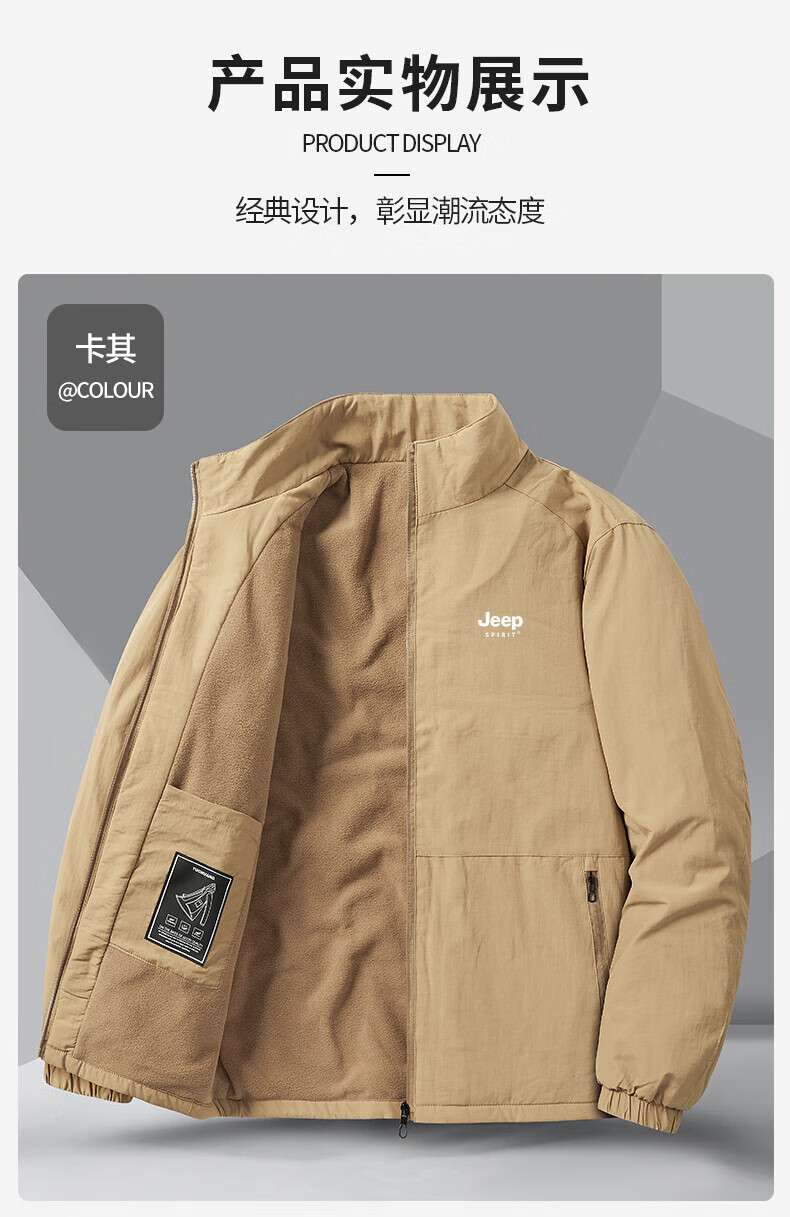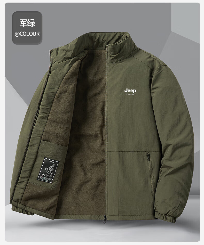 JEEP SPIRIT cotton coat for men autumn and winter 2025 new velvet thickened middle-aged dad men's warm jacket cotton coat khaki velvet 3XL