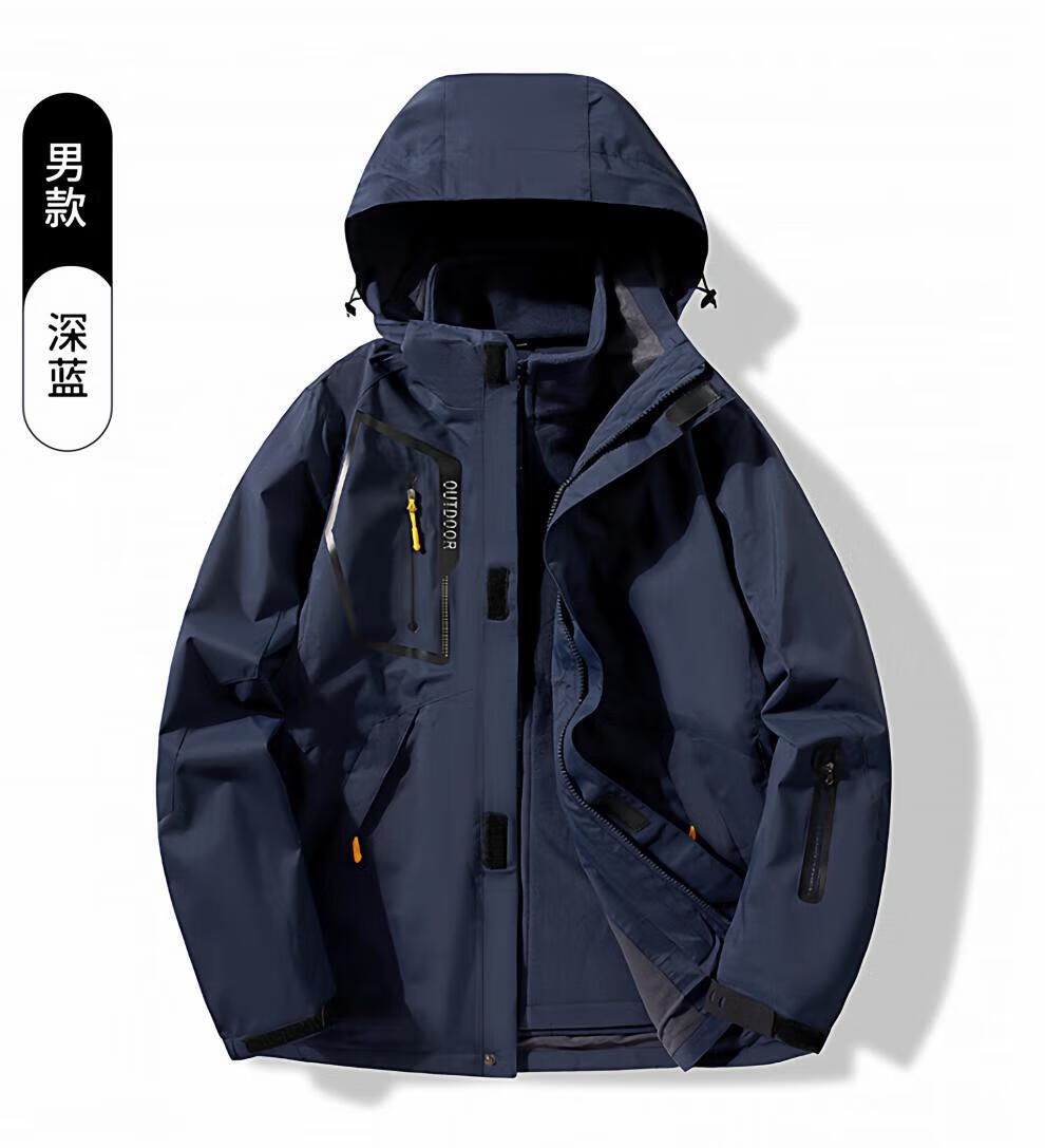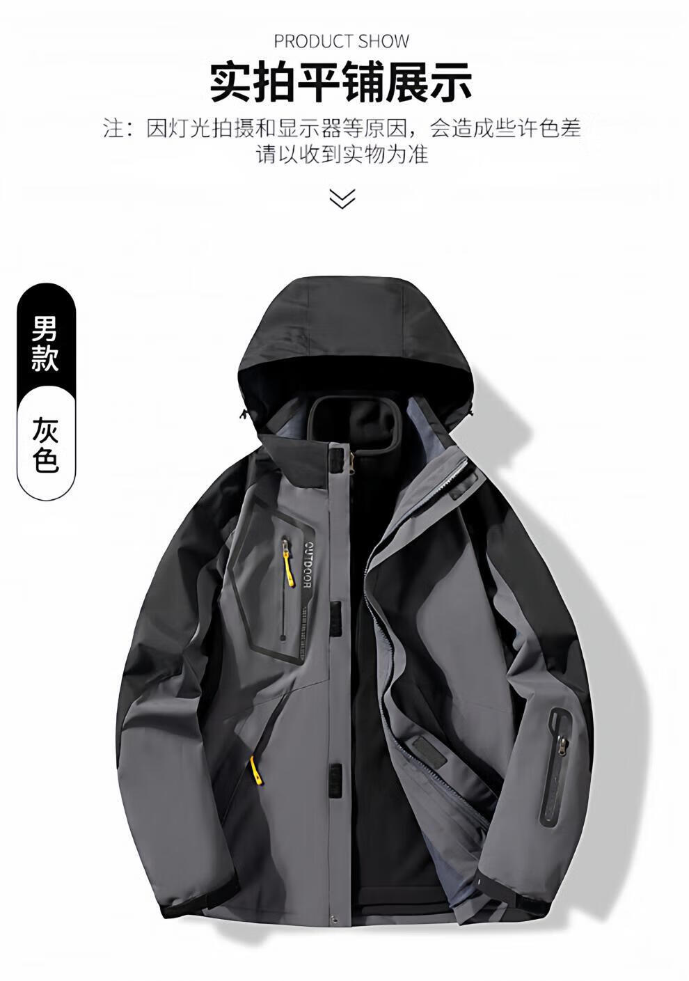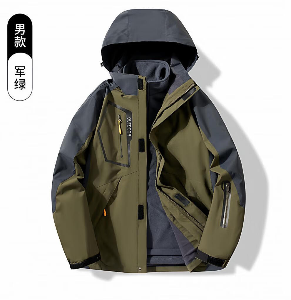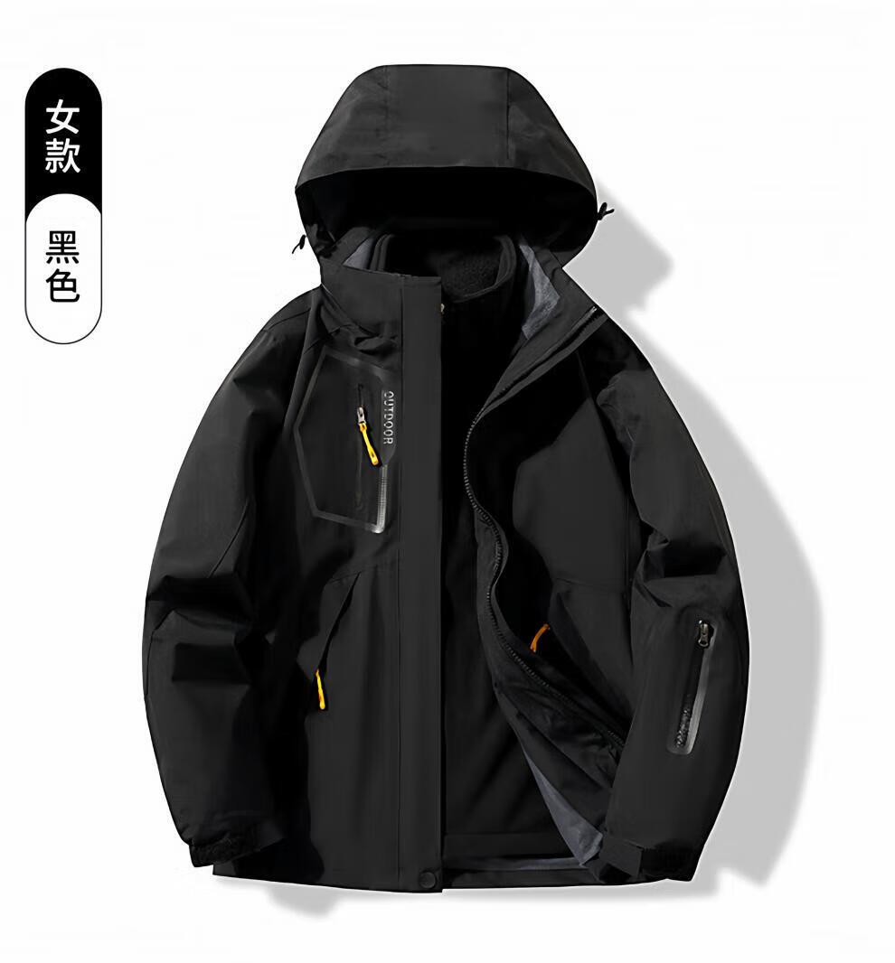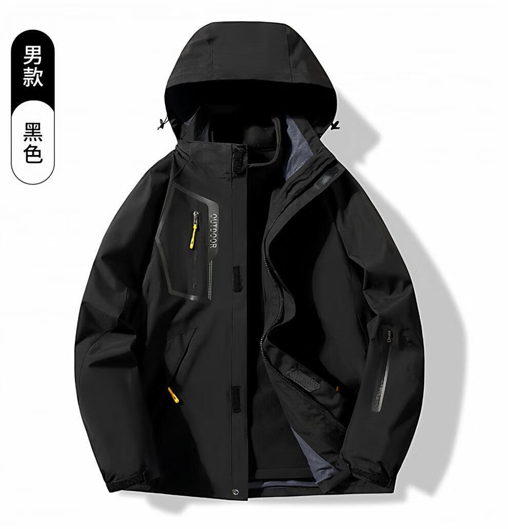 JEEP SPIRIT men's three-in-one detachable winter velvet thickened jacket men's outdoor cold mountaineering jacket for women men's black jacket + liner 4XL