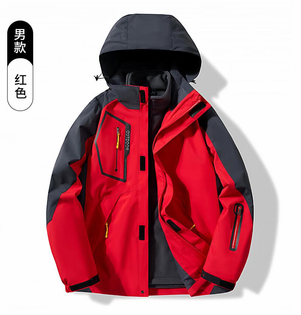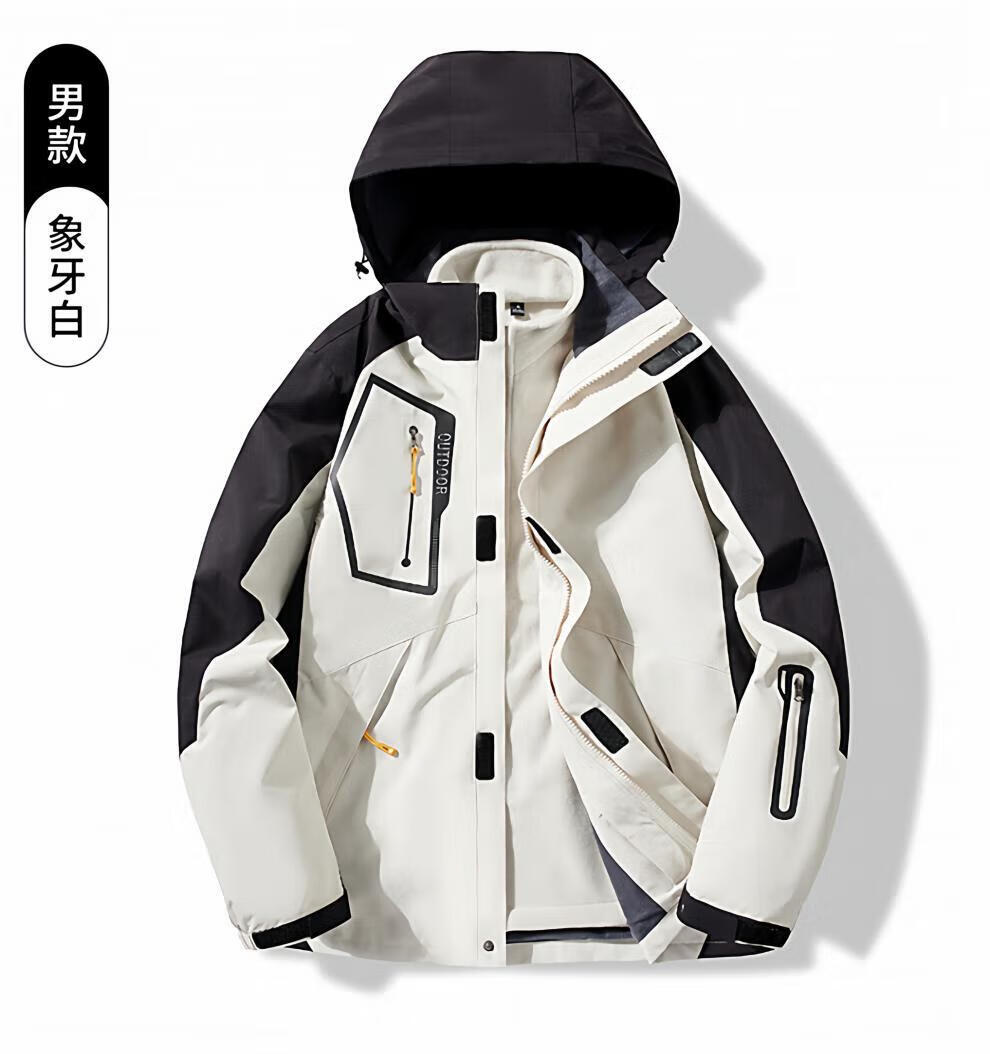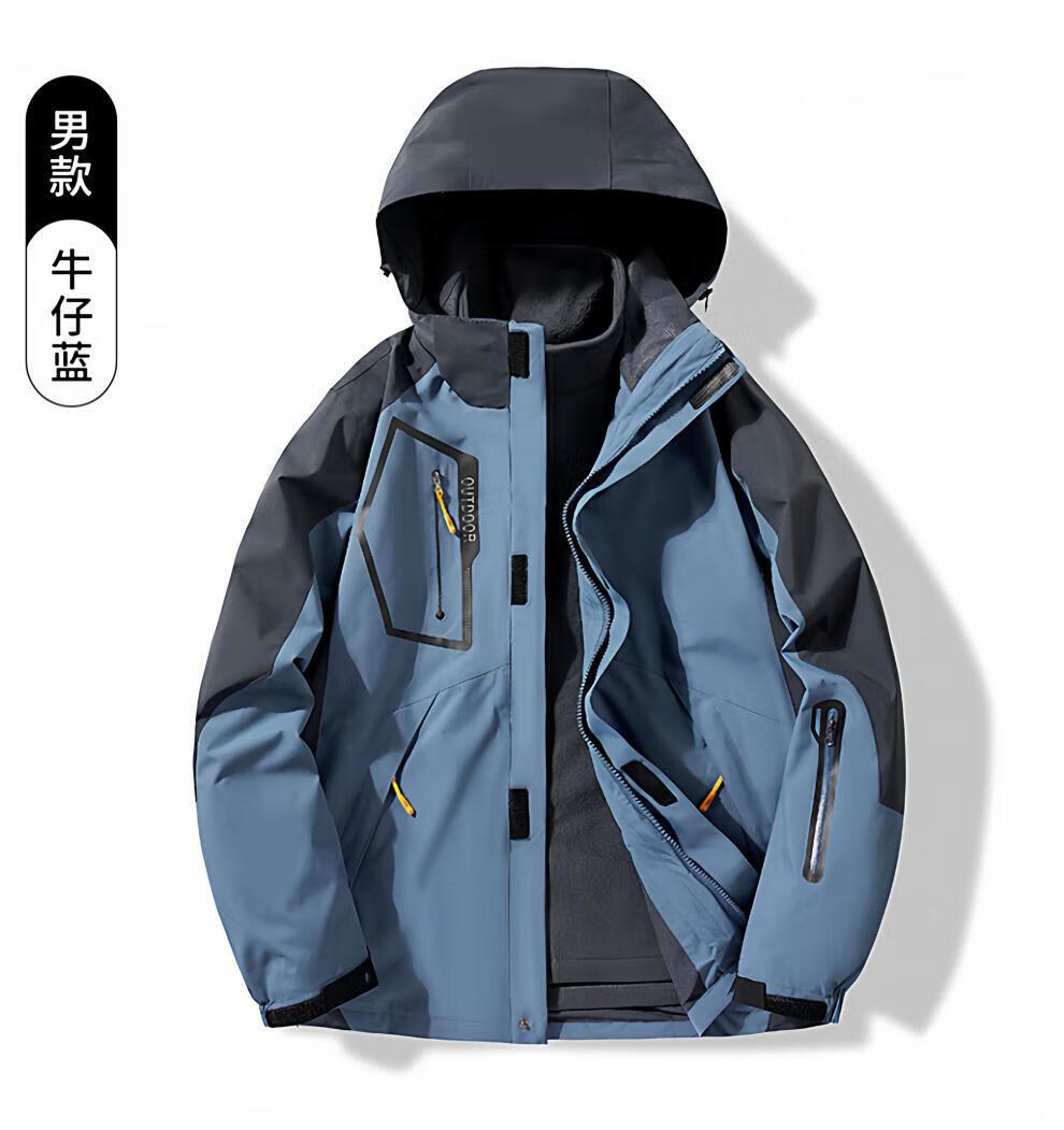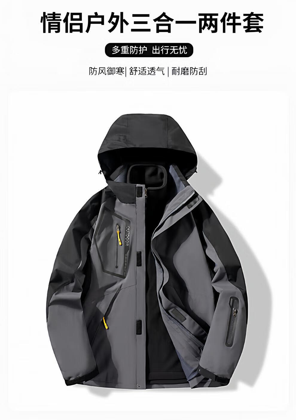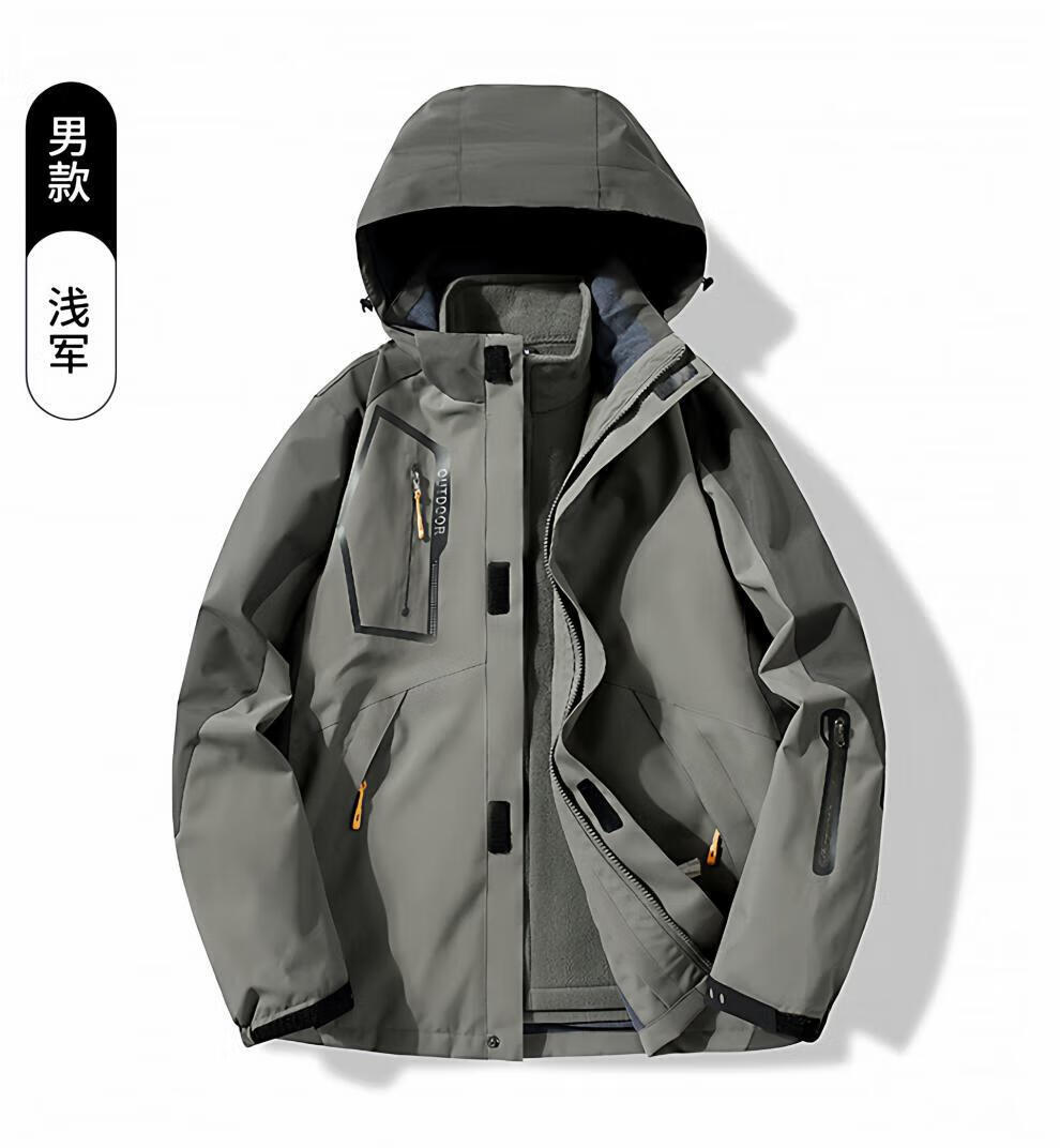 JEEP SPIRIT men's three-in-one detachable winter velvet thickened jacket men's outdoor cold mountaineering jacket for women men's black jacket + liner 4XL