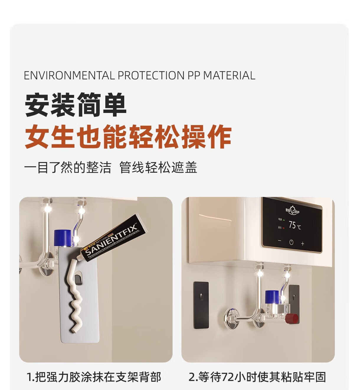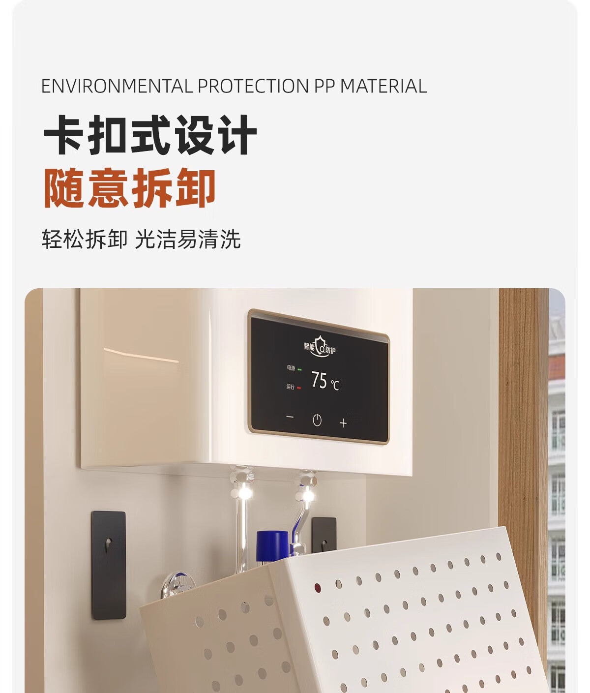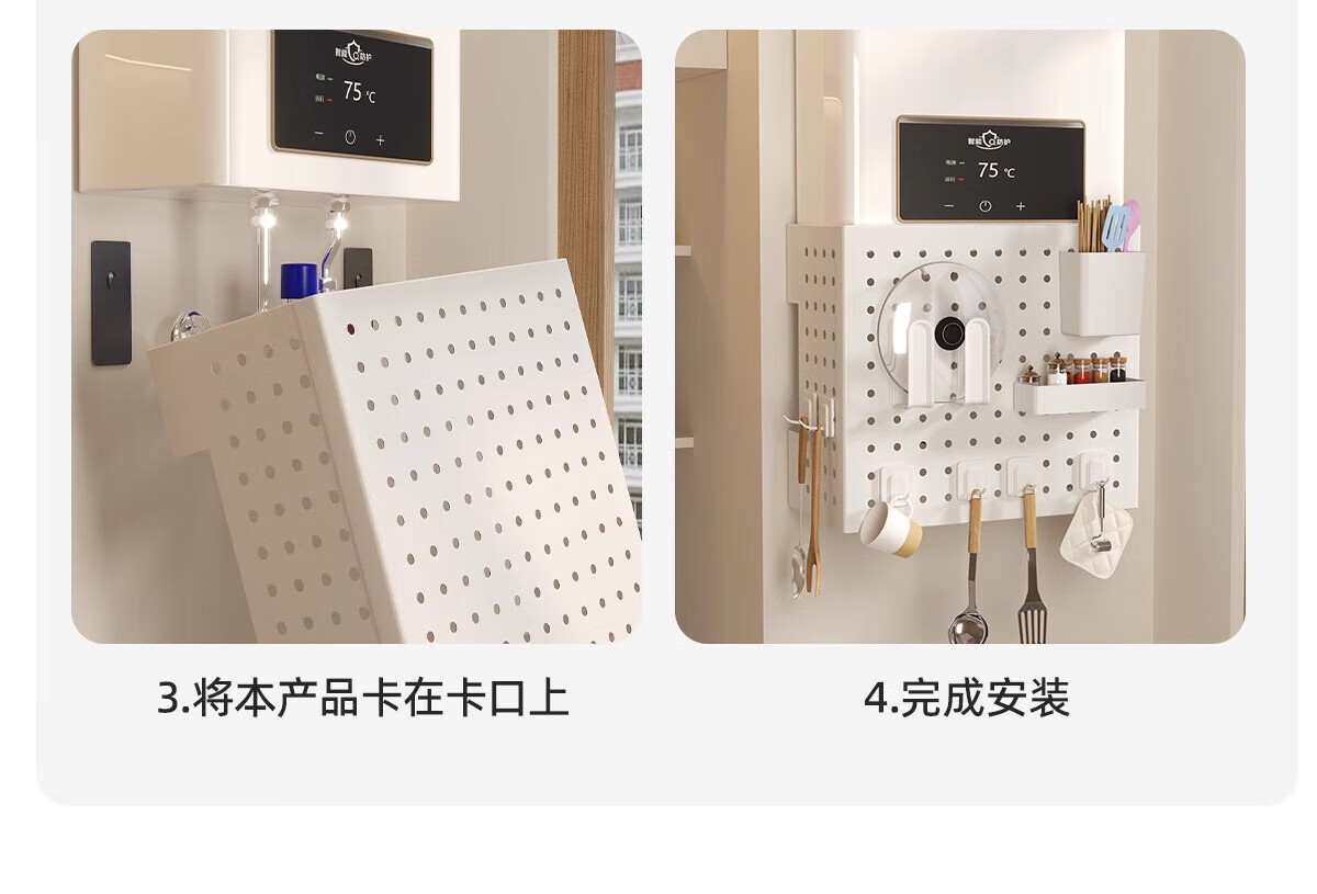 Wang Xinghe Yue water heater shielding cover gas pipe decorative cover punch-free wall-mounted furnace hole plate storage rack ugly cover plate cover Nordic white length 35 height 30 depth 20 free (4+8 hooks)