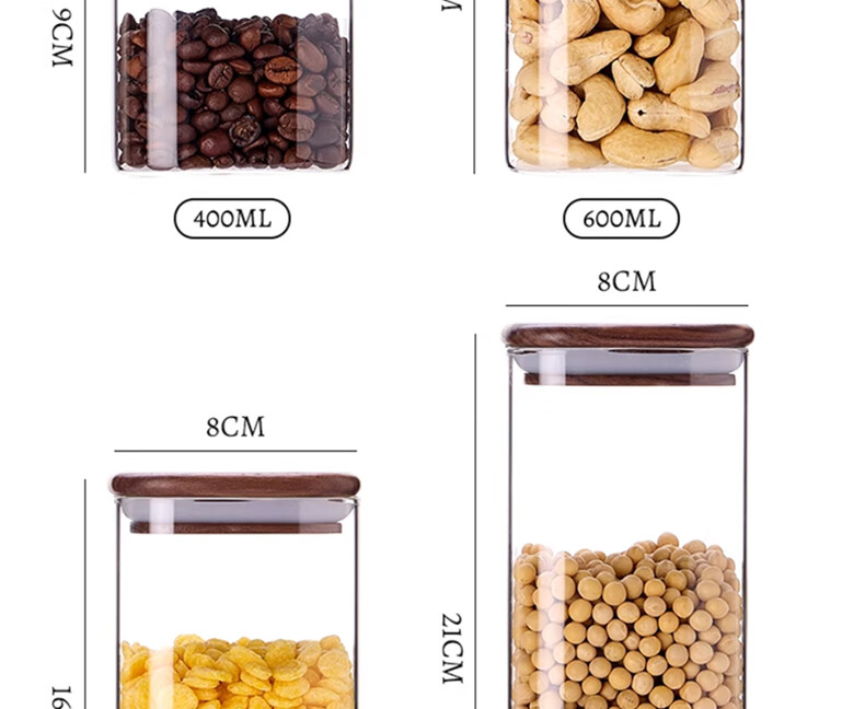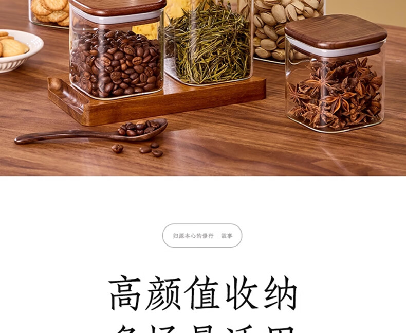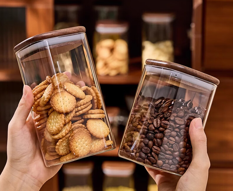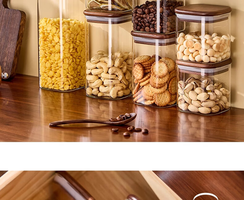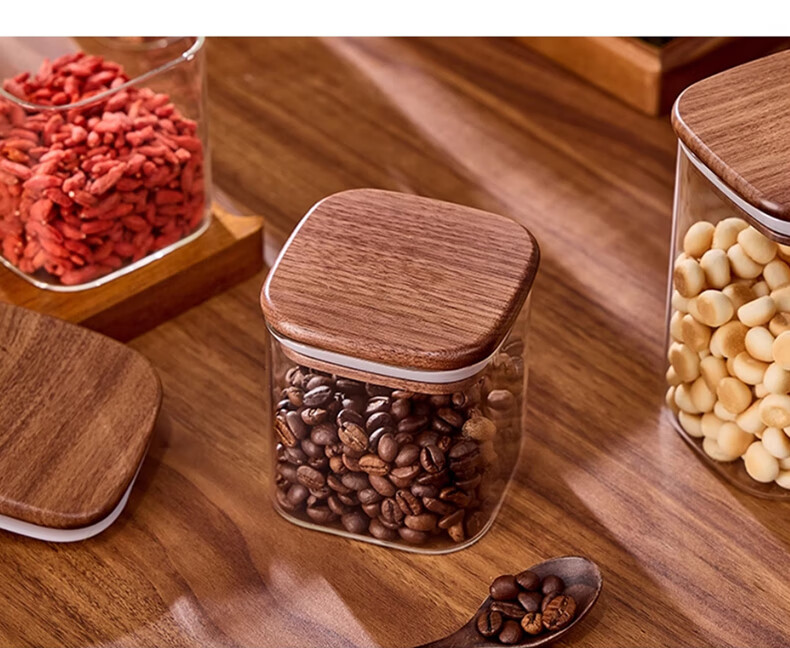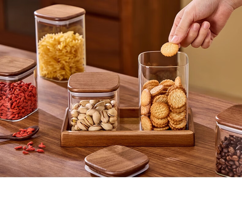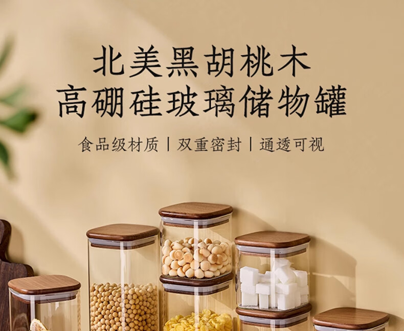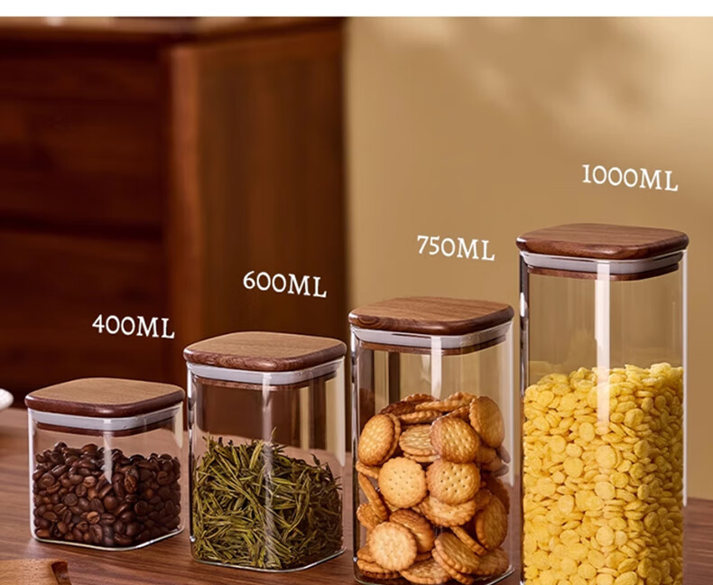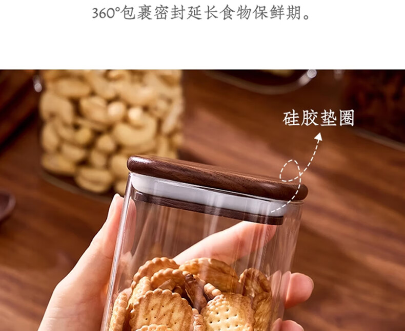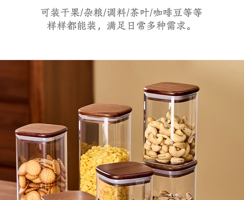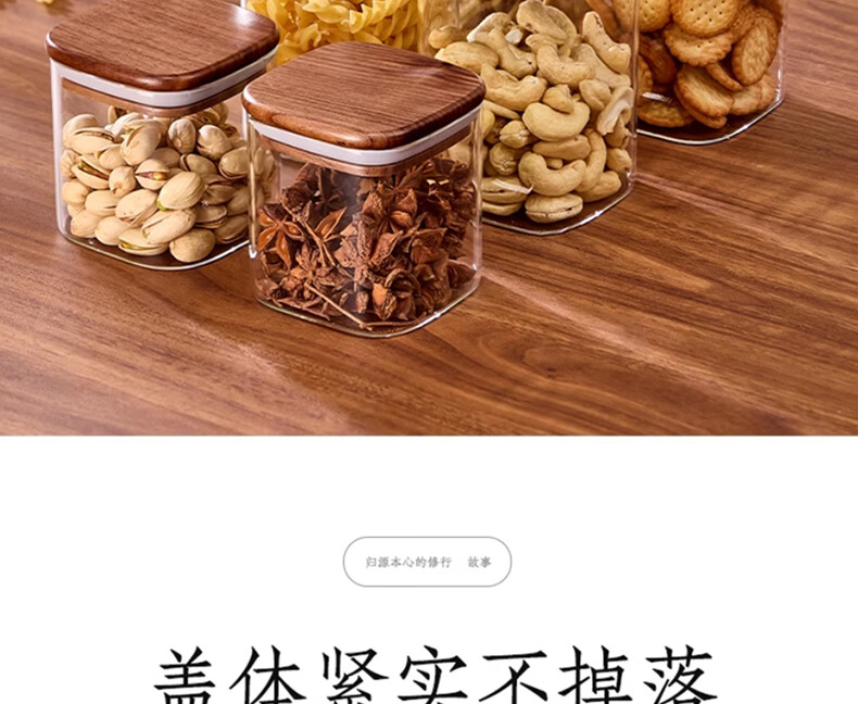 Anmi black walnut food-grade glass sealed jar snack nut dry goods storage box high borosilicate storage storage jar high borosilicate glass 1000ml-6 pieces (black walnut lid)