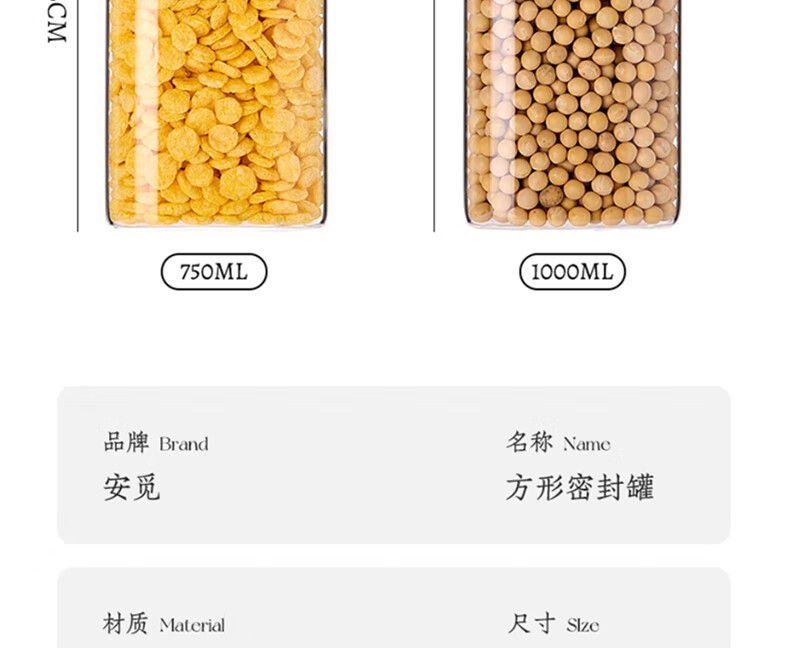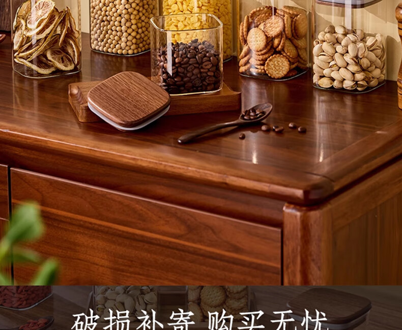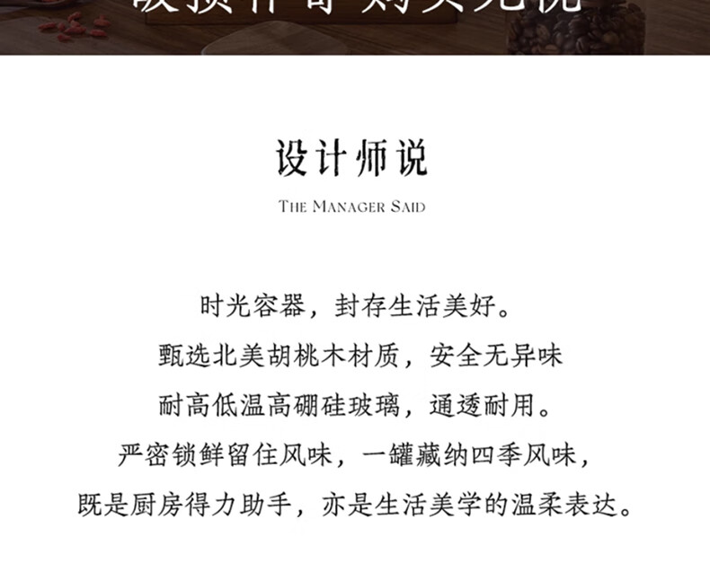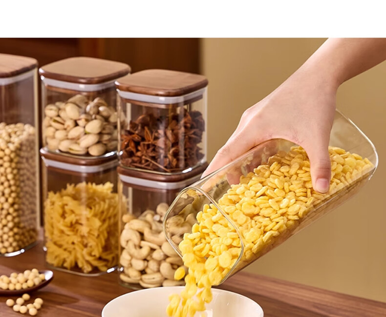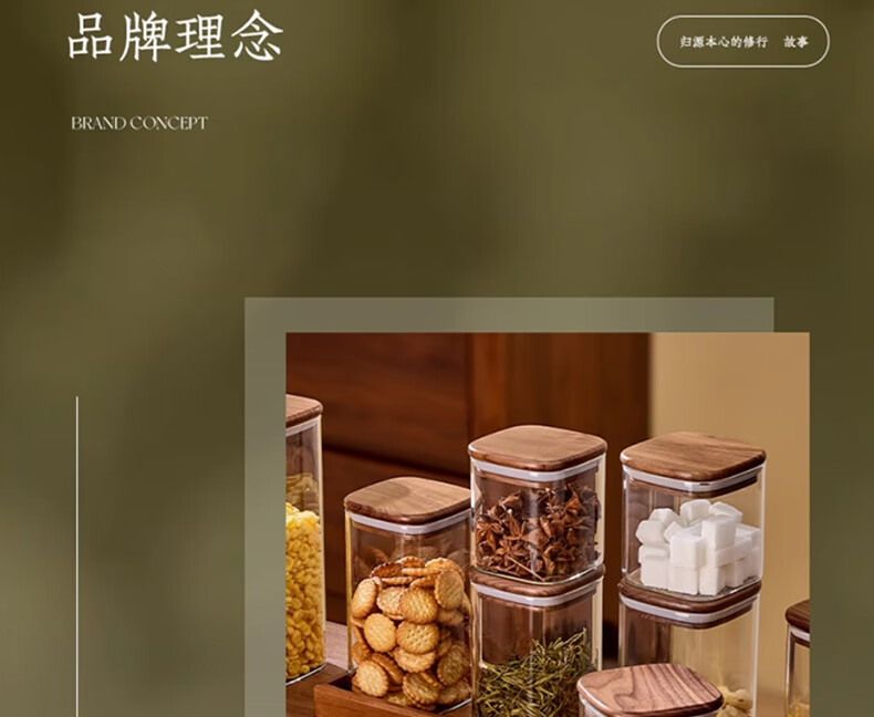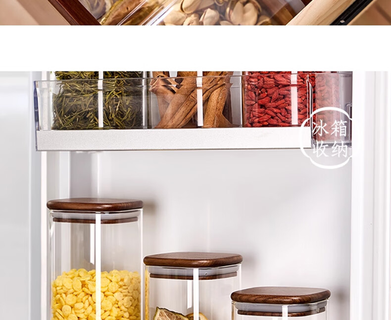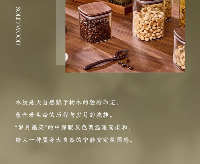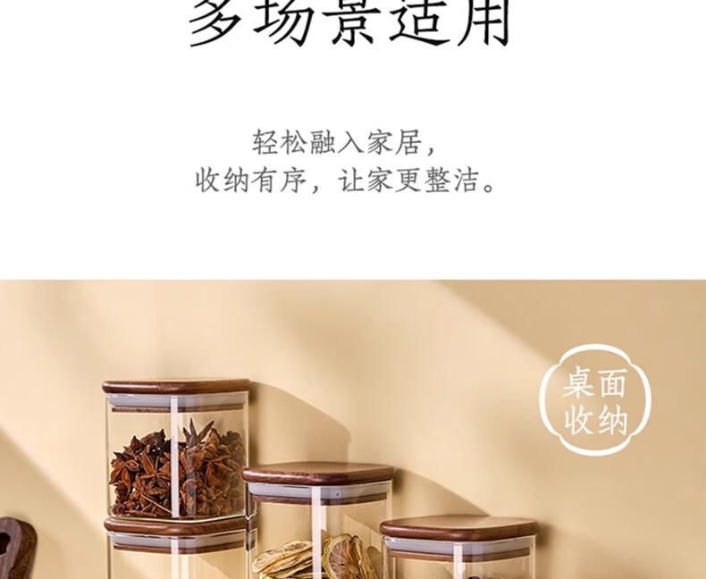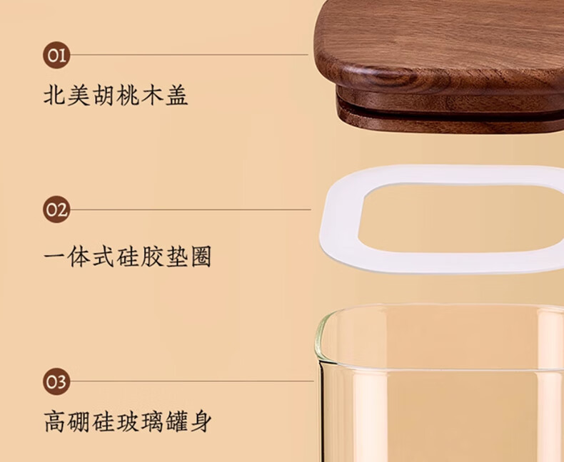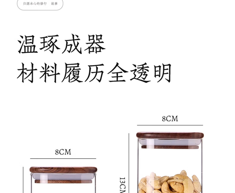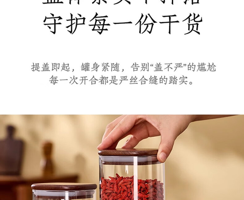 Anmi black walnut food-grade glass sealed jar snack nut dry goods storage box high borosilicate storage storage jar high borosilicate glass 1000ml-6 pieces (black walnut lid)
