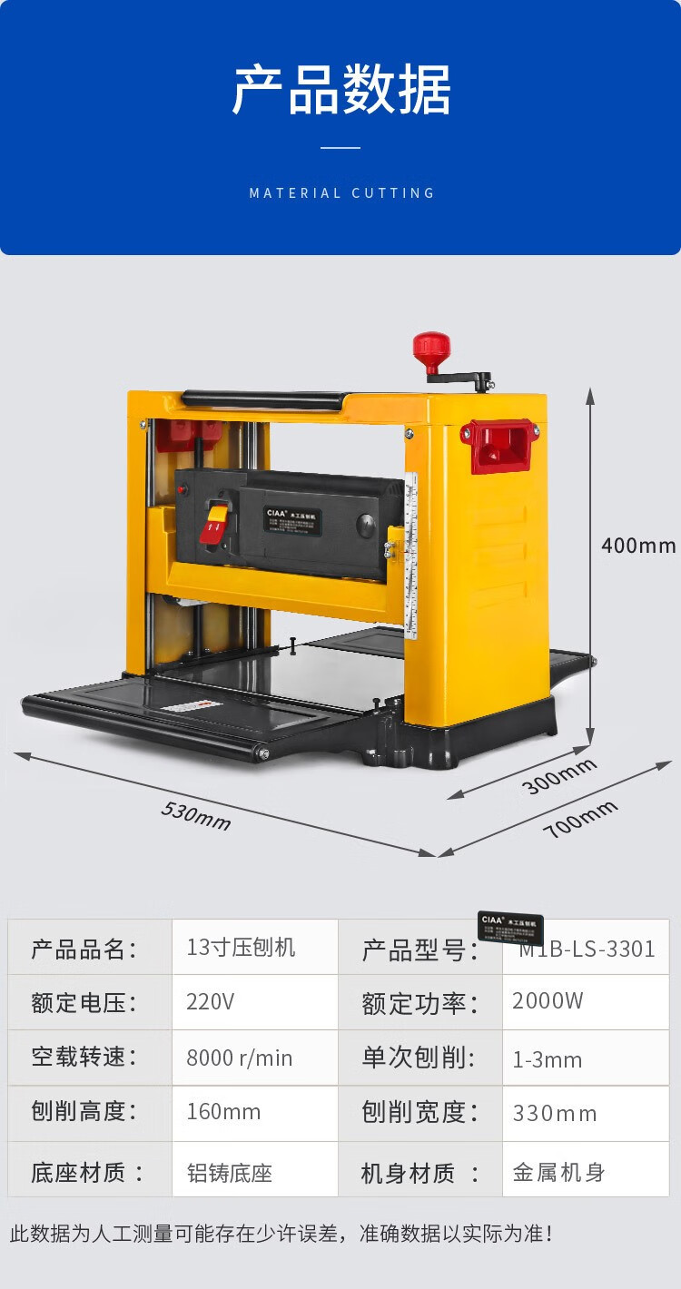 Yingtang 13-inch woodworking planer single-sided planer desktop multi-functional planer household electric flat planer planer 13-inch planer + stand + vacuum cleaner + planer