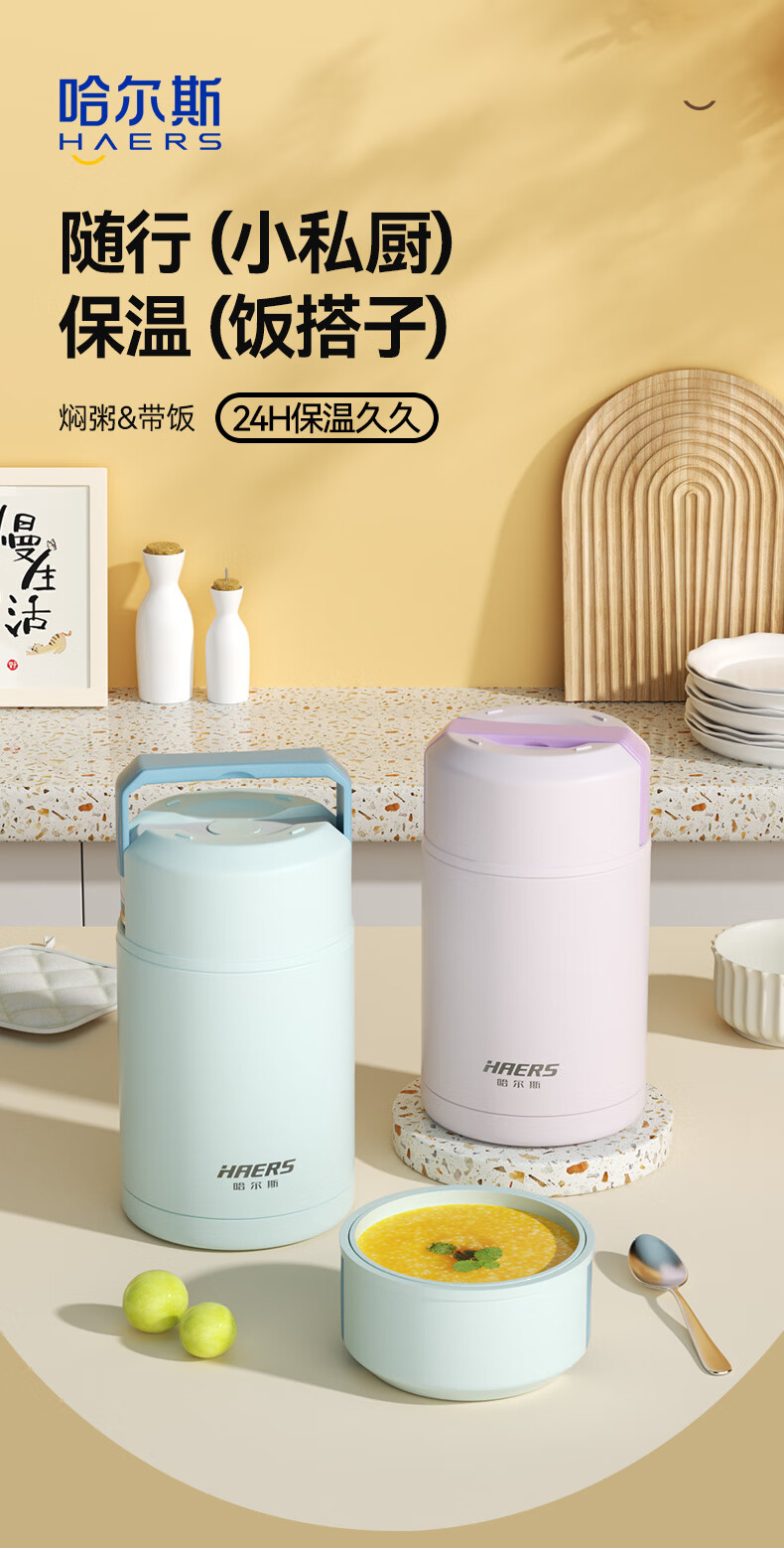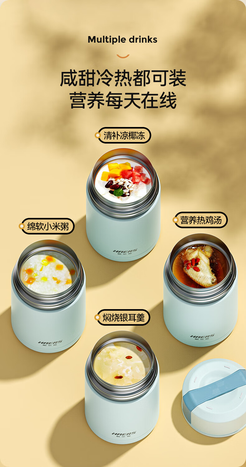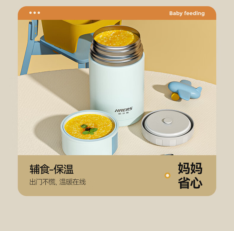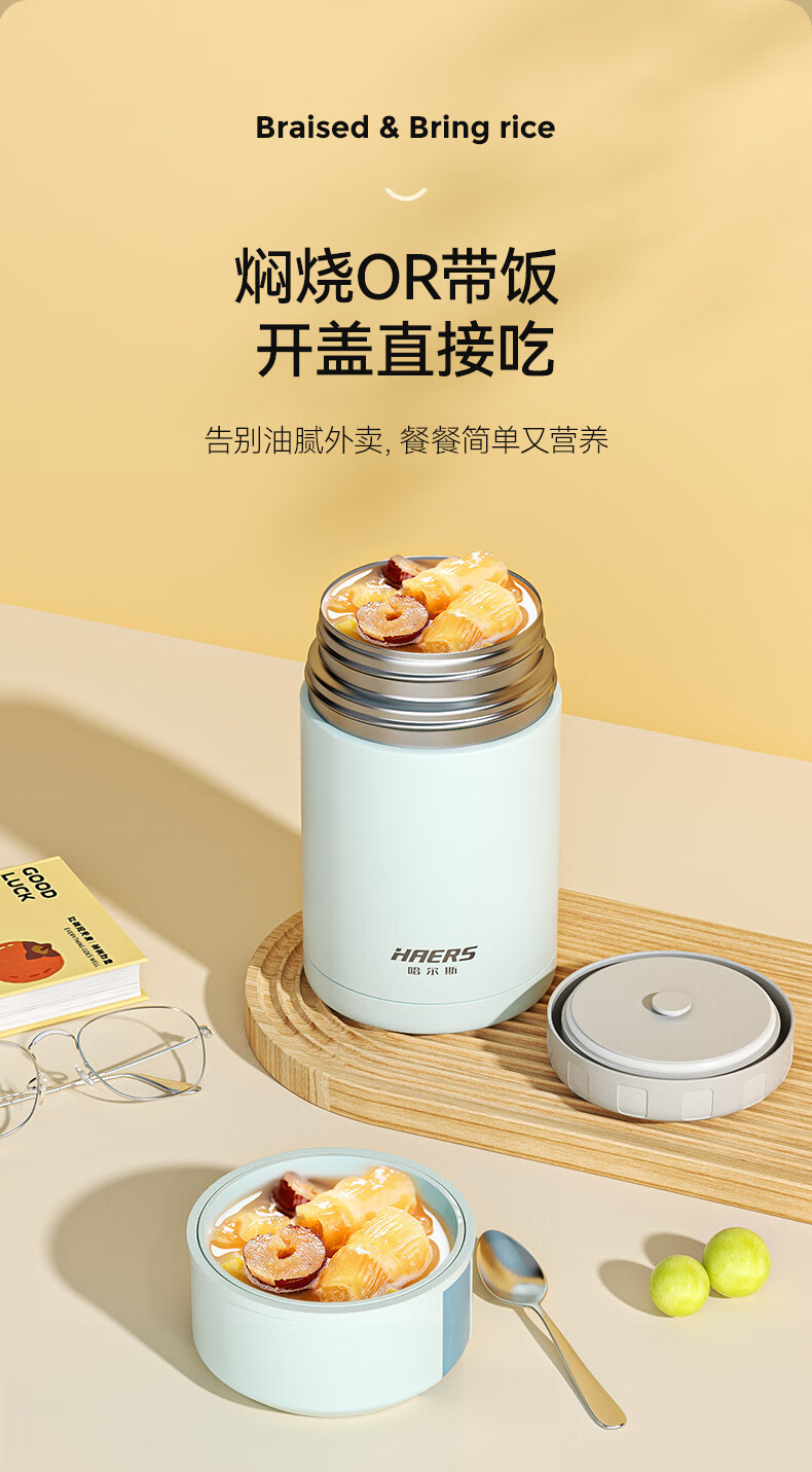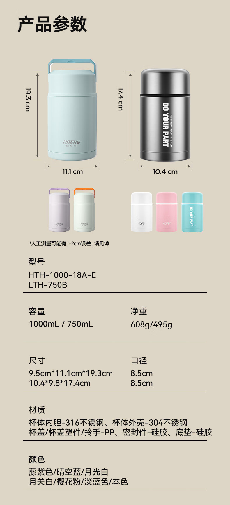 HAERS 316 stainless steel stew beaker, insulated lunch box, baby portable porridge jar, cup pot, large capacity 1000mL moonlight white, upgraded 316 material, telescopic handle