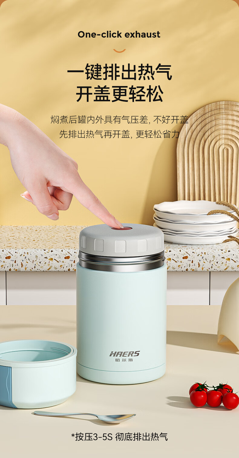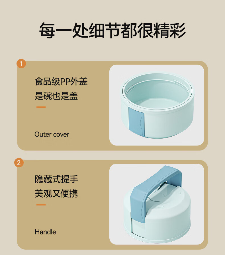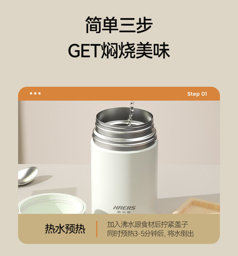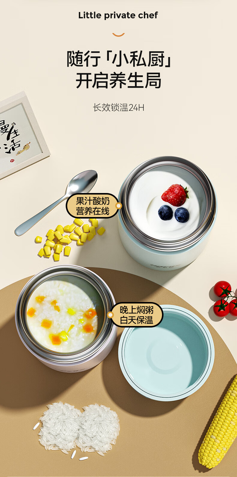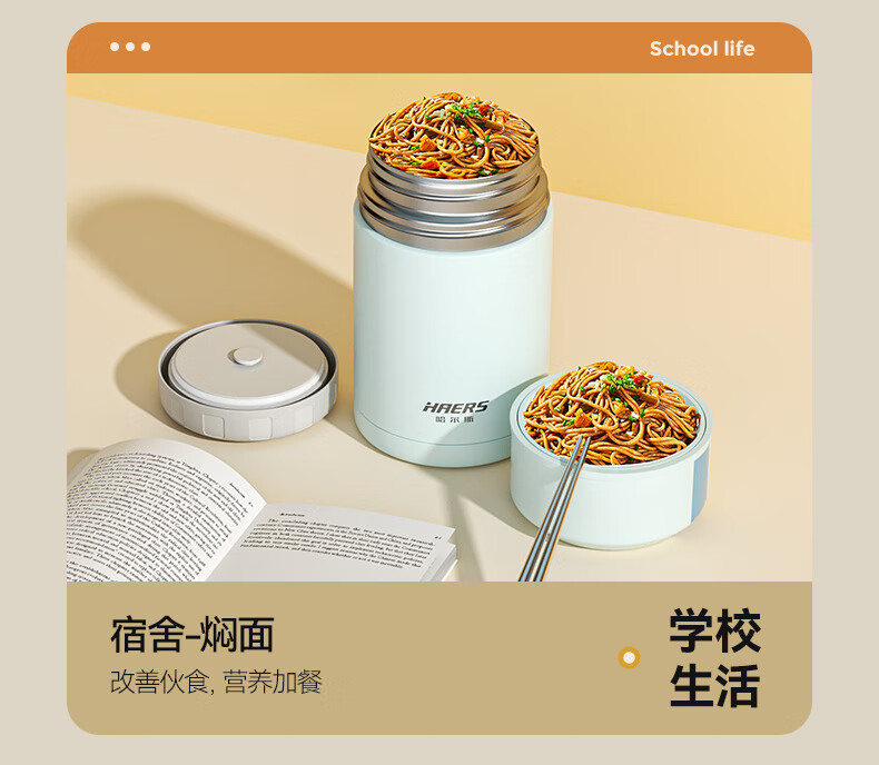 HAERS 316 stainless steel stew beaker, insulated lunch box, baby portable porridge jar, cup pot, large capacity 1000mL moonlight white, upgraded 316 material, telescopic handle
