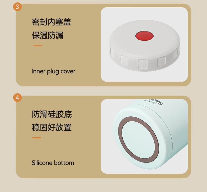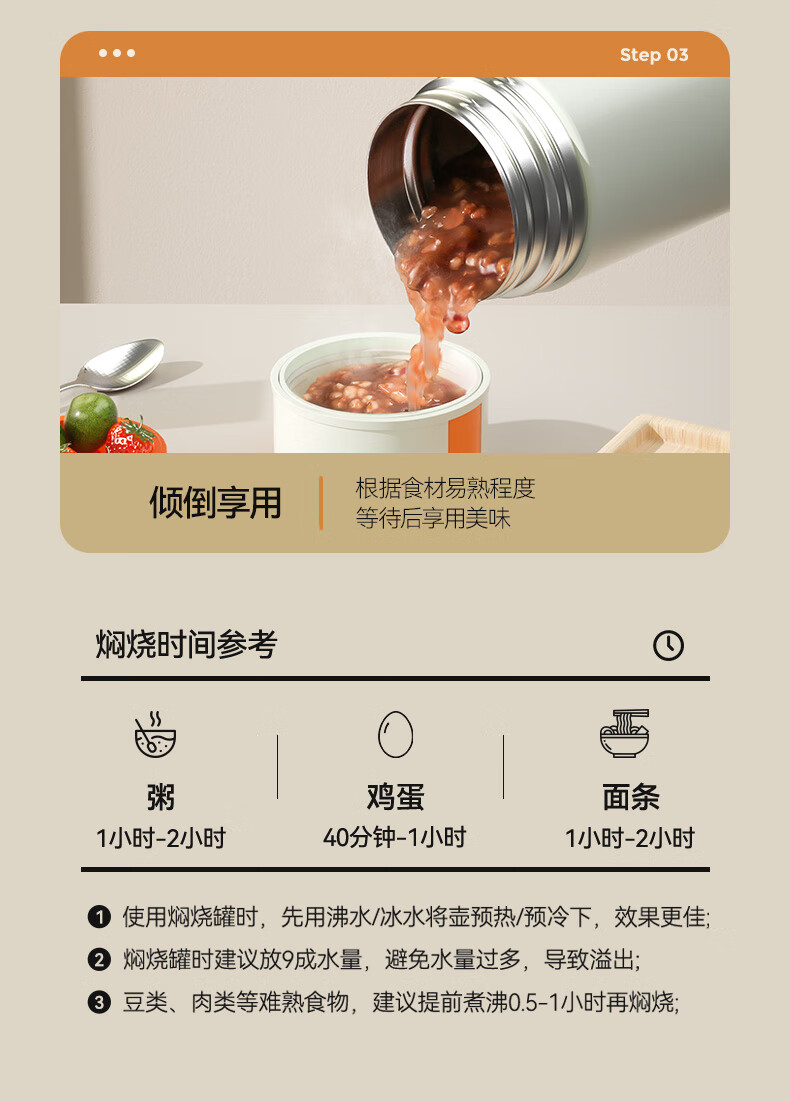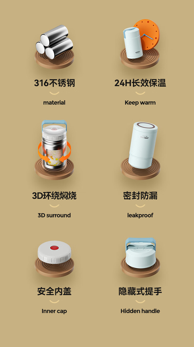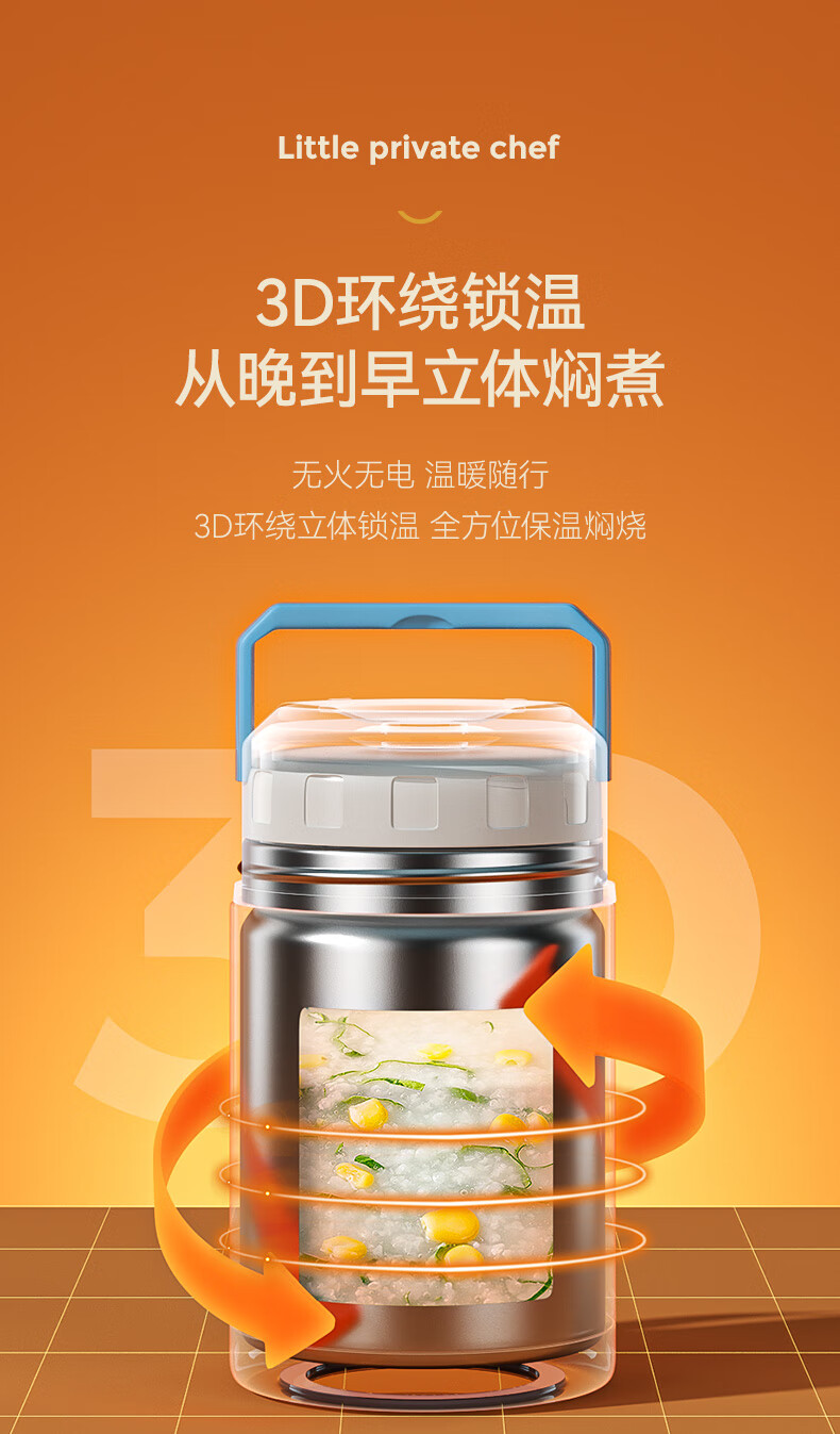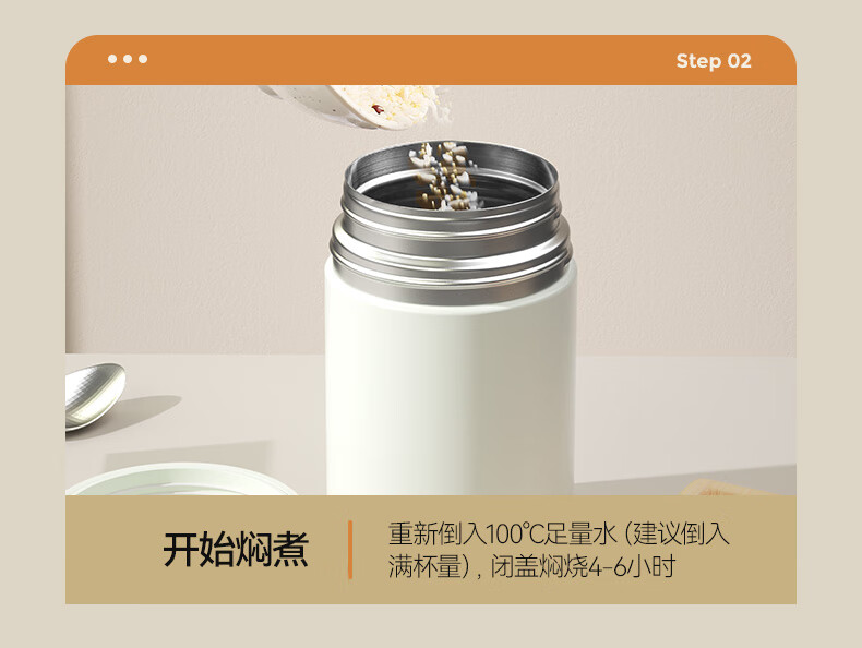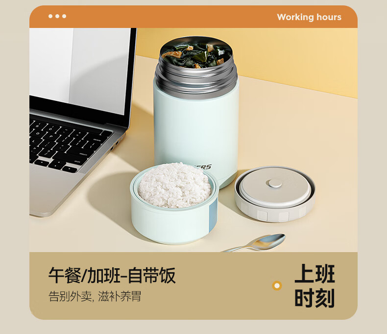 HAERS 316 stainless steel stew beaker, insulated lunch box, baby portable porridge jar, cup pot, large capacity 1000mL moonlight white, upgraded 316 material, telescopic handle