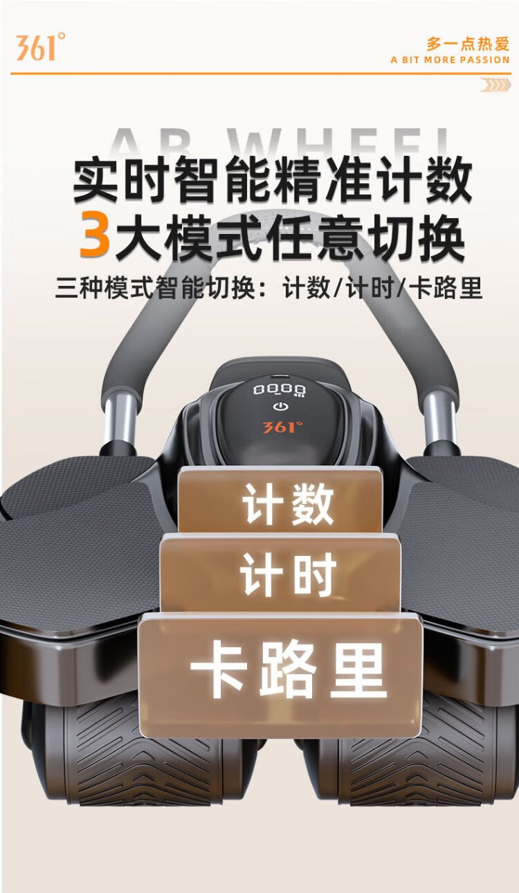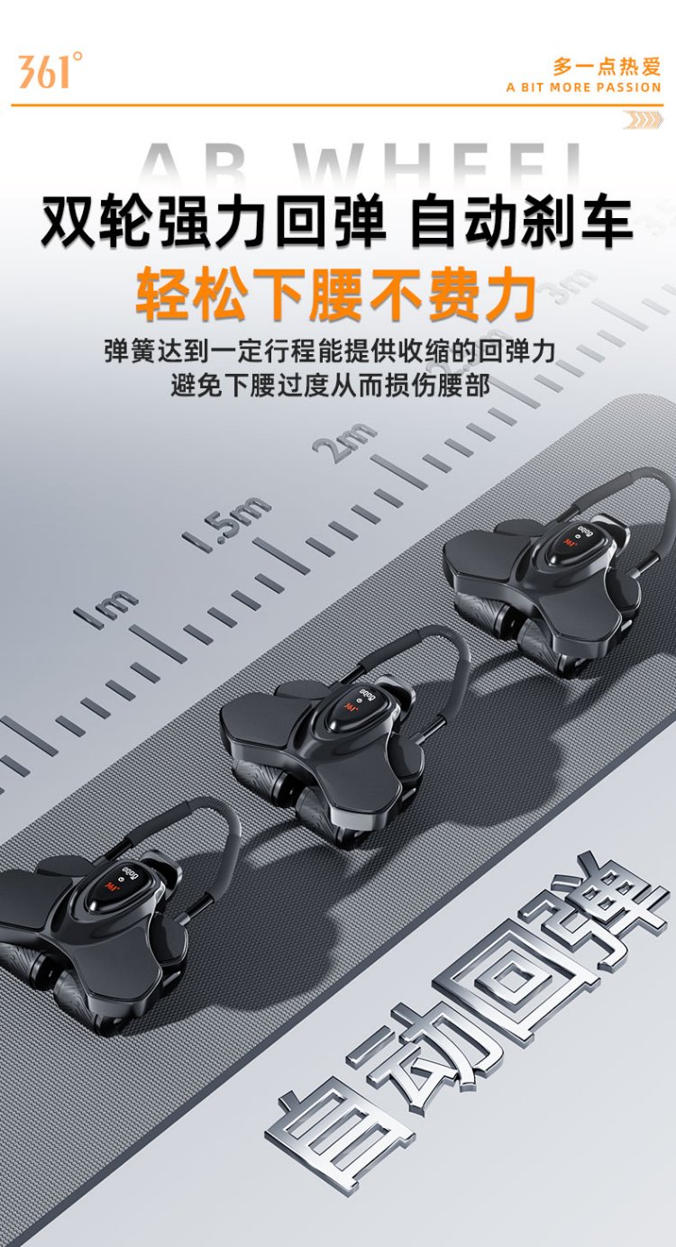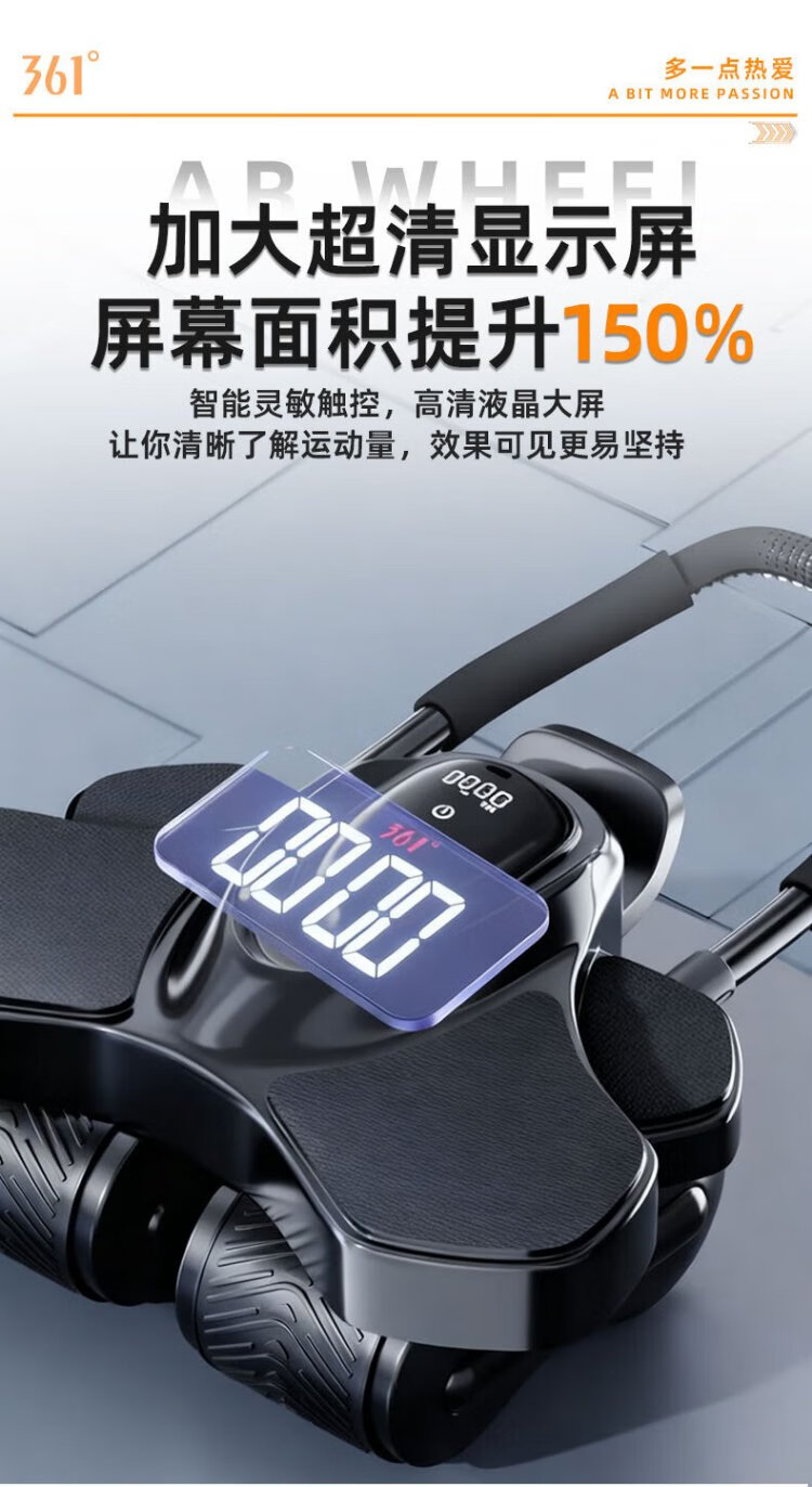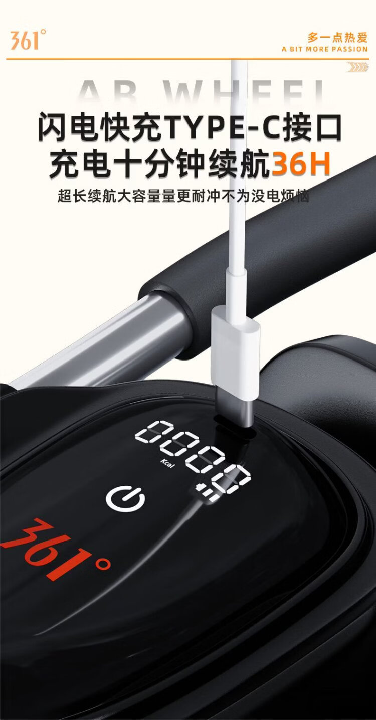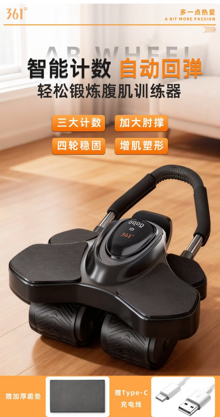 361 Abdominal Wheel Automatic Rebound Elbow Support Four-Wheel Fitness Exercise Equipment Abdominal Muscle Trainer Slim Belly Tightening Abdominal Muscle Training Extra Large Black Intelligent Digital Display + Automatic Rebound (Free Scale Pad + Kneeling Pad)