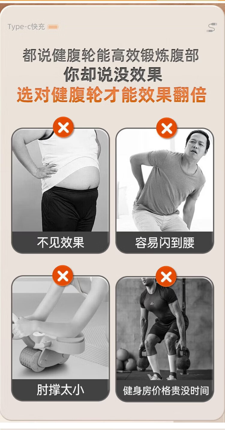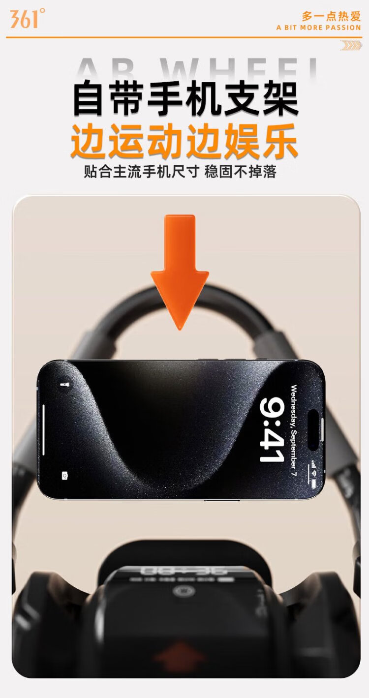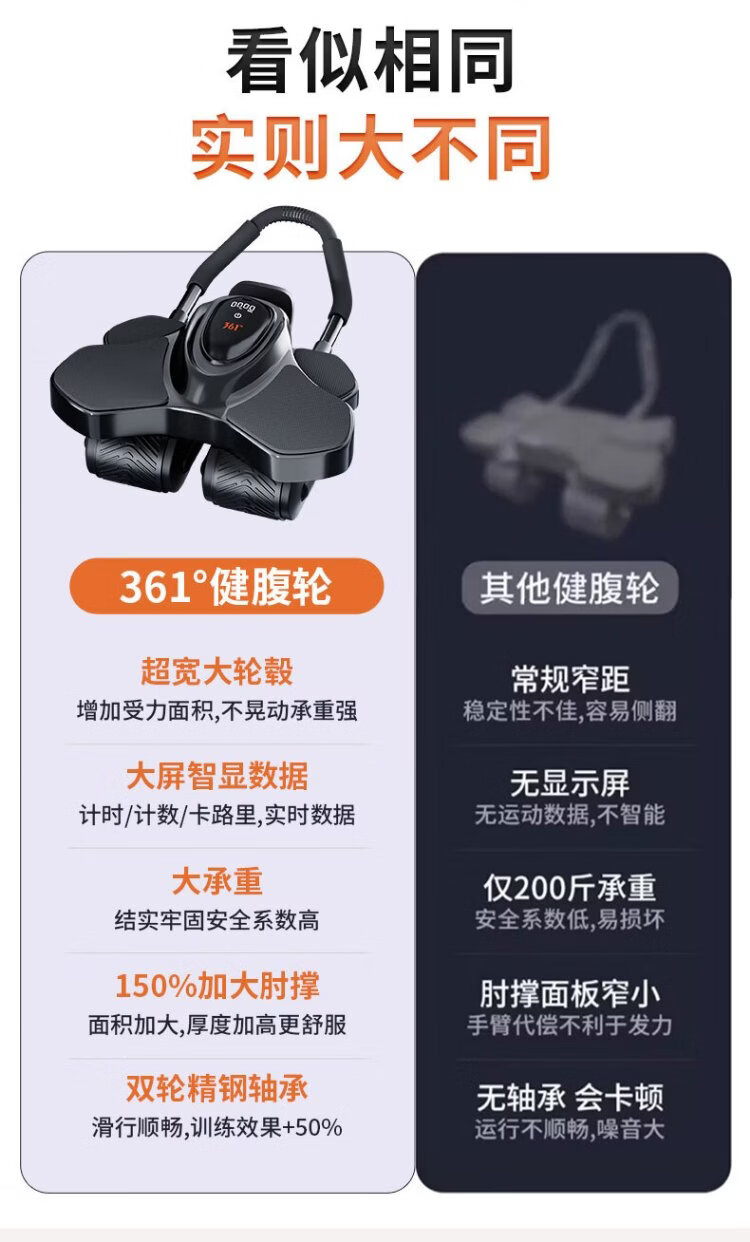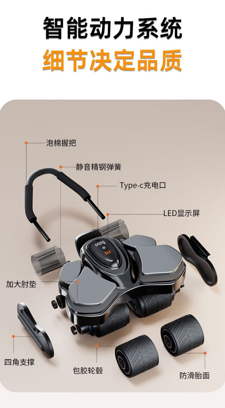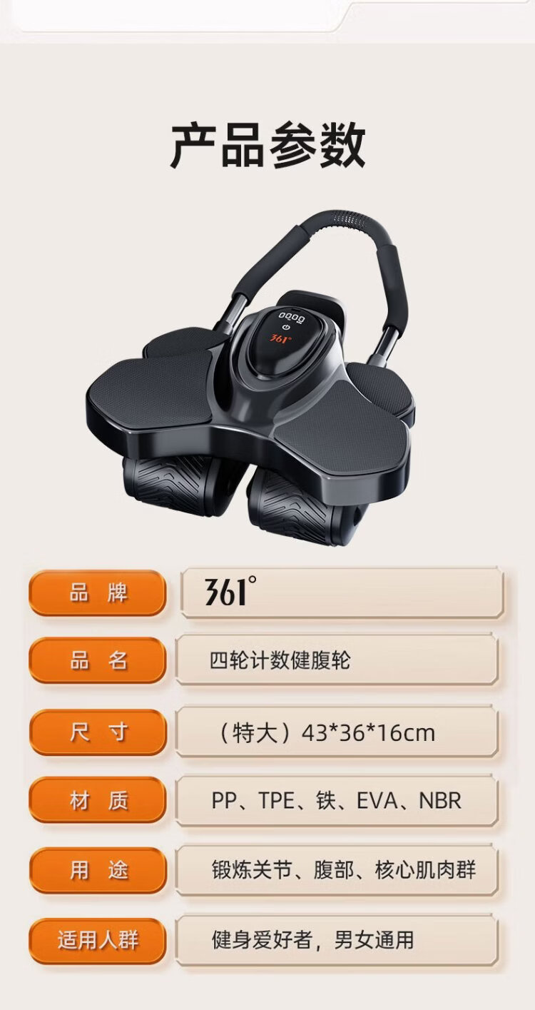361 Abdominal Wheel Automatic Rebound Elbow Support Four-Wheel Fitness Exercise Equipment Abdominal Muscle Trainer Slim Belly Tightening Abdominal Muscle Training Extra Large Black Intelligent Digital Display + Automatic Rebound (Free Scale Pad + Kneeling Pad)