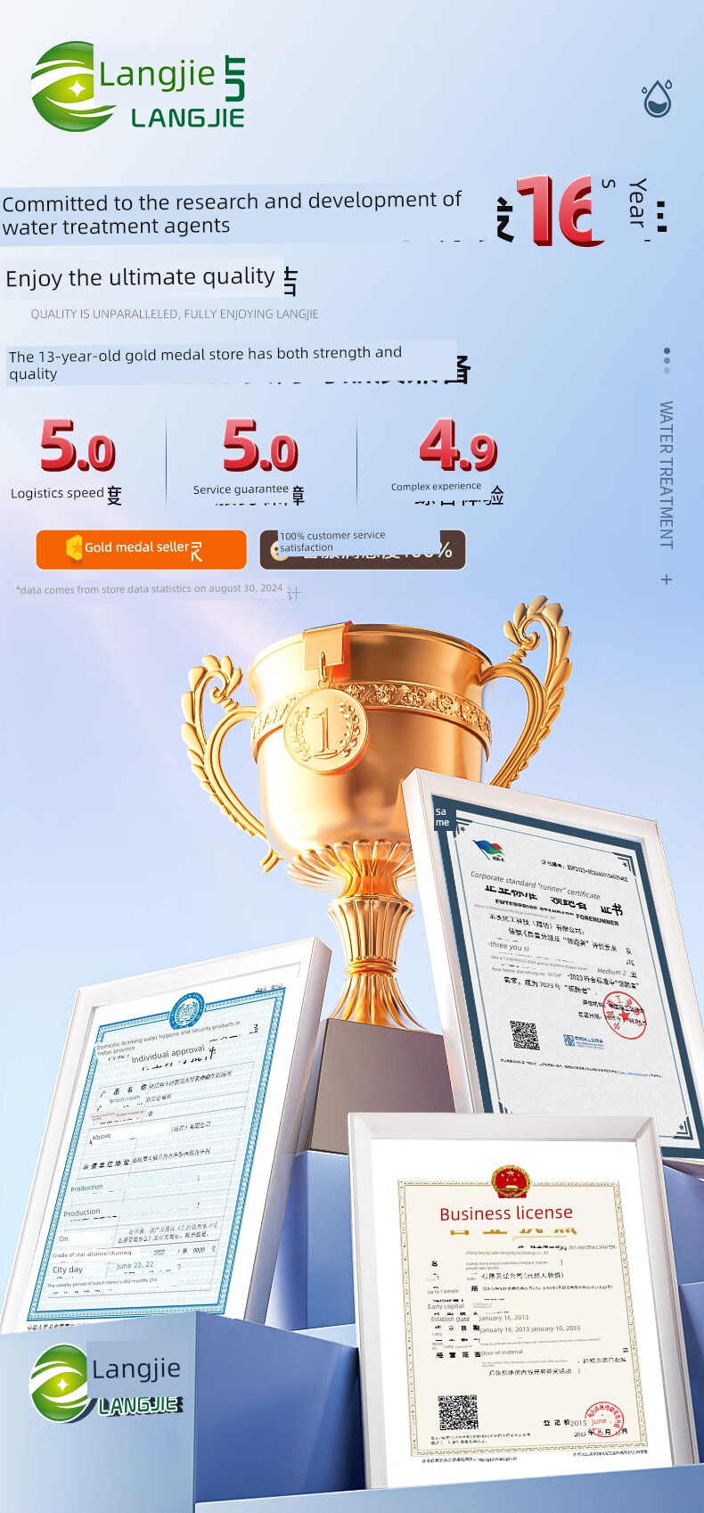 Langjie central air conditioning condenser cleaning agent boiler descaler solid scale agent cooling water tower tube