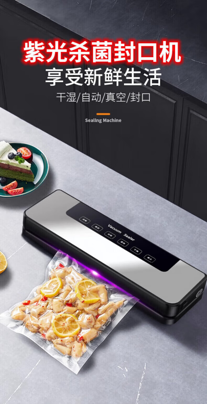 KDISV German vacuum sealing machine household commercial wet and dry fully automatic vacuum packaging machine without bagging bacon sausage high-power food antibacterial fresh-keeping machine plastic sealing machine silver gray - ultraviolet sterilization 100 bags 30m