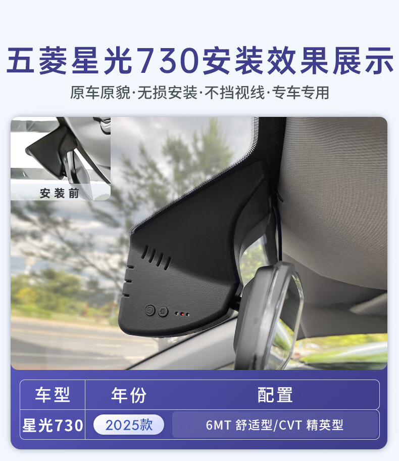 25 models of Wuling Starlight 730 driving recorders for car lovers, original 4K ultra-clear night vision, cable-free, original hidden type, 2025 model, comfortable/elite type, 4K single lens 2160P+128G card+AI smart capture