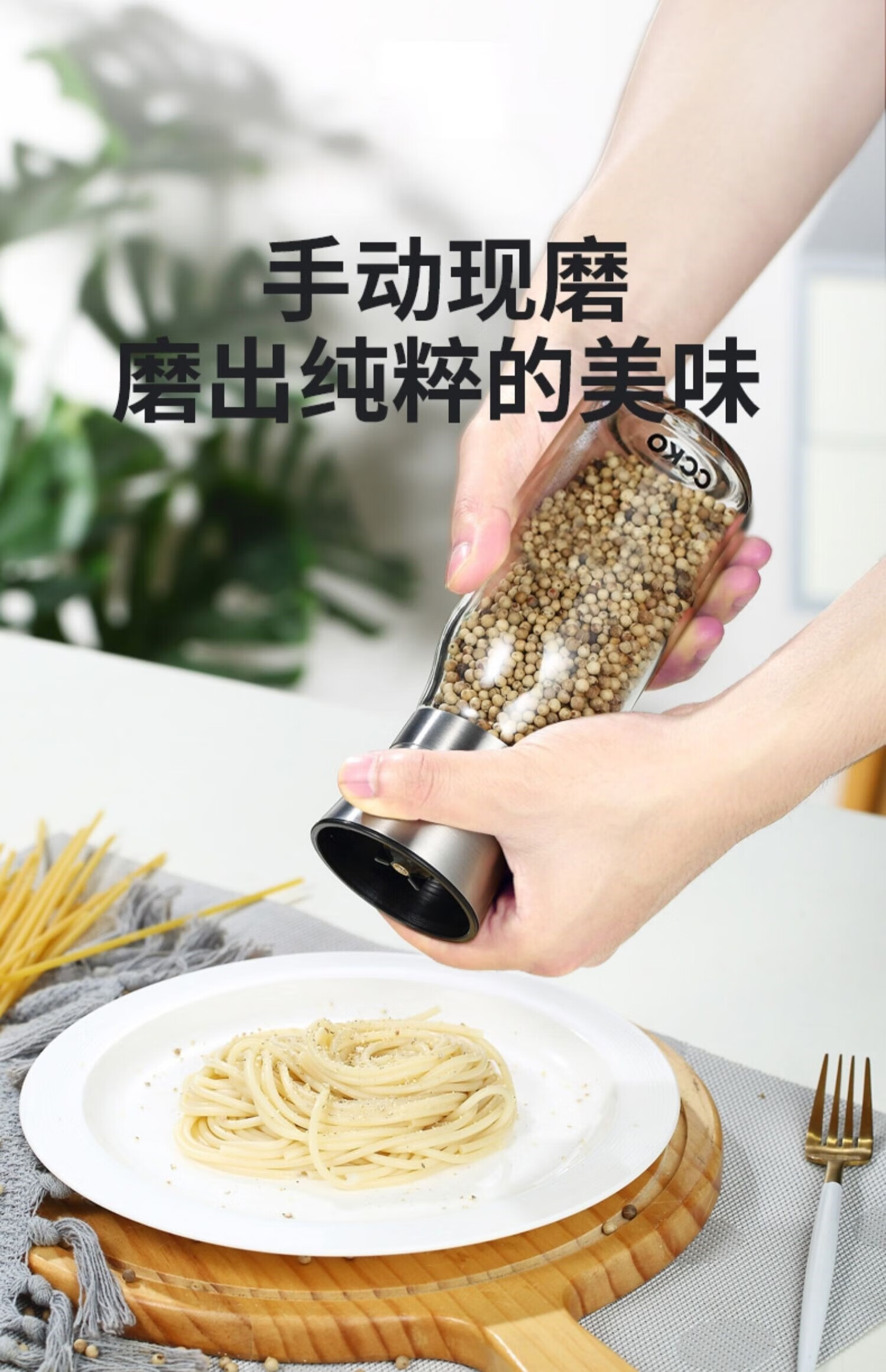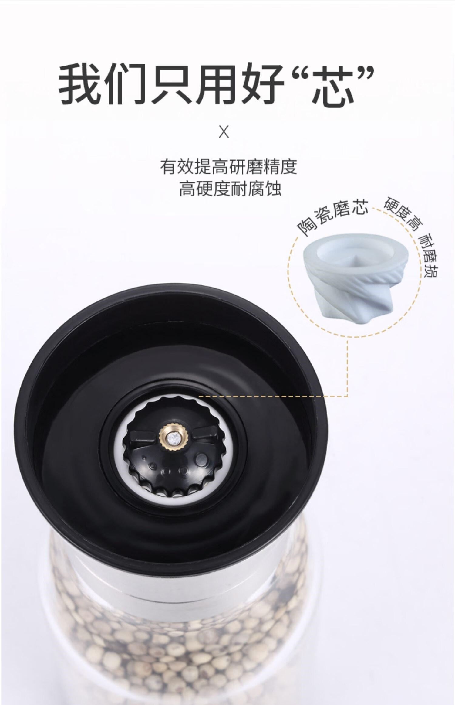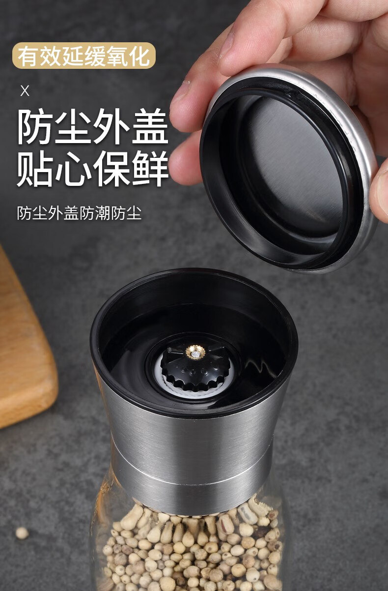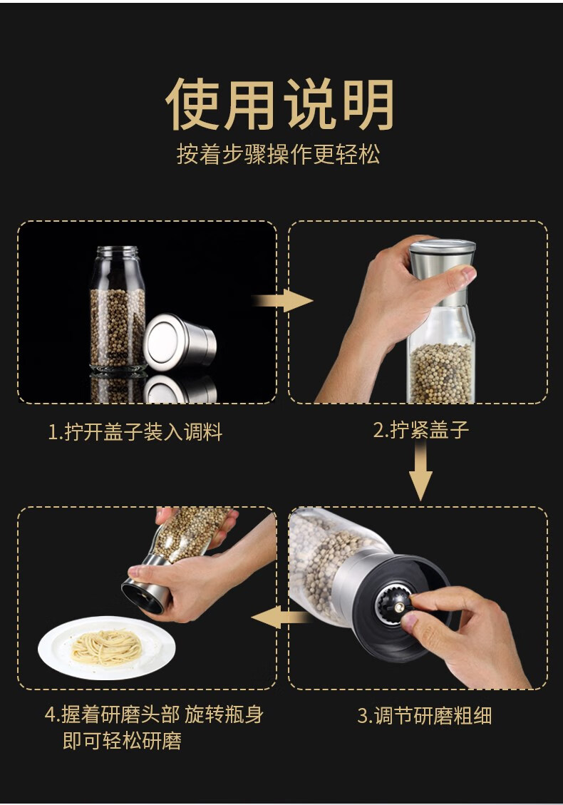 Tuojin 304 stainless steel pepper grinder manual pepper pepper black pepper grinding bottle seasoning bottle jar 300ml stainless steel pepper mill