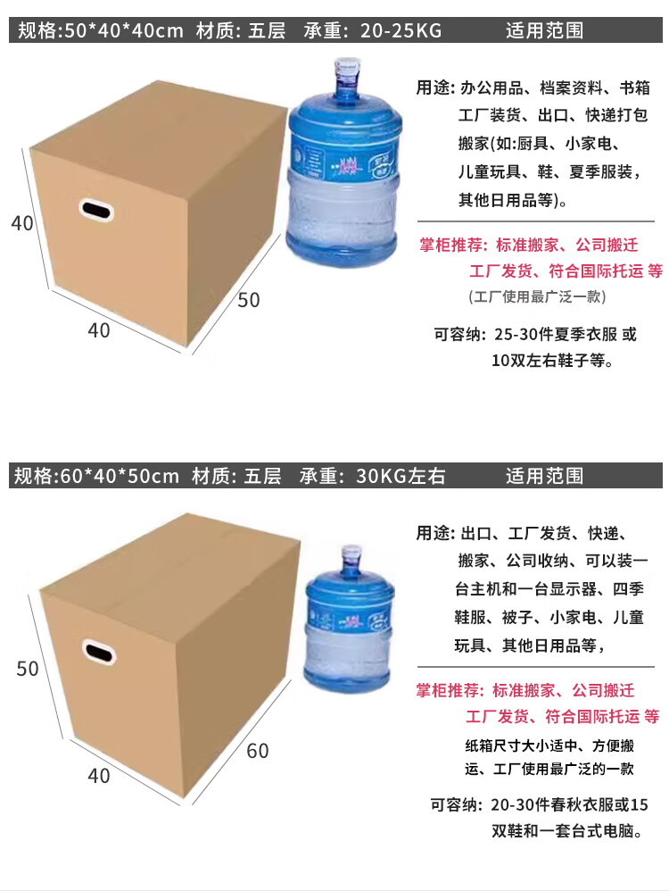 Moving carton, express packing box, storage box, thickened and hardened logistics carton, 5-layer thickened dormitory moving box, 1 pack of plastic buckles, standard style 50*40*40