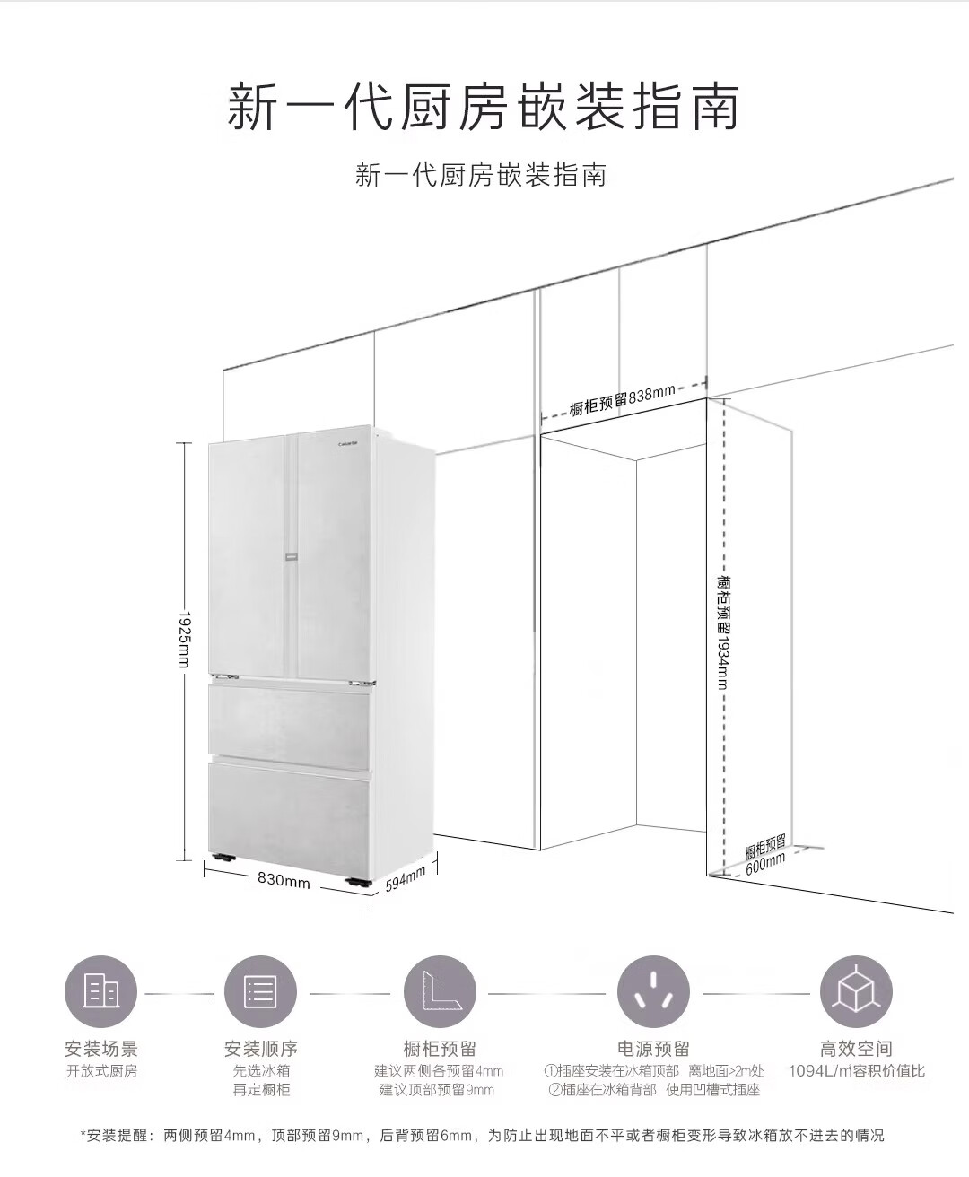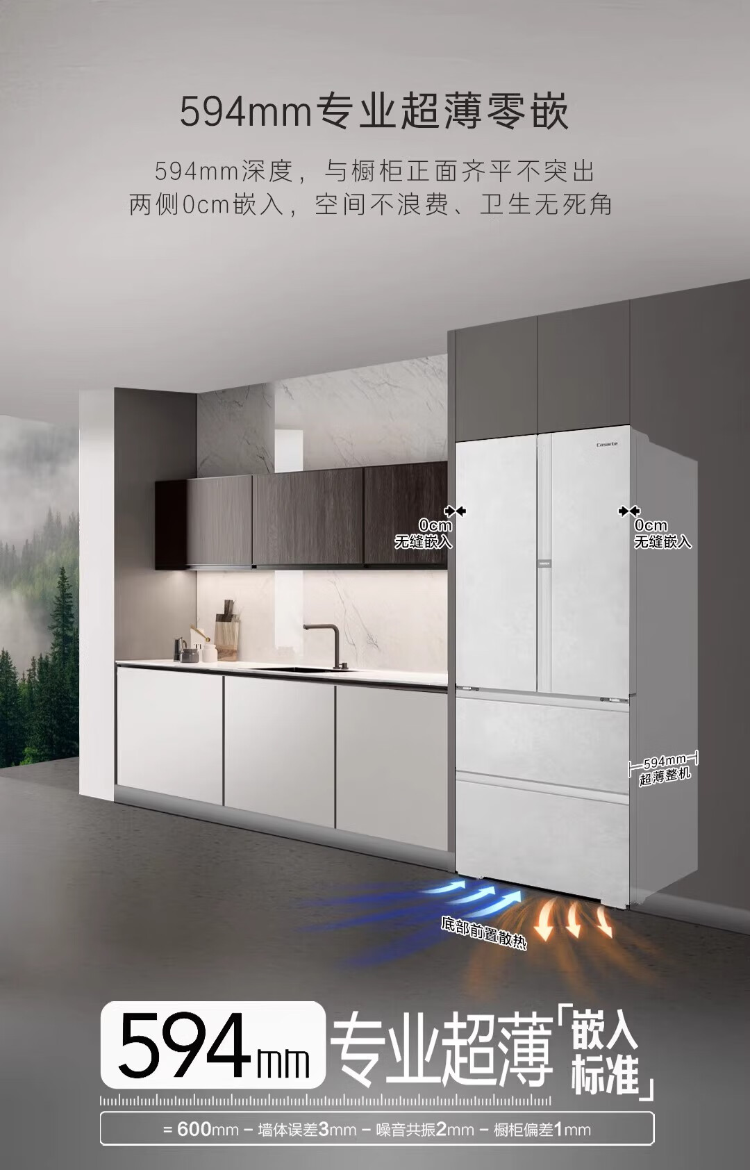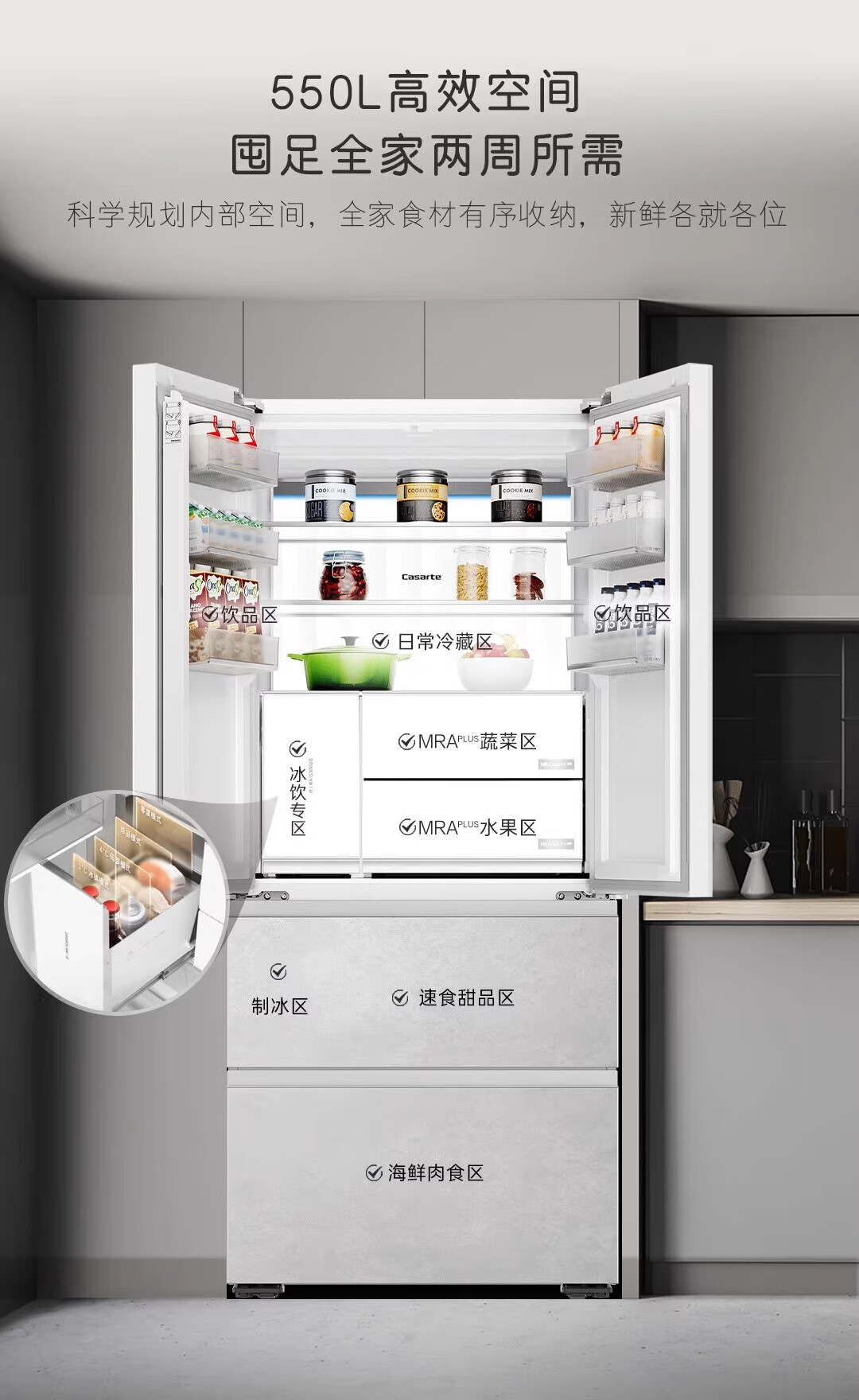 Casarte 550-liter French multi-door ultra-thin zero-embedded fully automatic ice-making and frost-free refrigerator BCD-550WGCFDMGZHU1