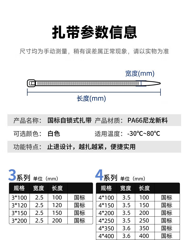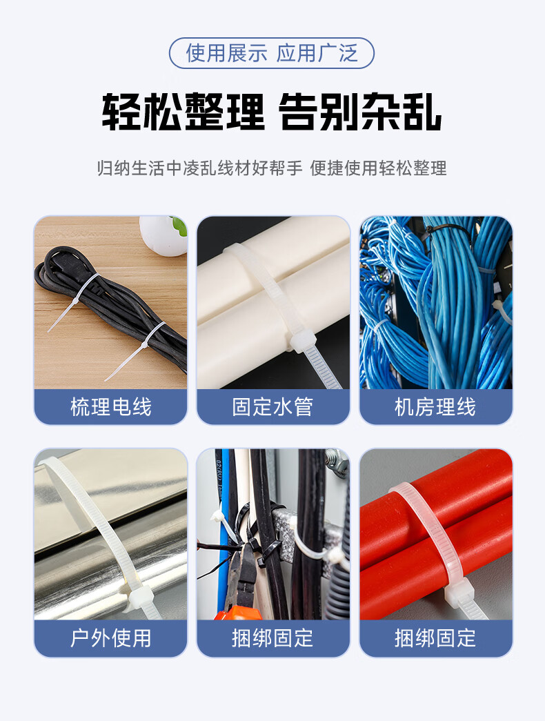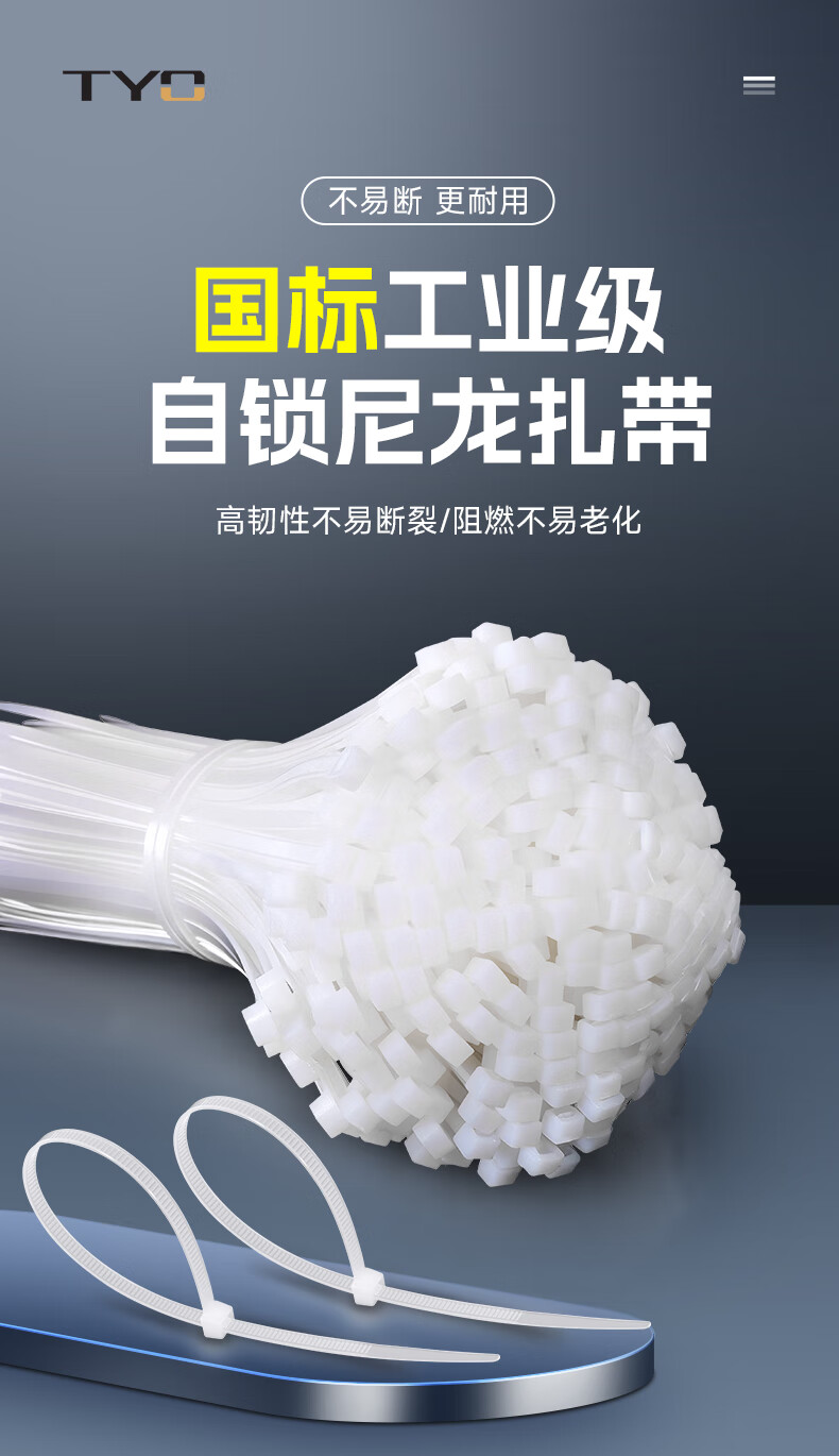 TYO national standard nylon cable tie self-locking cable tie plastic bundling cable management belt wire harness belt white 3*100 (width 2.5mm) white-100 pieces