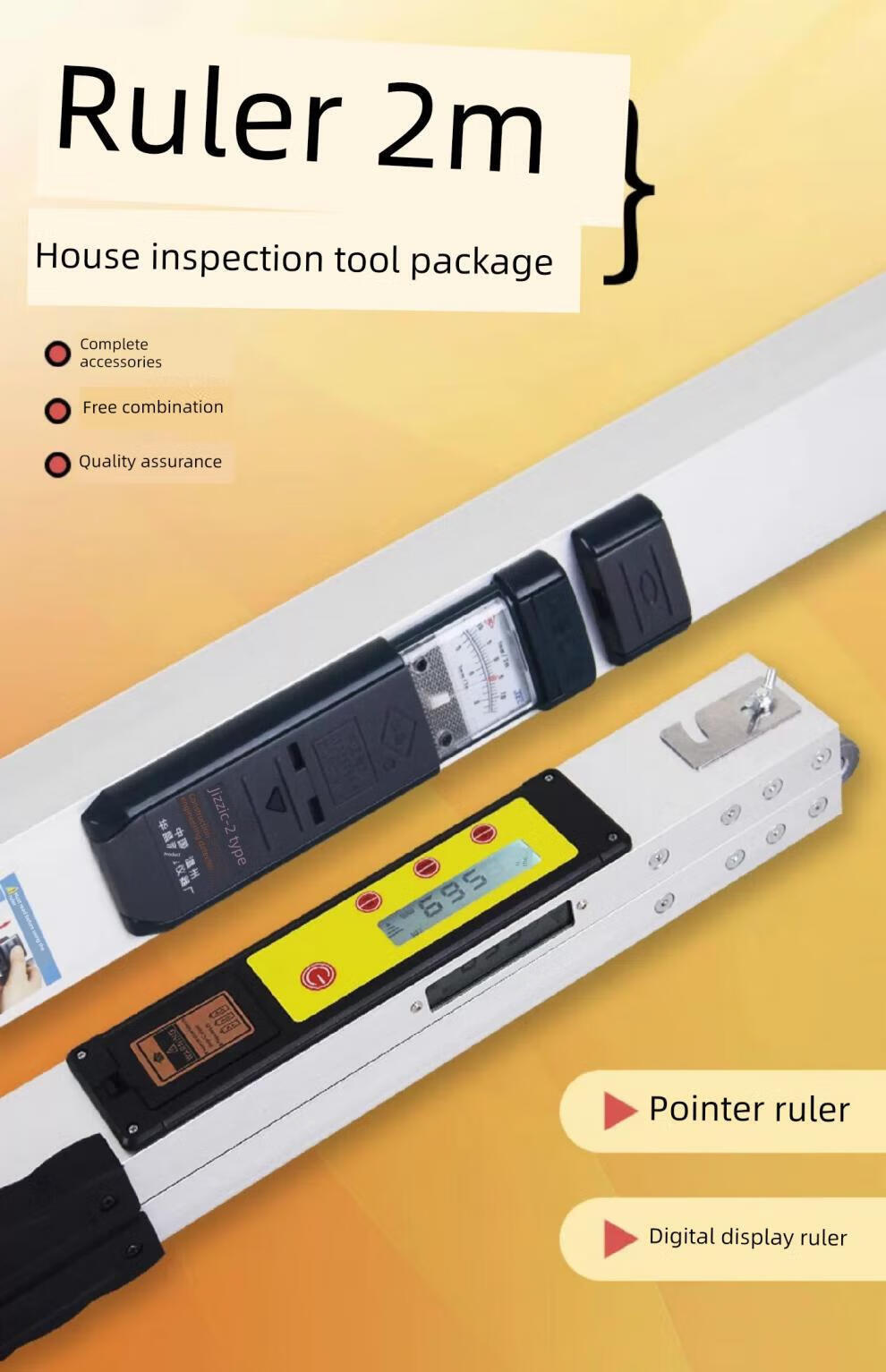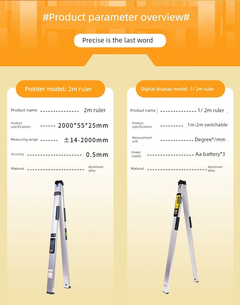 Chengyang 2-meter folding aluminum alloy level ruler with digital display high-precision construction engineering inspection ruler house inspection tool set does not include ruler 7-piece tool kit
