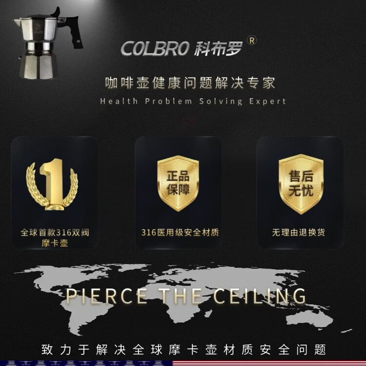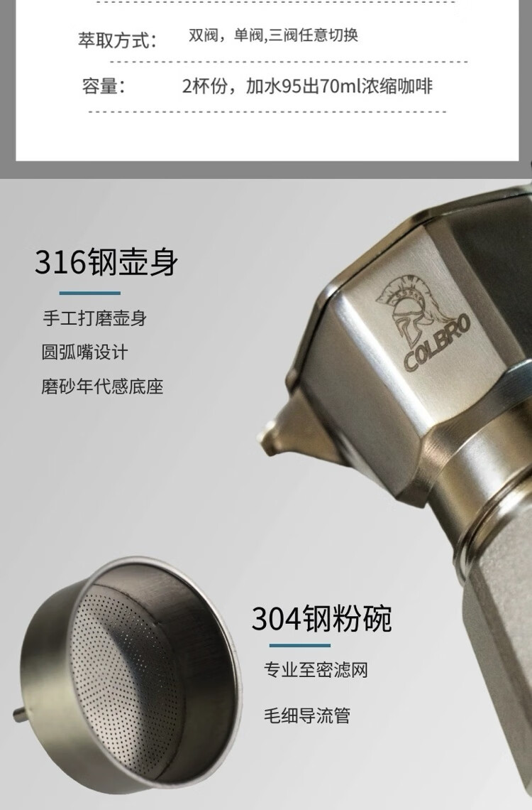 COLBRO Cobro Stainless Steel Double Three Valve Moka Pot Brews Extra Strong Coffee Home Italian Espresso Machine Household Silver 316 Stainless Steel Three Valve Two Cups 7070ml