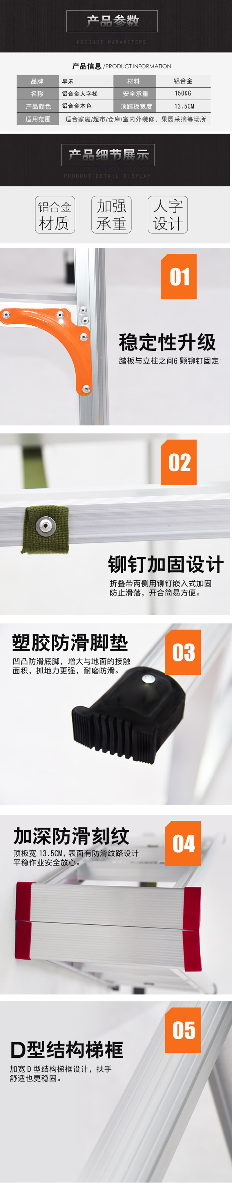 Zaohe aluminum alloy herringbone ladder 1 meter