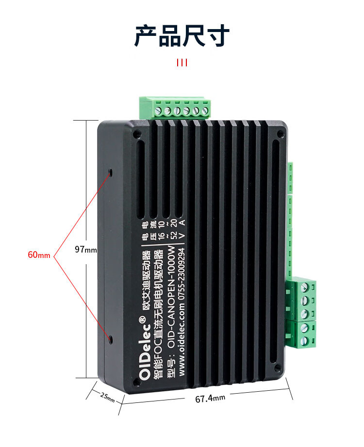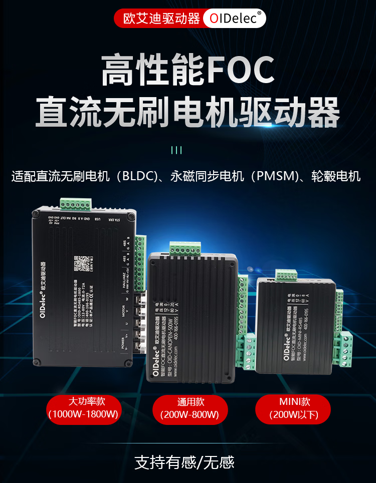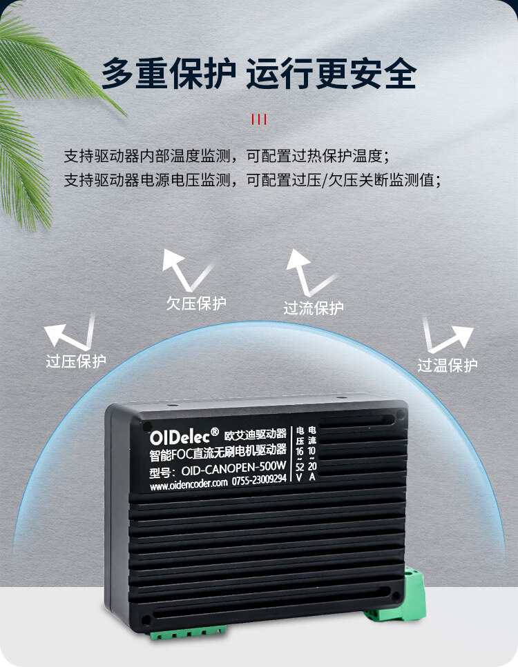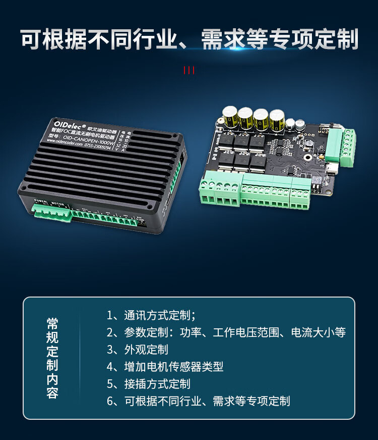 FOC brushless DC motor driver servo motor driver board 485 analog signal CAN pulse potentiometer OID-CANOPEN-1800W provides free remote technical support