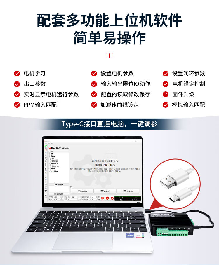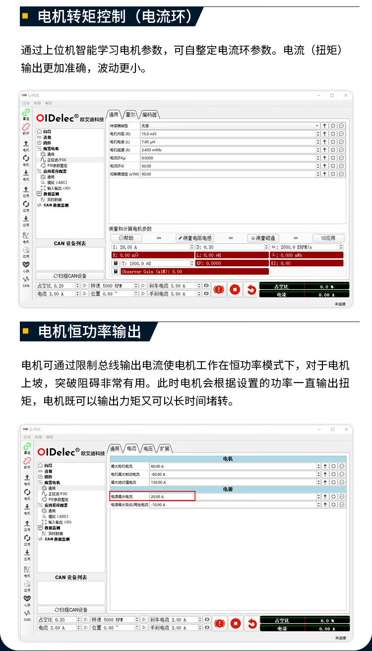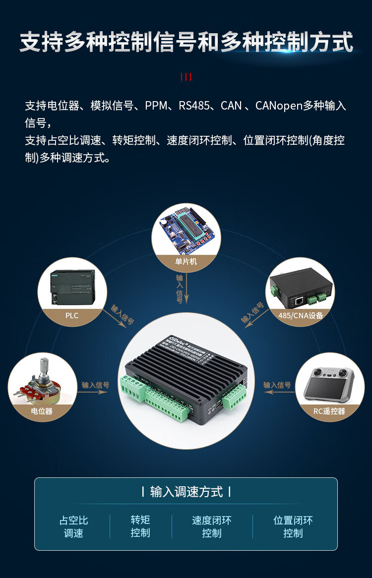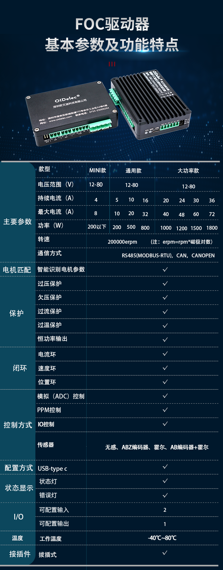 FOC brushless DC motor driver servo motor driver board 485 analog signal CAN pulse potentiometer OID-CANOPEN-1800W provides free remote technical support