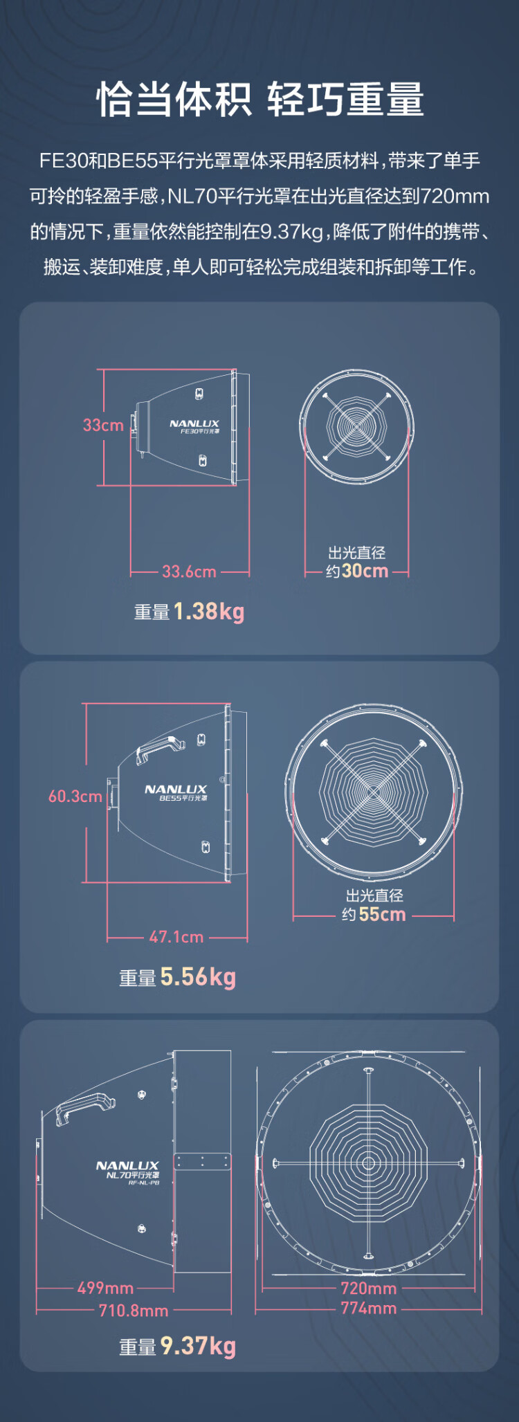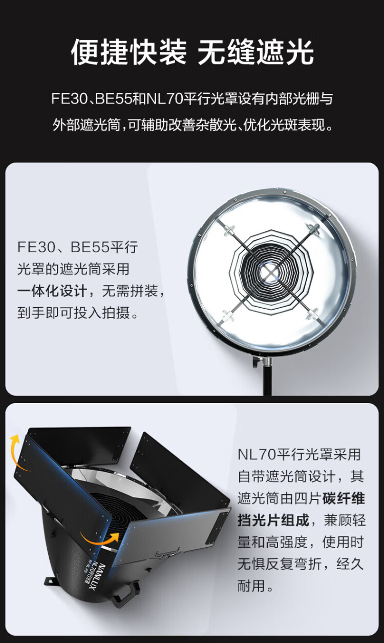 NanluxEvoke150C/600C/1200B/2400B/5000B parallel light mask FE/BE/NL bayonet condenser light tube universal FM/Baorongkou Nanguang light control accessories BE bayonet 55 parallel light mask