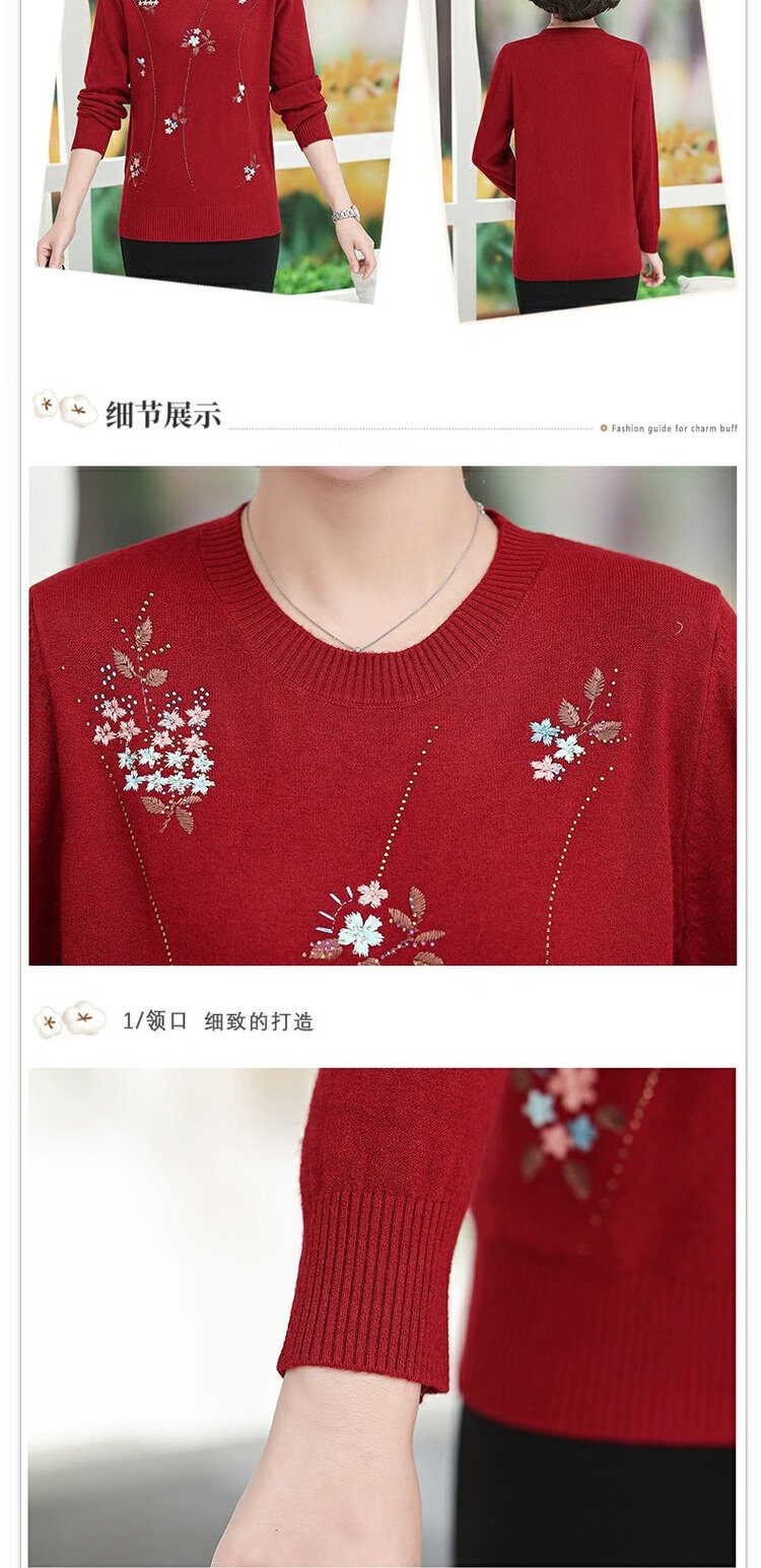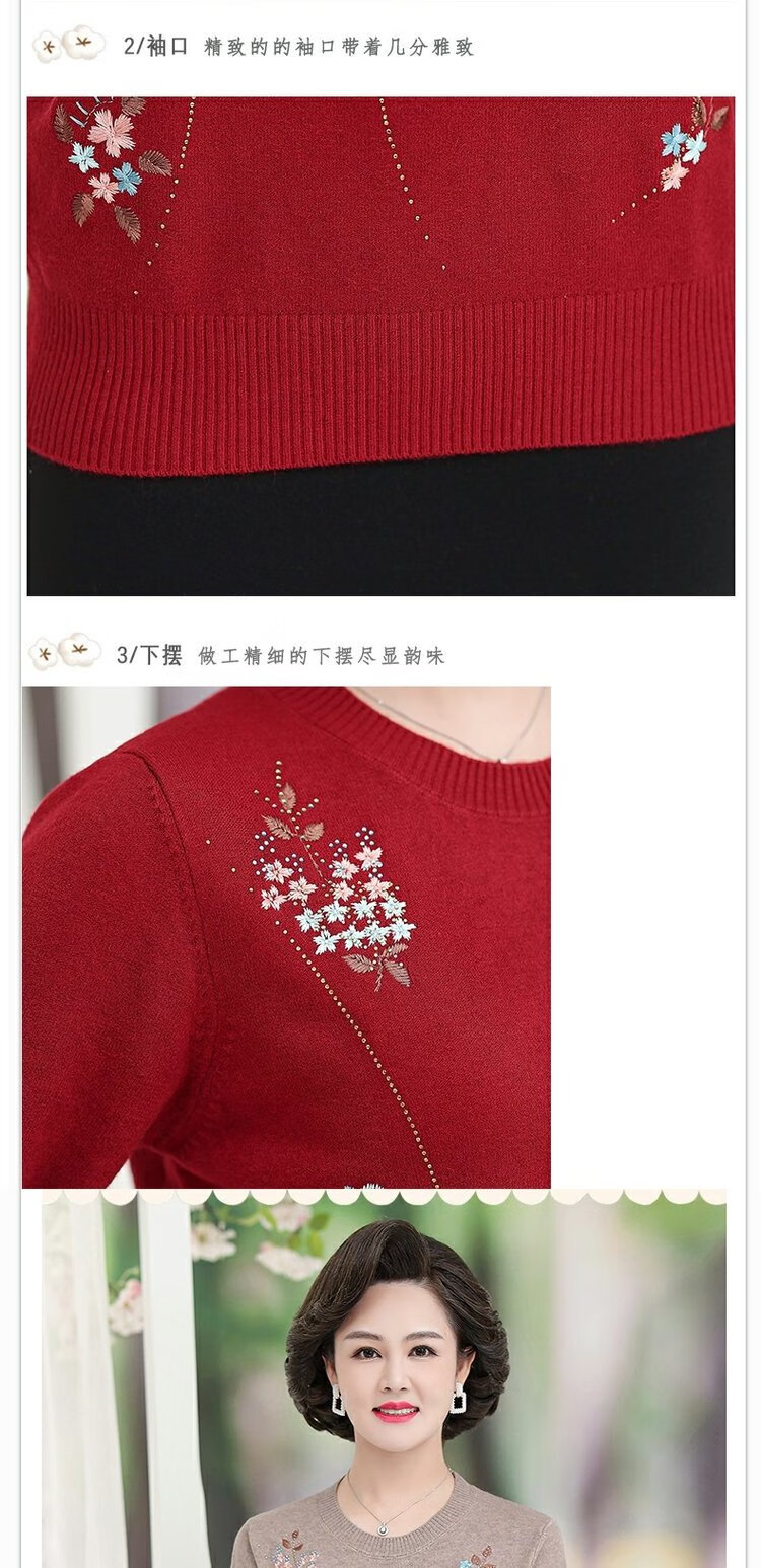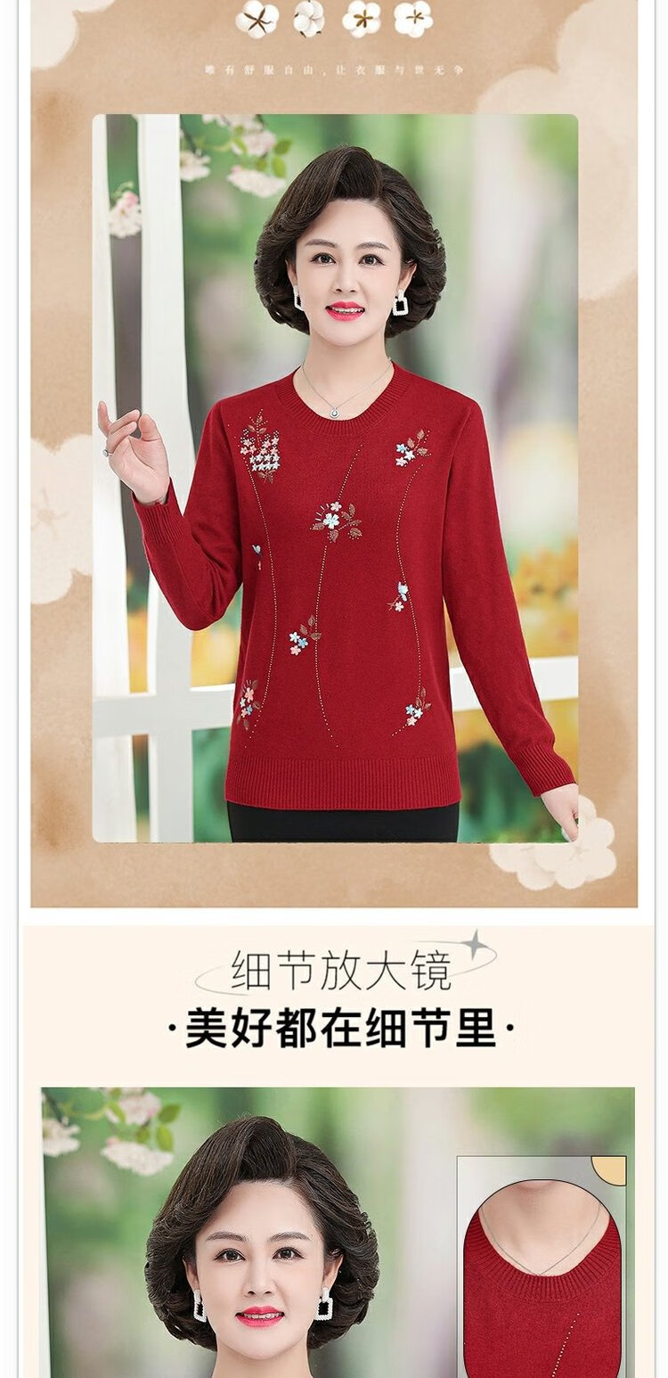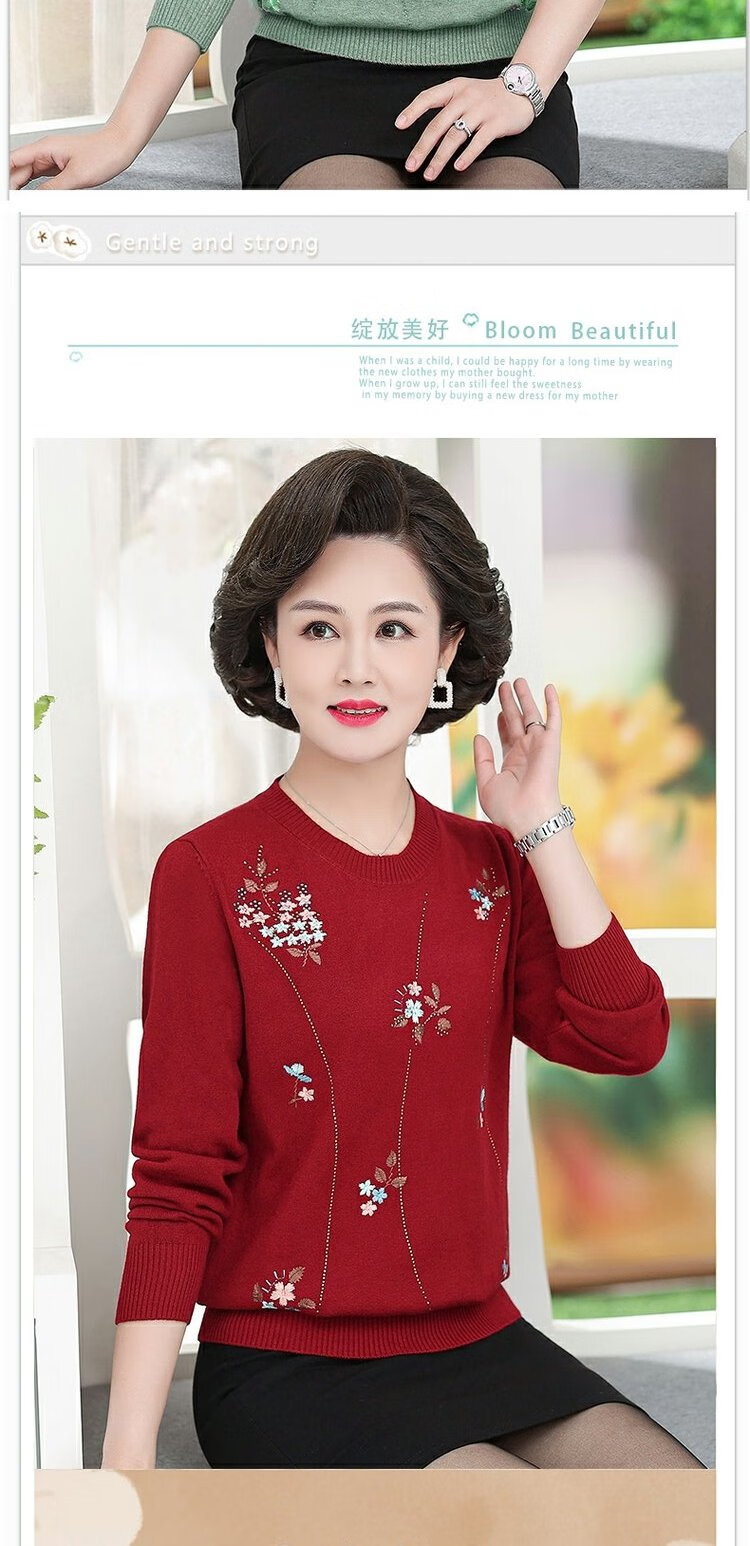 LangSha mother autumn sweater bottoming shirt middle-aged women thin T-shirt middle-aged and elderly spring and autumn style long-sleeved top 598 brick red 3XL 135-145 pounds or so