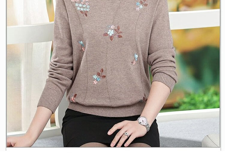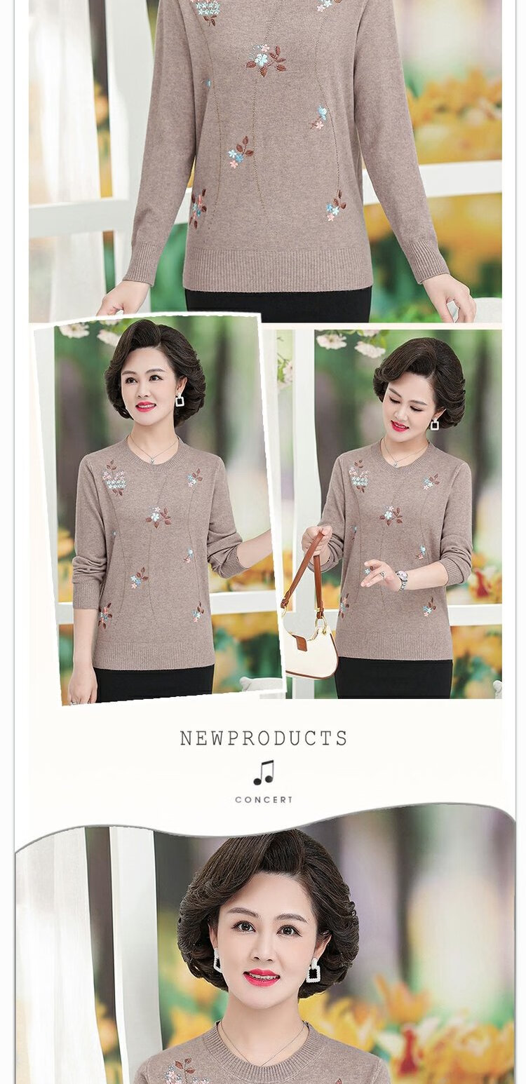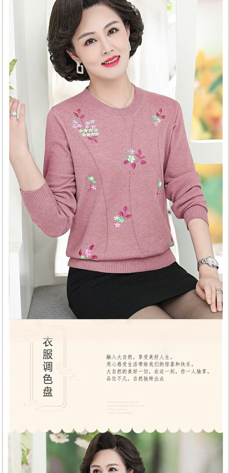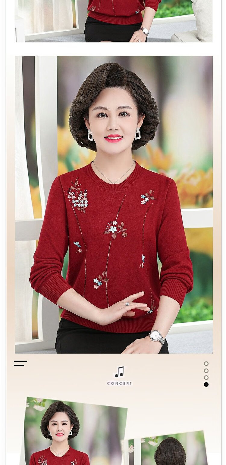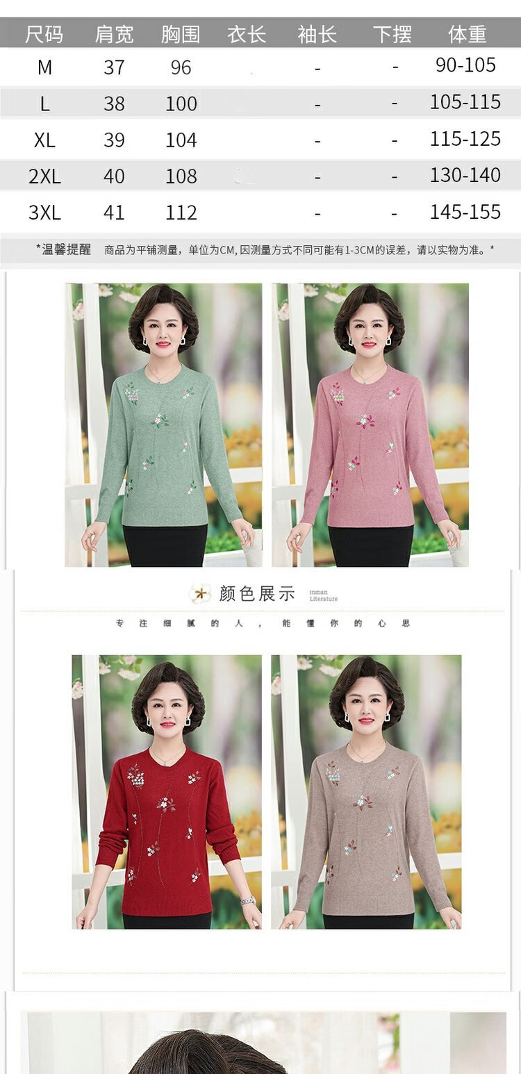 LangSha mother autumn sweater bottoming shirt middle-aged women thin T-shirt middle-aged and elderly spring and autumn style long-sleeved top 598 brick red 3XL 135-145 pounds or so