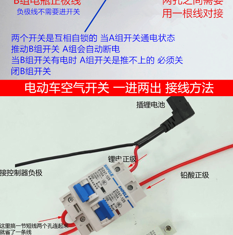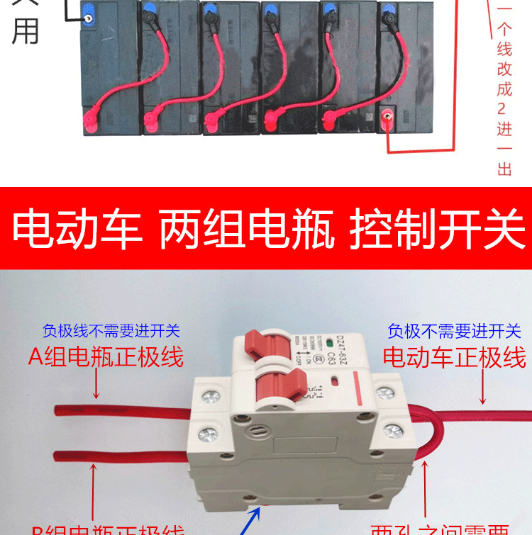 Electric vehicle DC air switch 12V48V72V dual battery conversion two-in-one-out interlock switch 63A250A B1+132A disconnect the positive line
