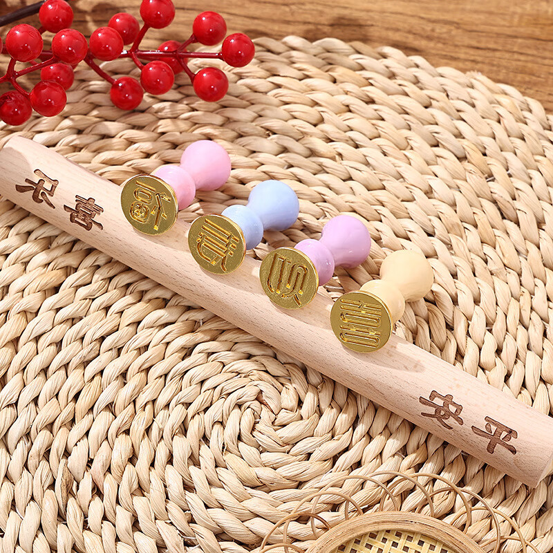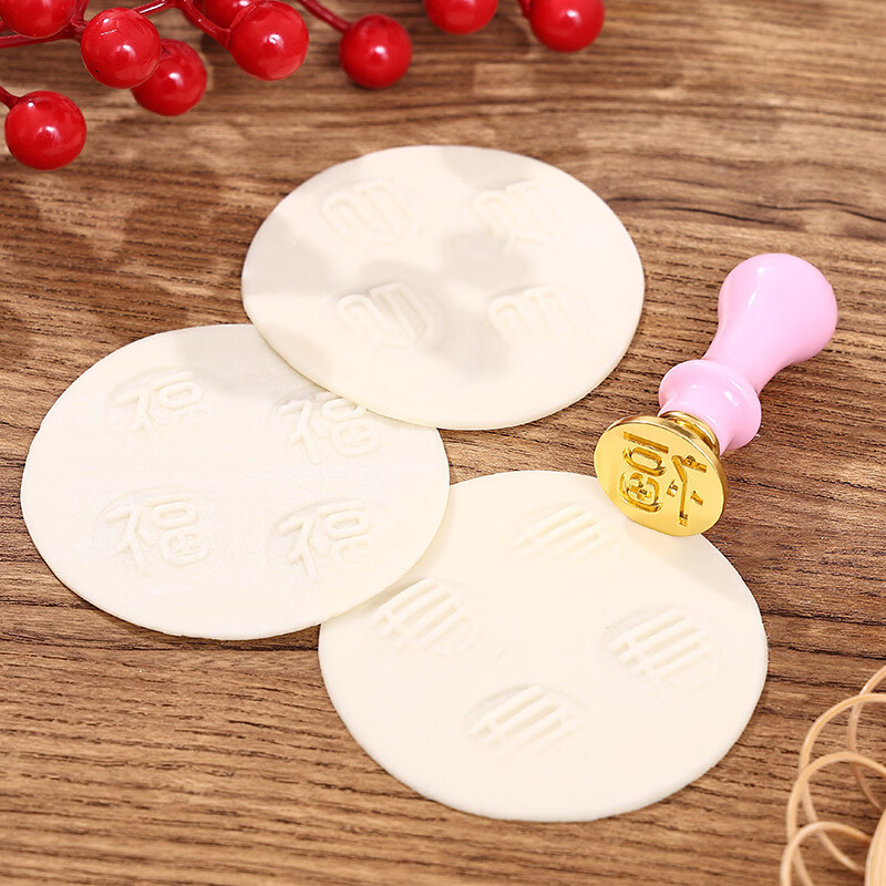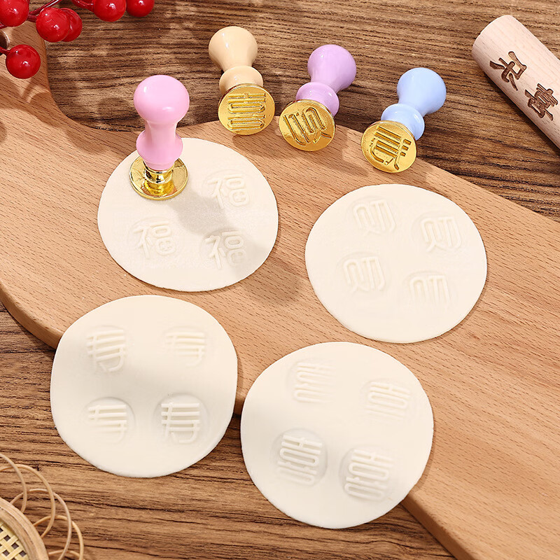 OEING is good-looking, delicious and has a lot of meaning~ Dumpling seal pressed dumpling wrapper, fortune, wealth, happiness and longevity dumpling seal mold for home use 1 set (luck + happiness + wealth + longevity) seal + handle
