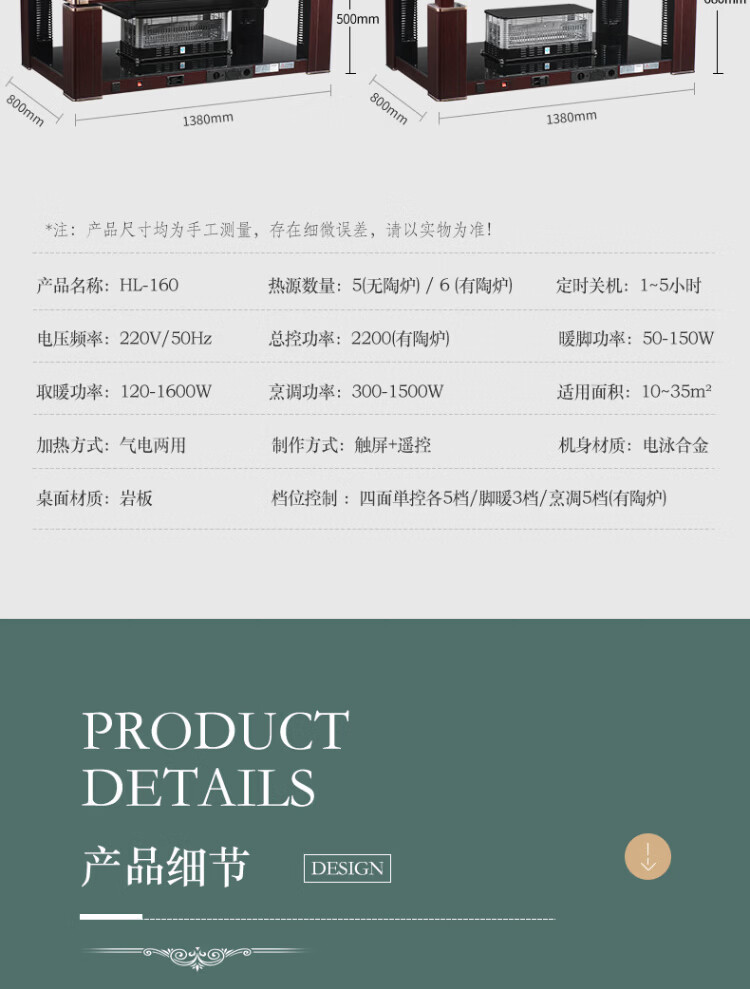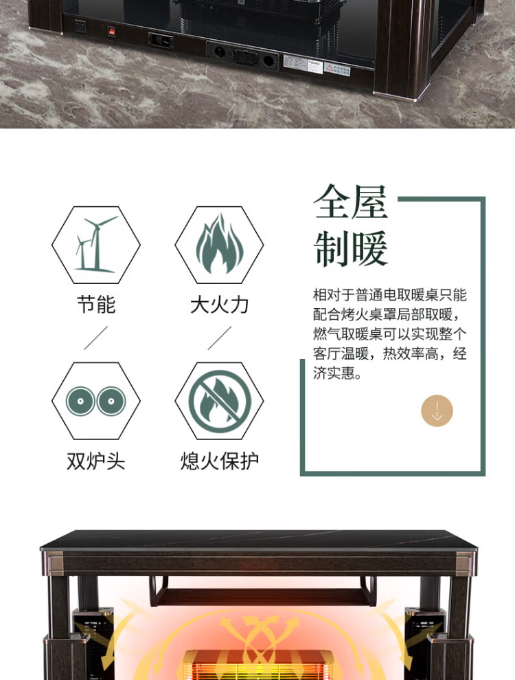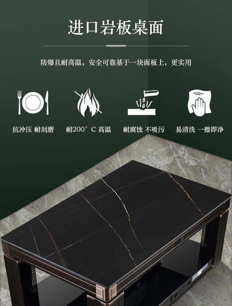 Guiyan Gas Natural Gas Hidden Induction Cooker Heating Table Electric Warming Table Coffee Table Fire Table Stove Electric Heater Energy-saving Home Furniture Heater Lift Yanyun White 1.6 Meter Gas Electric Fierce Double Burner Mobile Caster Zipper Table Cover