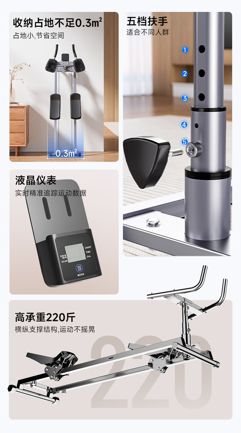 SEAN LEE home indoor crawler, fitness equipment, abdominal curling machine, home waist strengthening machine, thin belly, special abdominal control tool for men and women, steel rope linkage model, multi-function electronic watch + 5 levels of height, super soft kneeling pad