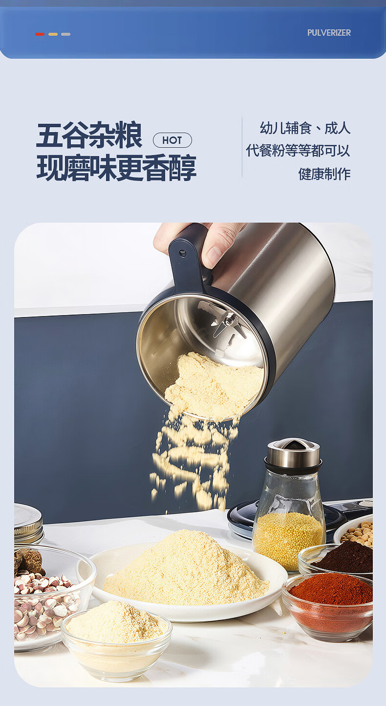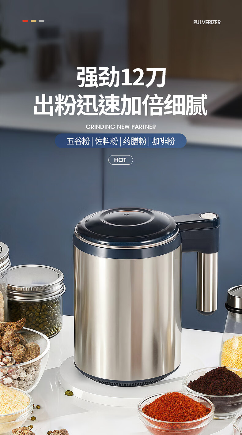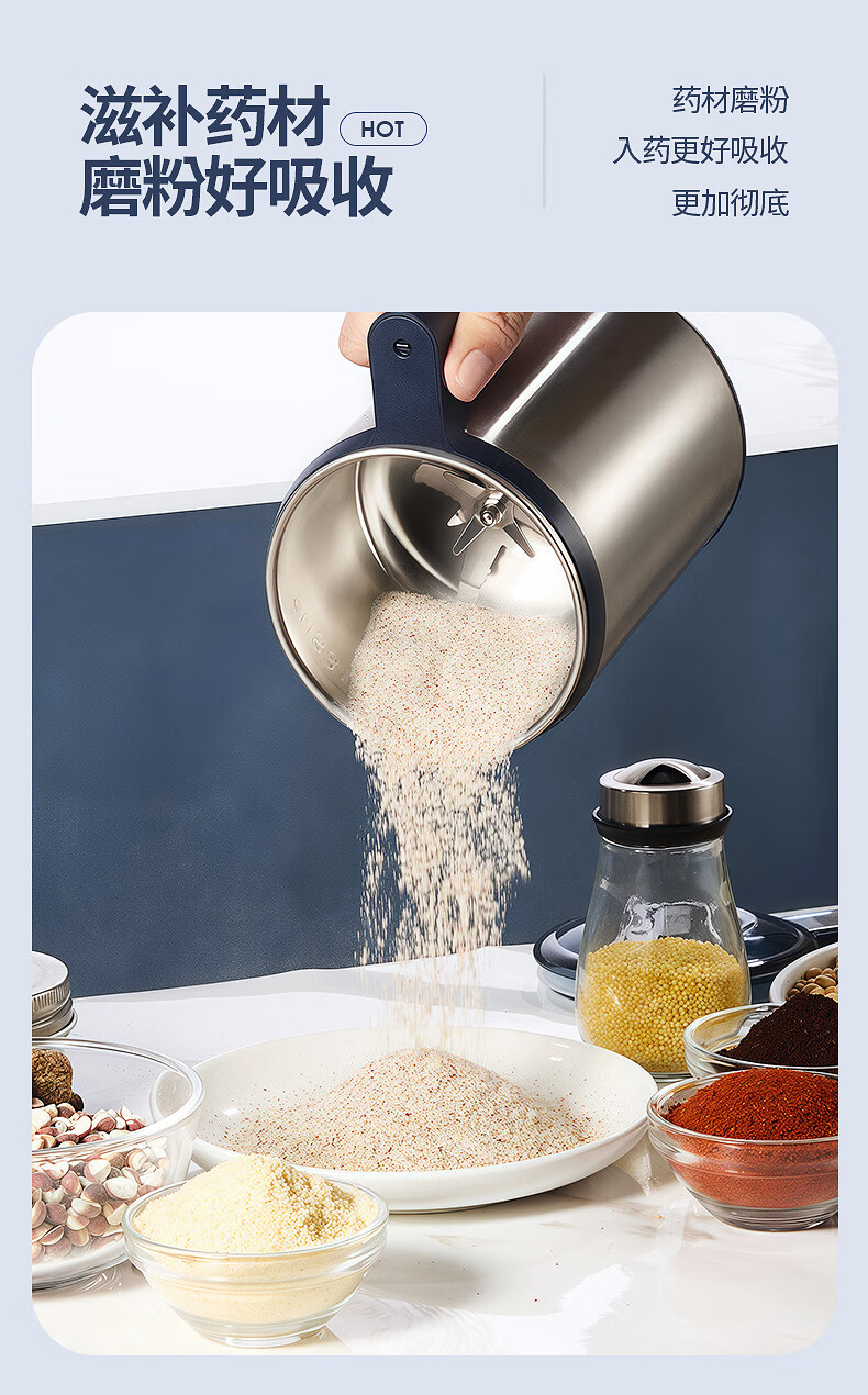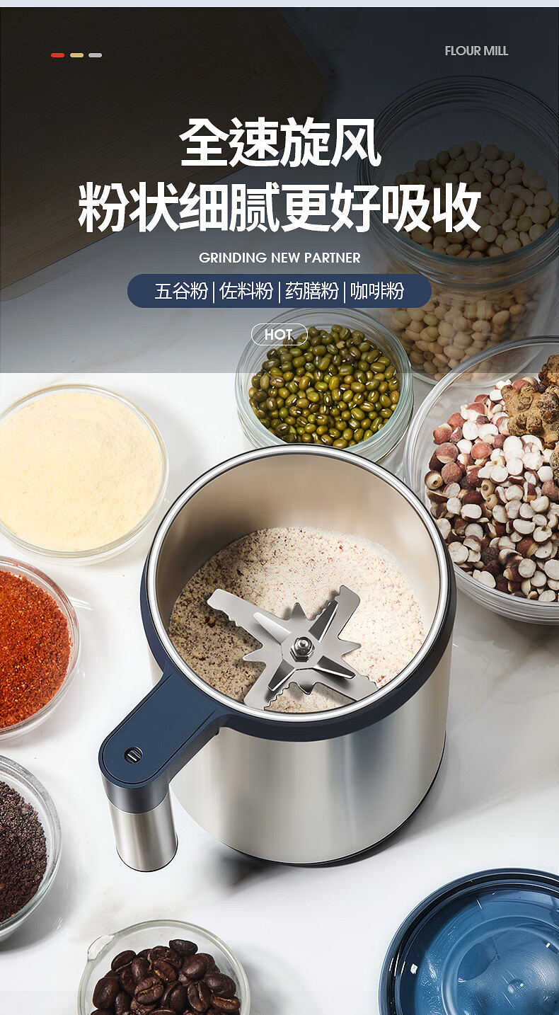 Baihaojia household grinder ultra-fine grinder electric grain grinder stainless steel crushing notoginseng grinder high quality 316 + brush + spoon + sleeve