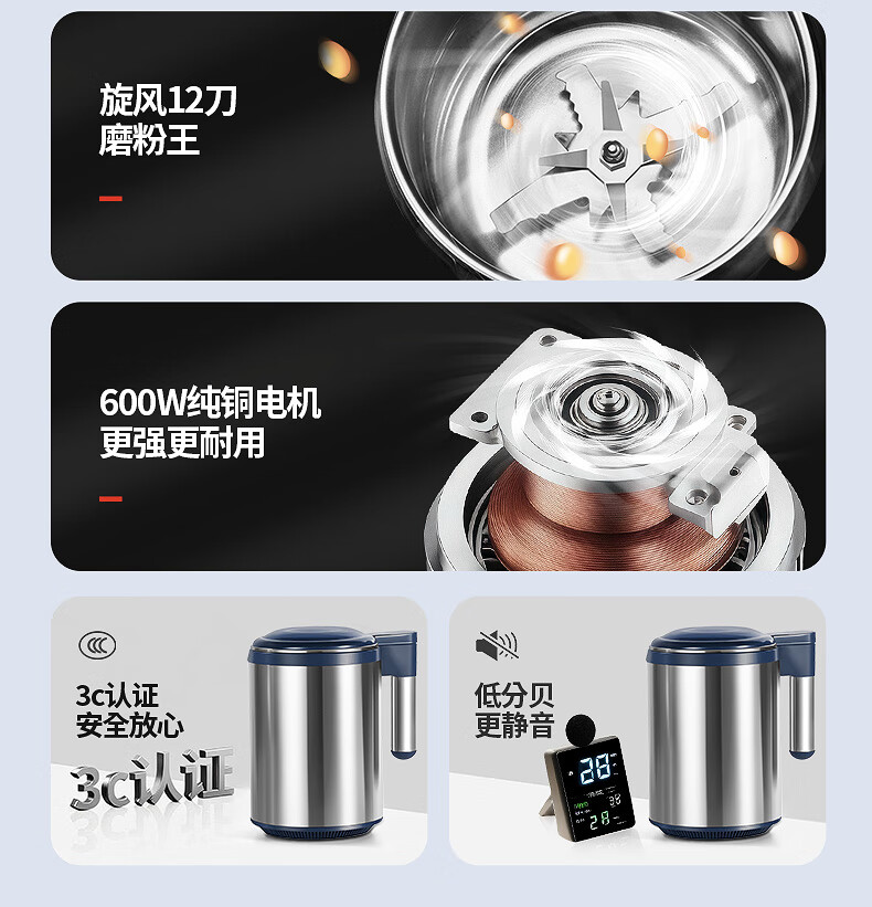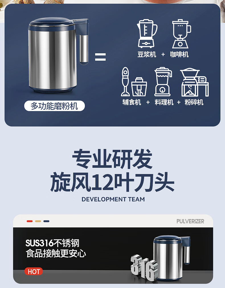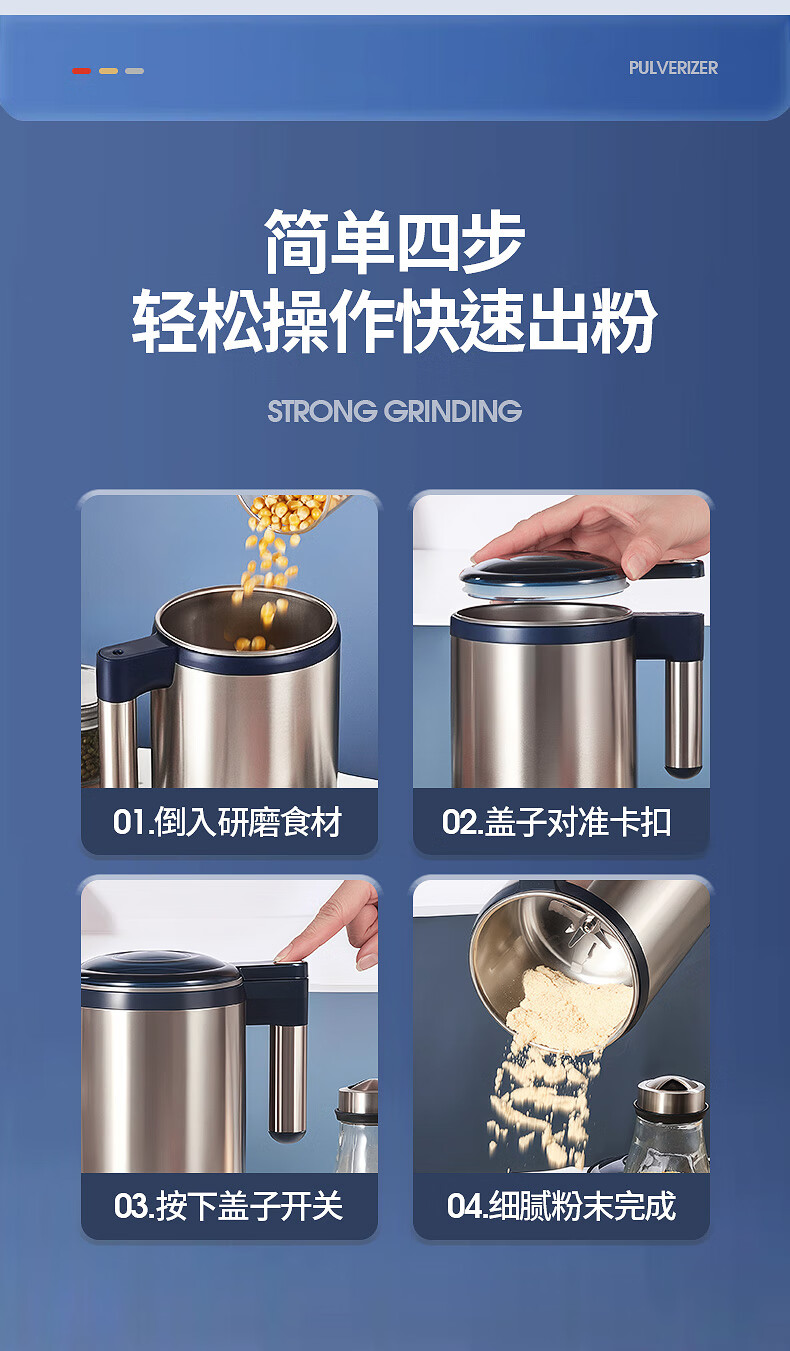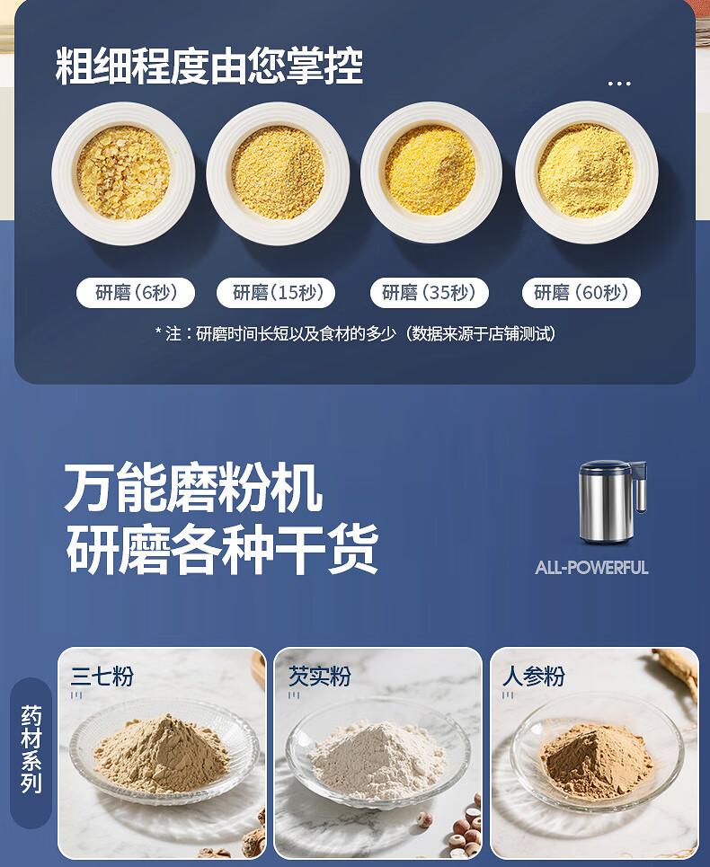 Baihaojia household grinder ultra-fine grinder electric grain grinder stainless steel crushing notoginseng grinder high quality 316 + brush + spoon + sleeve