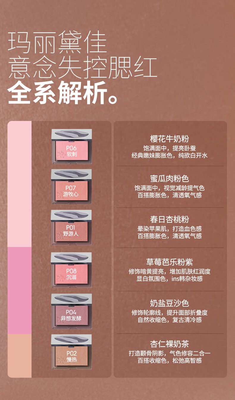 Marie Degar's out-of-control blush, natural nude makeup, contouring and brightening, girly pink rouge powder New Year's gift P06 soft thorn monochrome