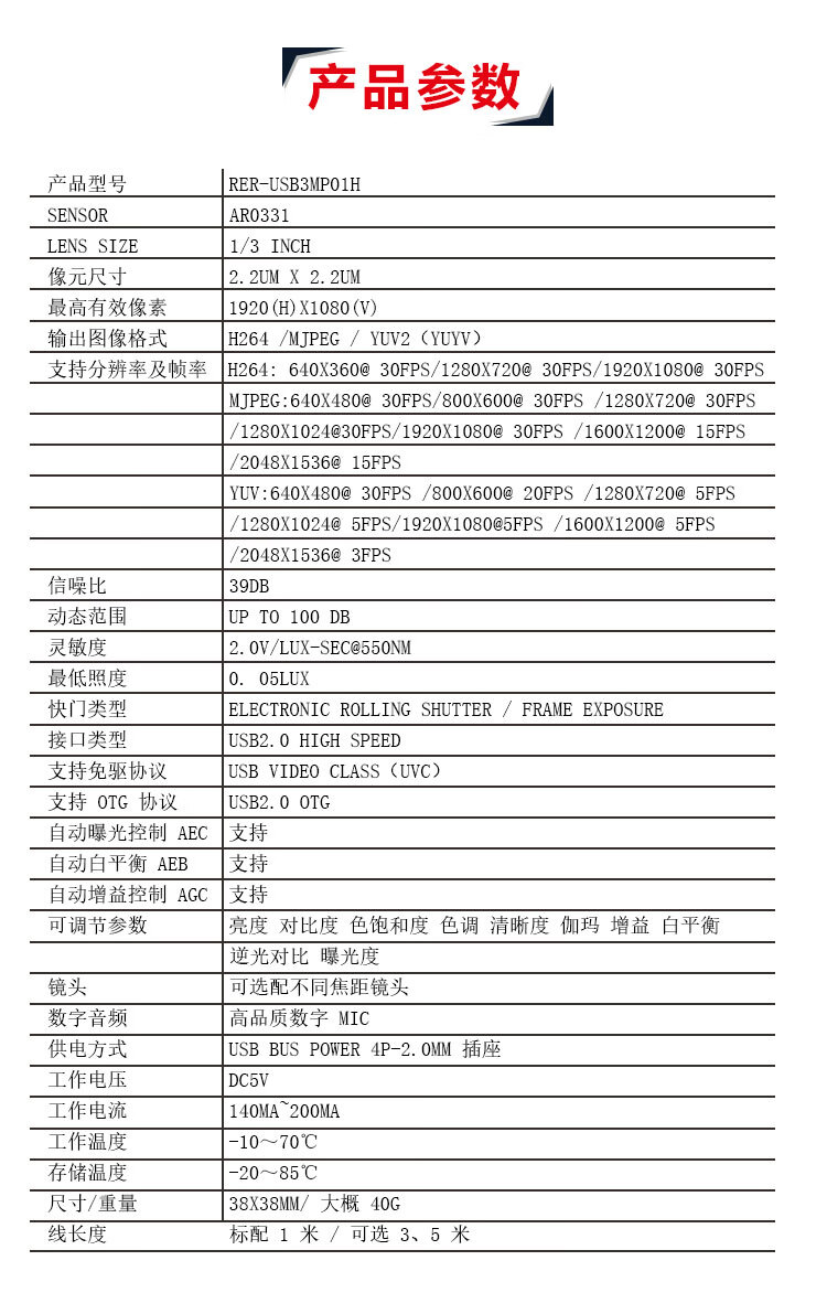 Wide dynamic 1080P high-definition USB camera module module face recognition backlight monitoring witness comparison module + infrared light + shell