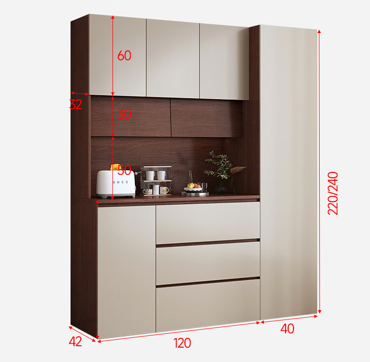 Shu Yiran mid-century style living room dining cabinet wall-mounted integrated storage cabinet multi-functional snack wine cabinet home dining room tea high cabinet Contact customer service to customize color and size