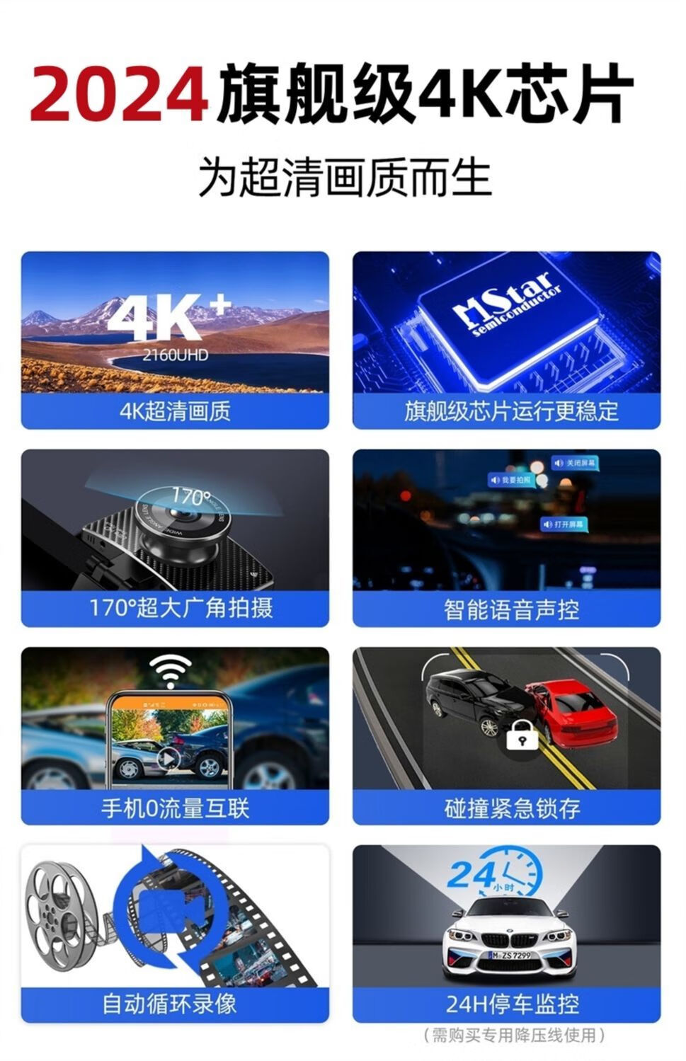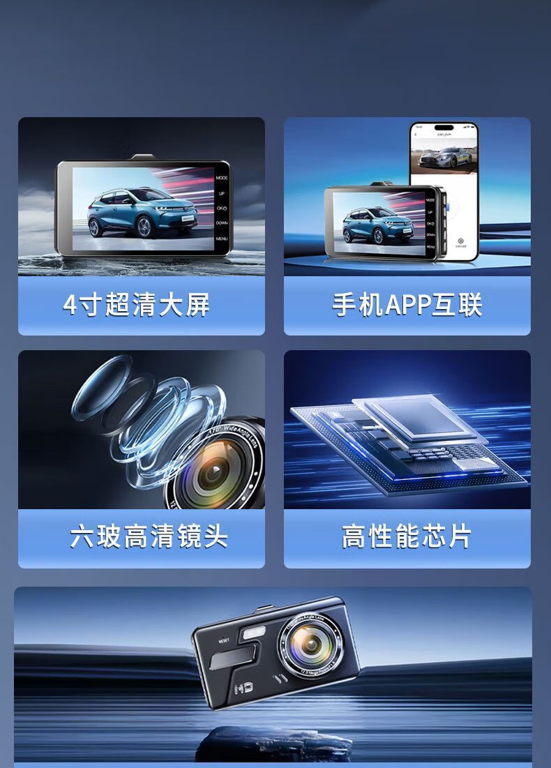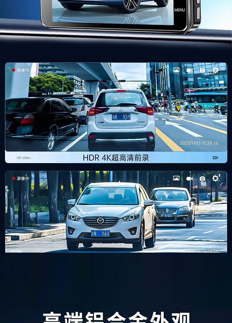 Driving recorder 2024 new high-definition 4K night vision front and rear dual recording reversing image installation-free all-in-one machine 20231600P ultra-clear version front recording 2025 no card need to bring your own card