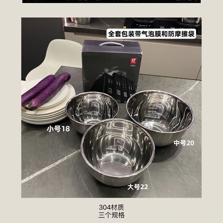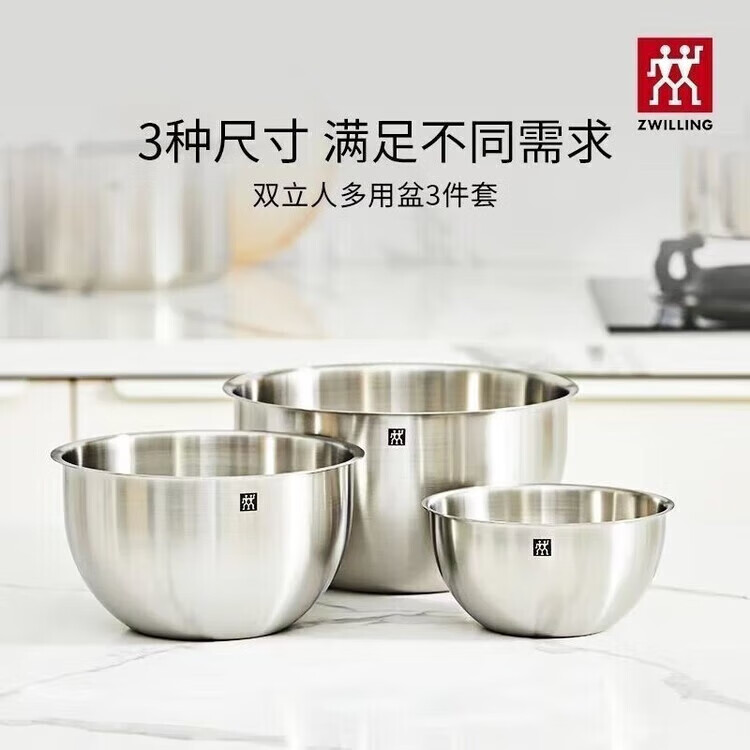 ZWILLING German stainless steel basin household multi-functional anti-rust food-grade basin kitchen and wash basin rice anti-fall basin three-piece steel basin set