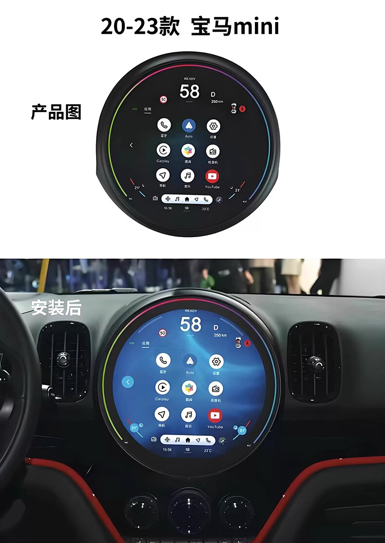 Luyi BMW MINI modified and upgraded central control large screen Android navigation hicar mini 360 panoramic carplay dedicated 07-19 Mini/11.7 inch/8 core 8G+64G large screen standard + high definition reverse