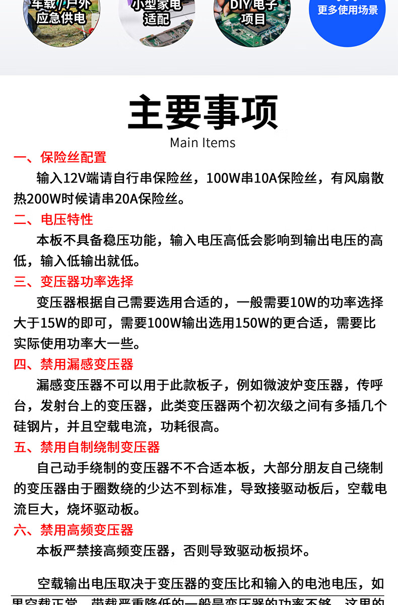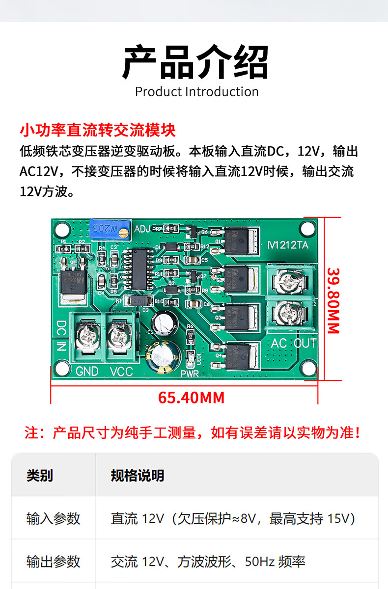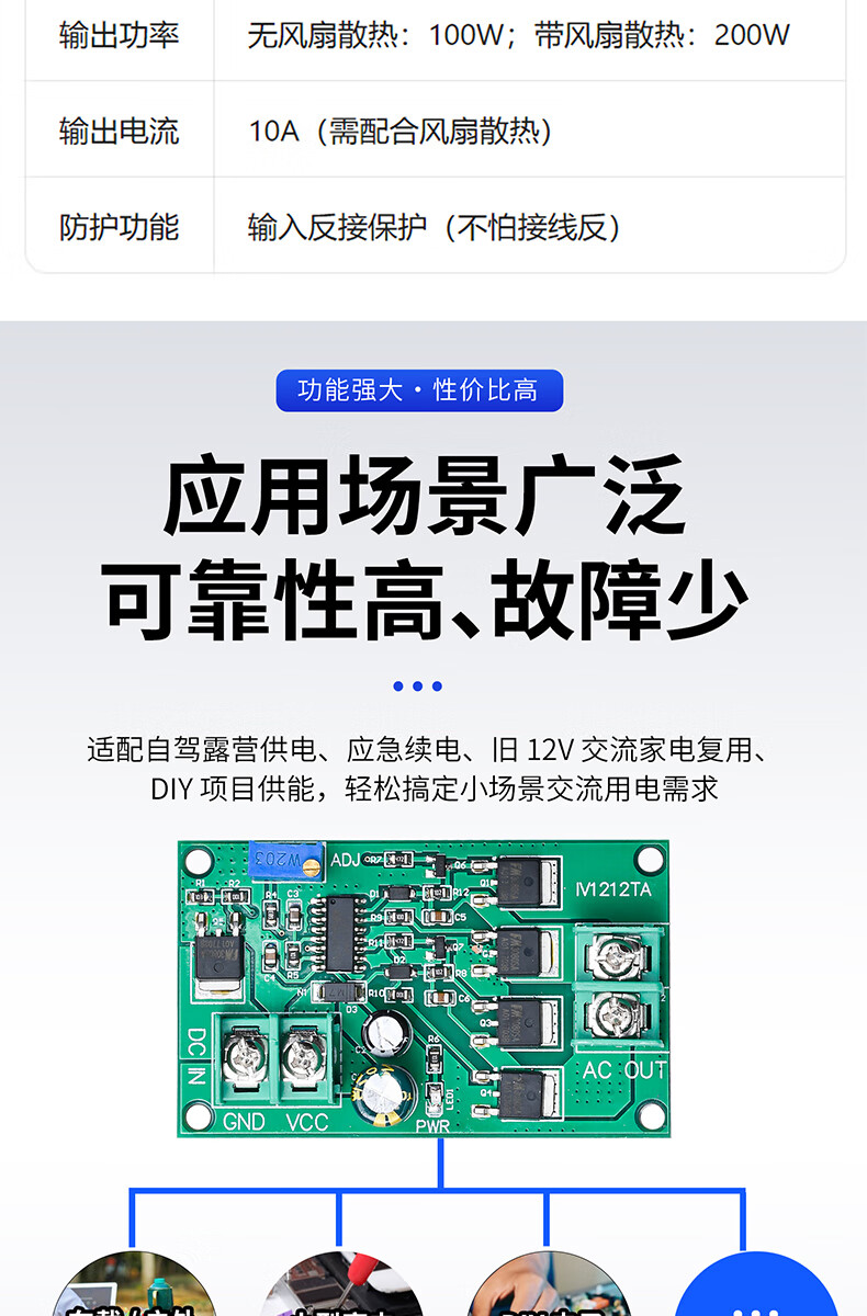 Dengshitang 12V to 100W DC to AC module DC power module power adapter square wave inverter transformer drive board DC to AC conversion module power conversion board IV1212TA (12V 100W DC to AC module)