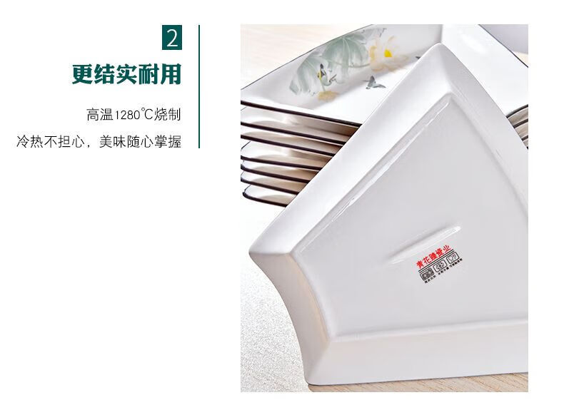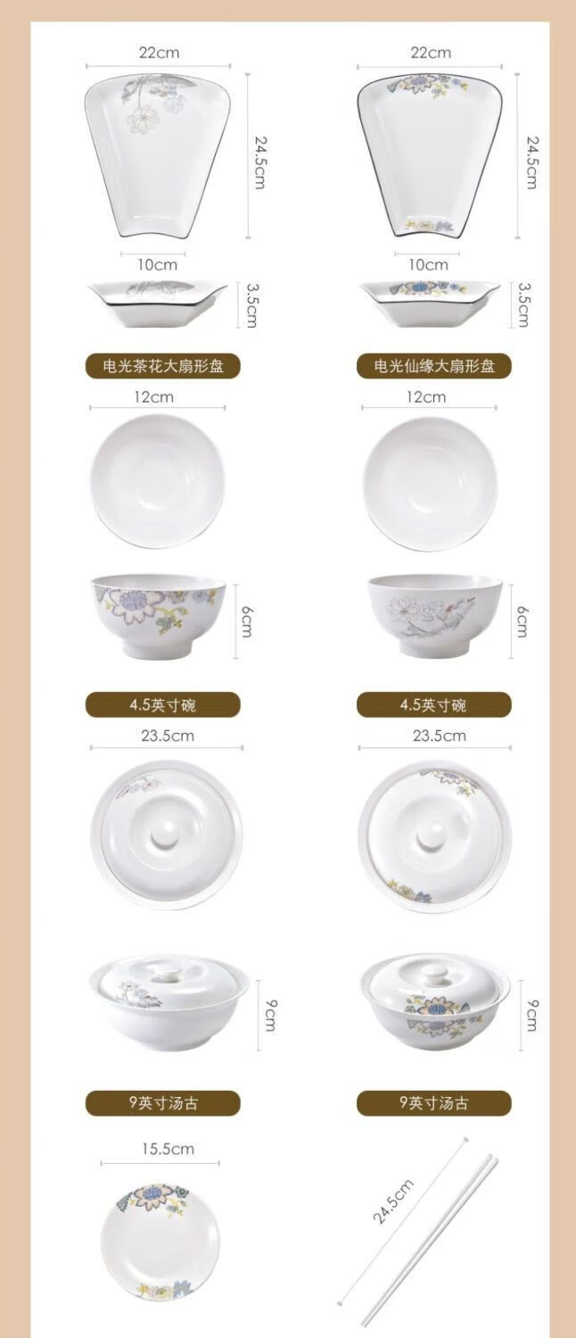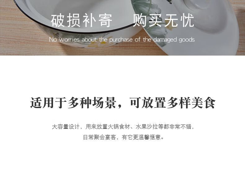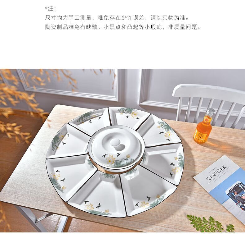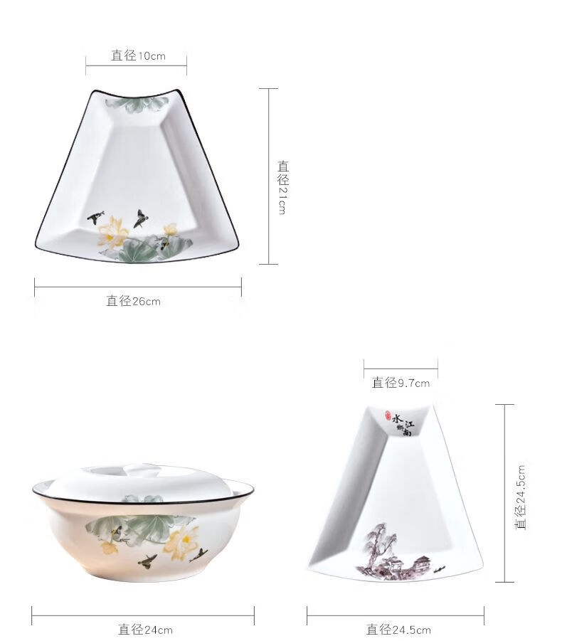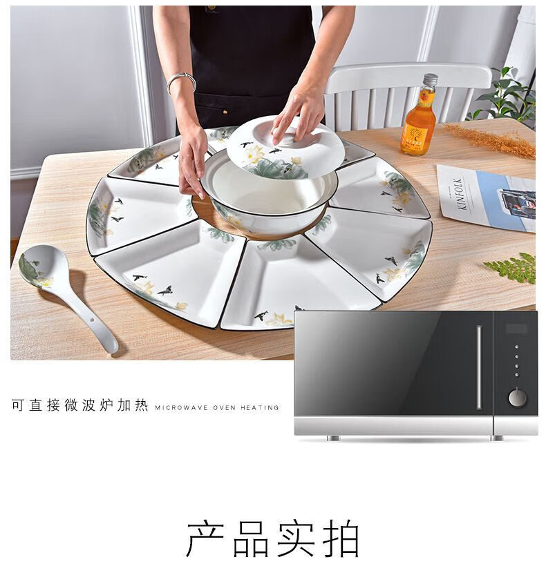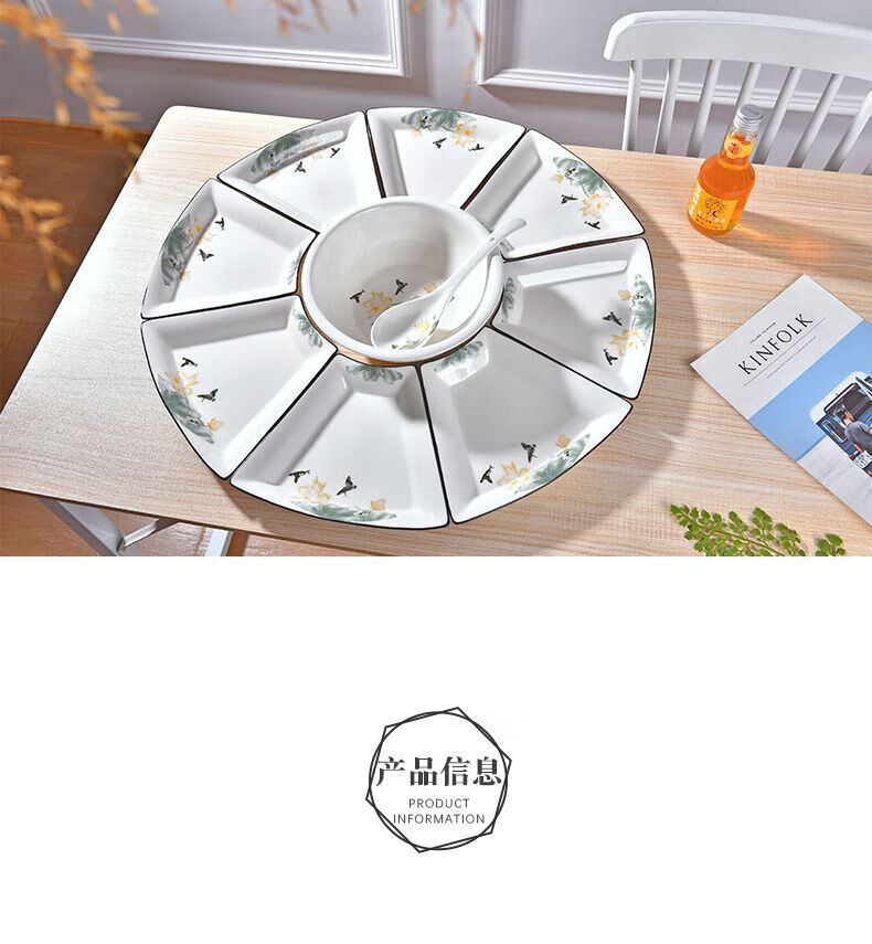 Xiongwochi Ceramics Household Reunion Bowls and Dishes Platter Reunion Dinner Tableware Combination Fan-shaped Dish Plate Creative Set 520 Lotus Nine-piece Uncovered Platter Diameter 60cm