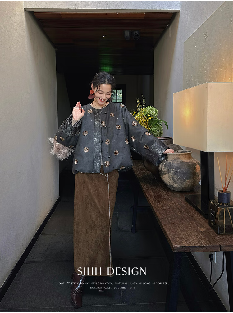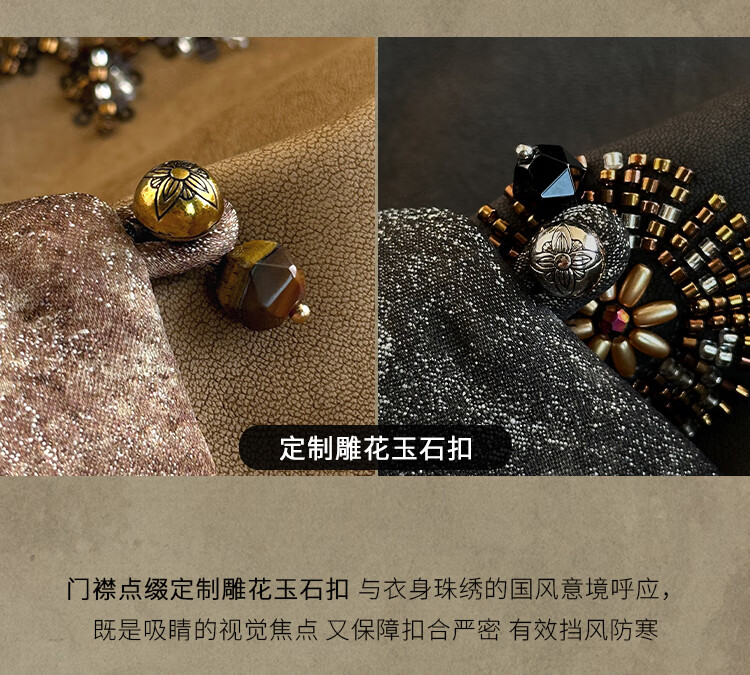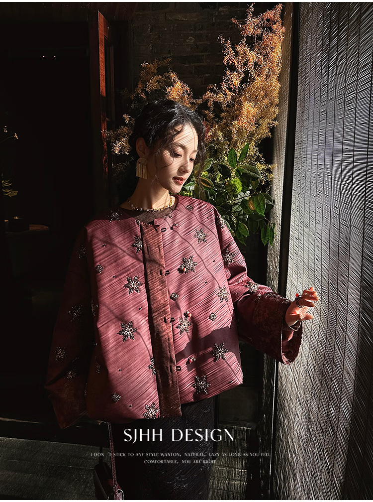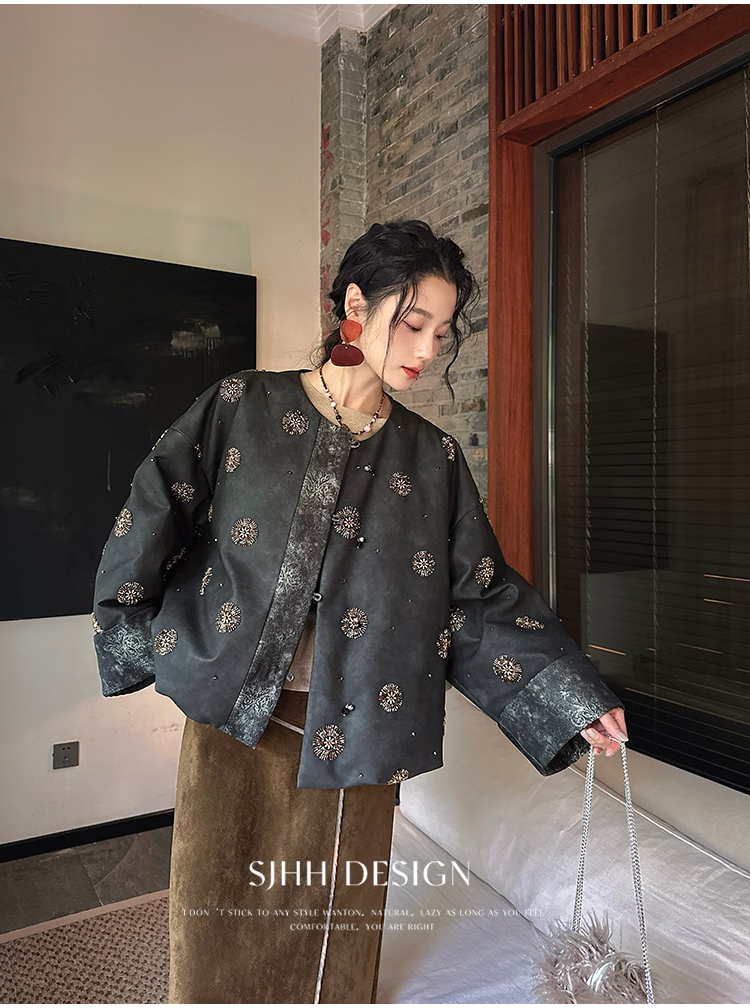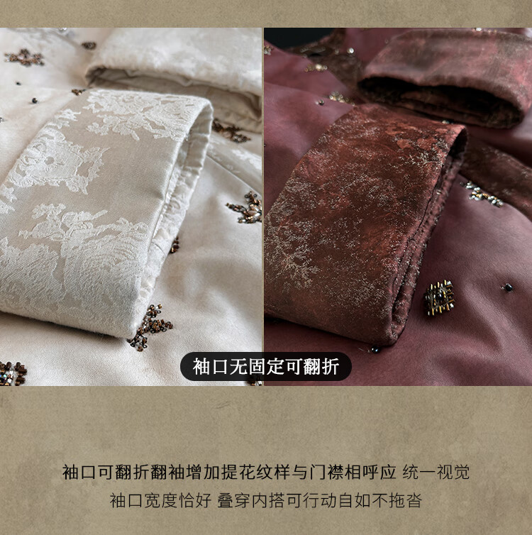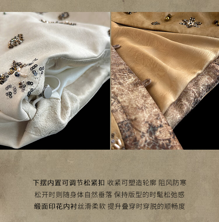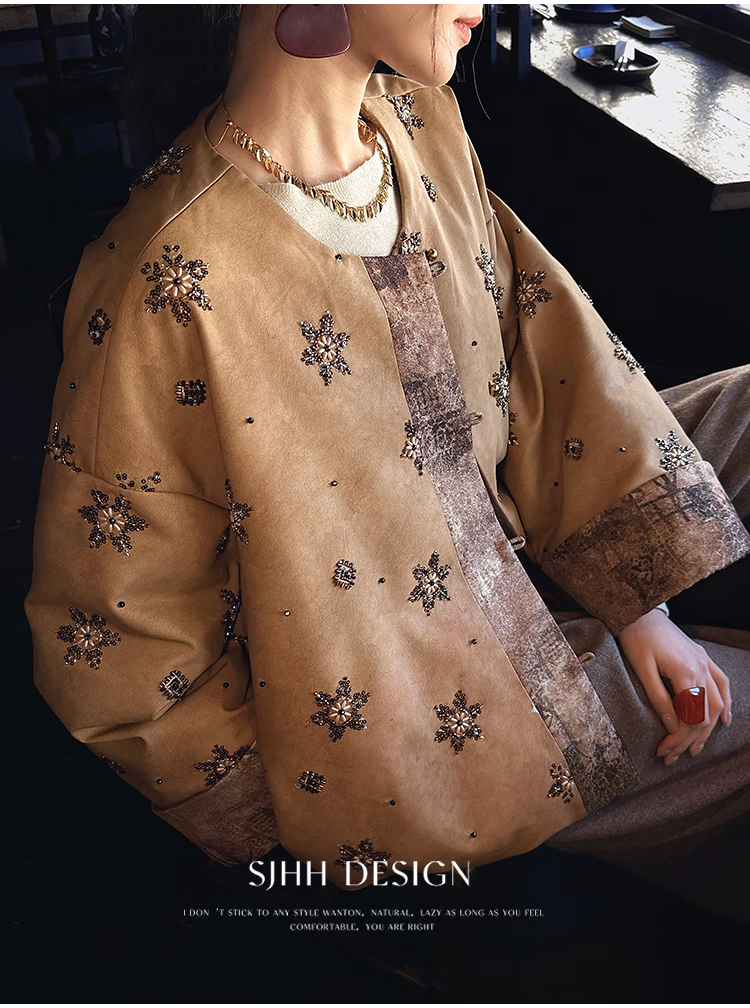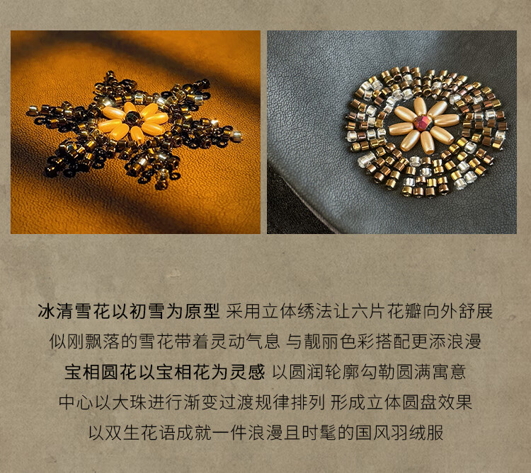 Sanji Black Flower Xin Nian New Chinese Style Short Bead Embroidered Down Jacket Winter Women's Jacket Very Beautiful Winter Clothes Moon White (Snowflake Bead Pattern) S