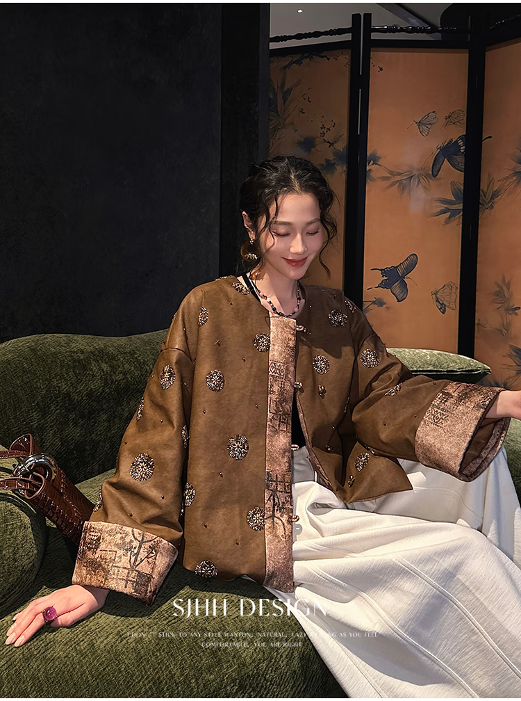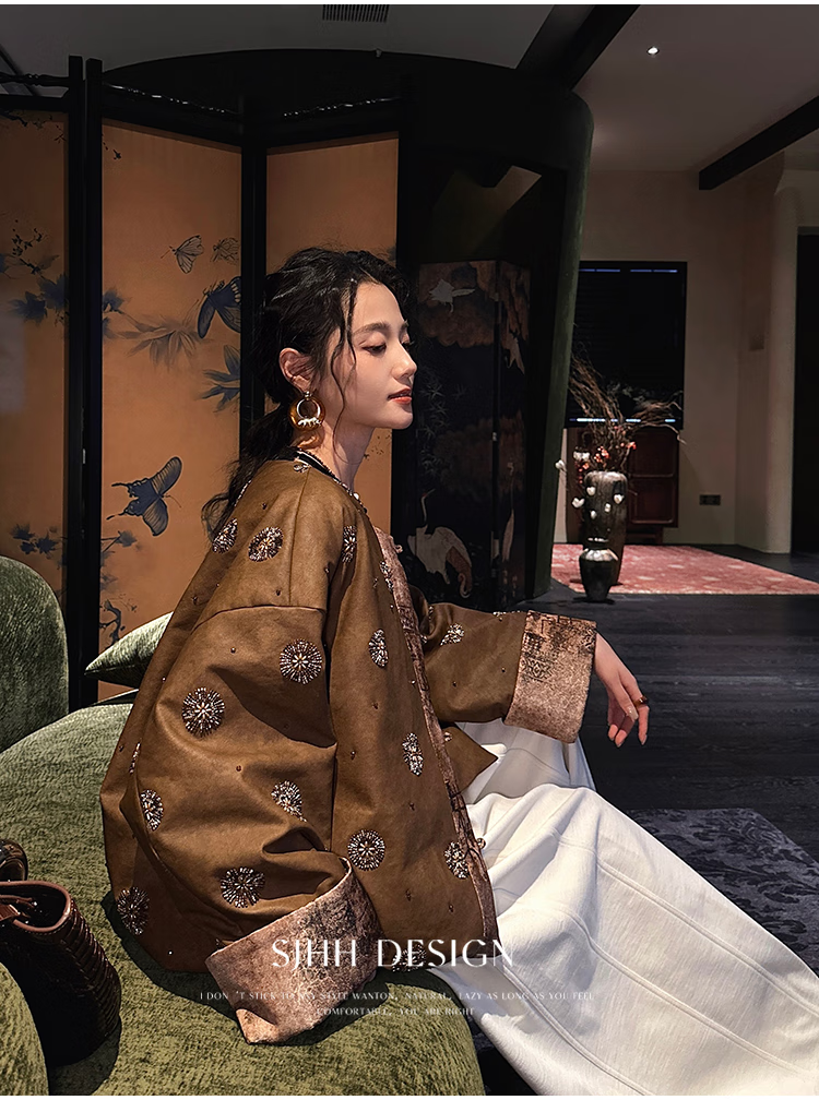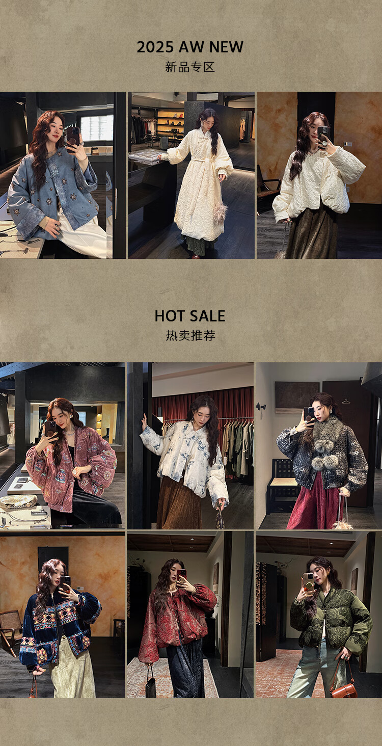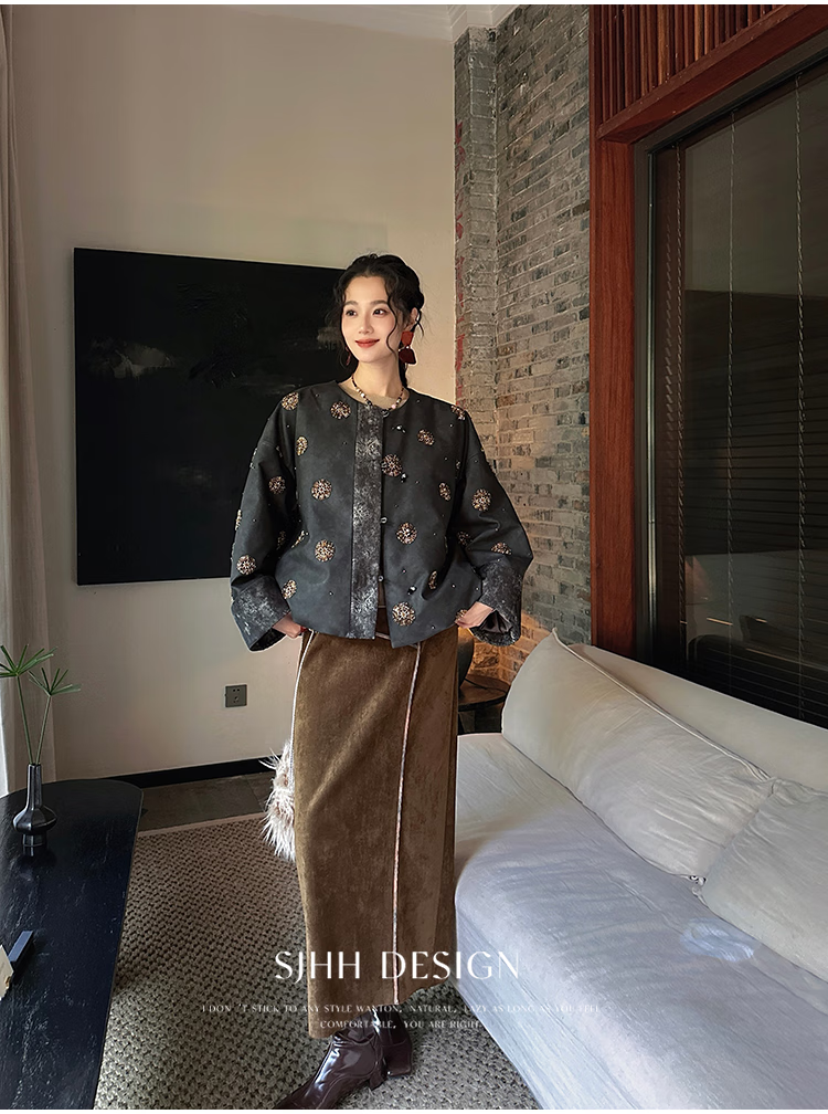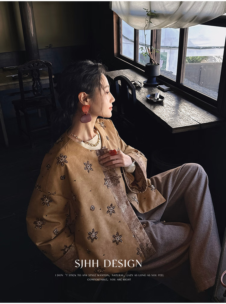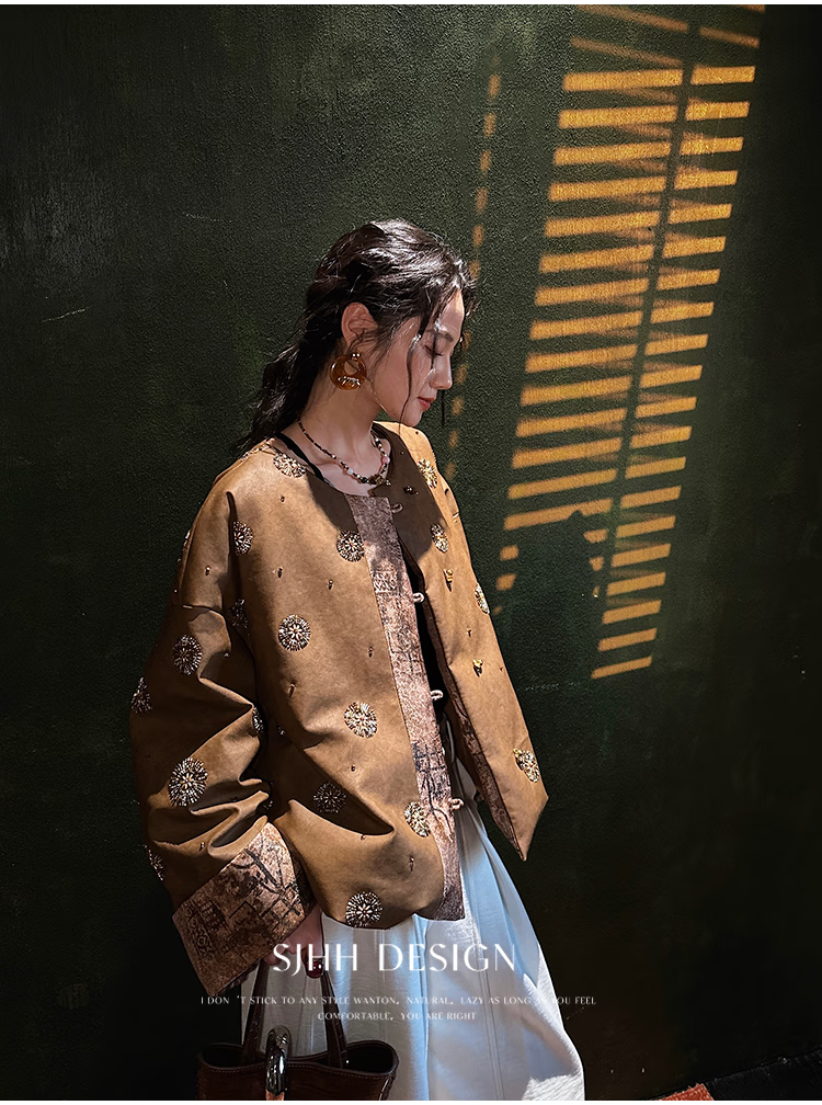 Sanji Black Flower Xin Nian New Chinese Style Short Bead Embroidered Down Jacket Winter Women's Jacket Very Beautiful Winter Clothes Moon White (Snowflake Bead Pattern) S