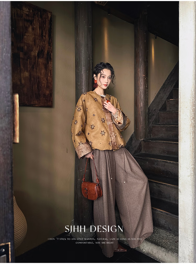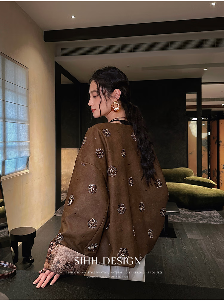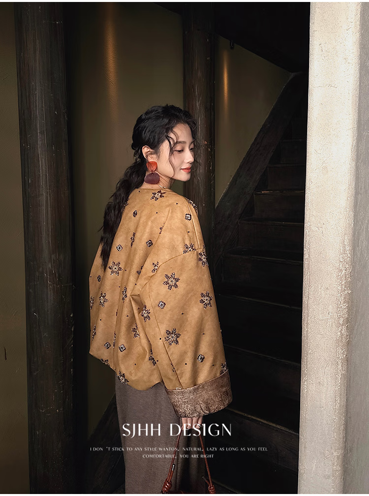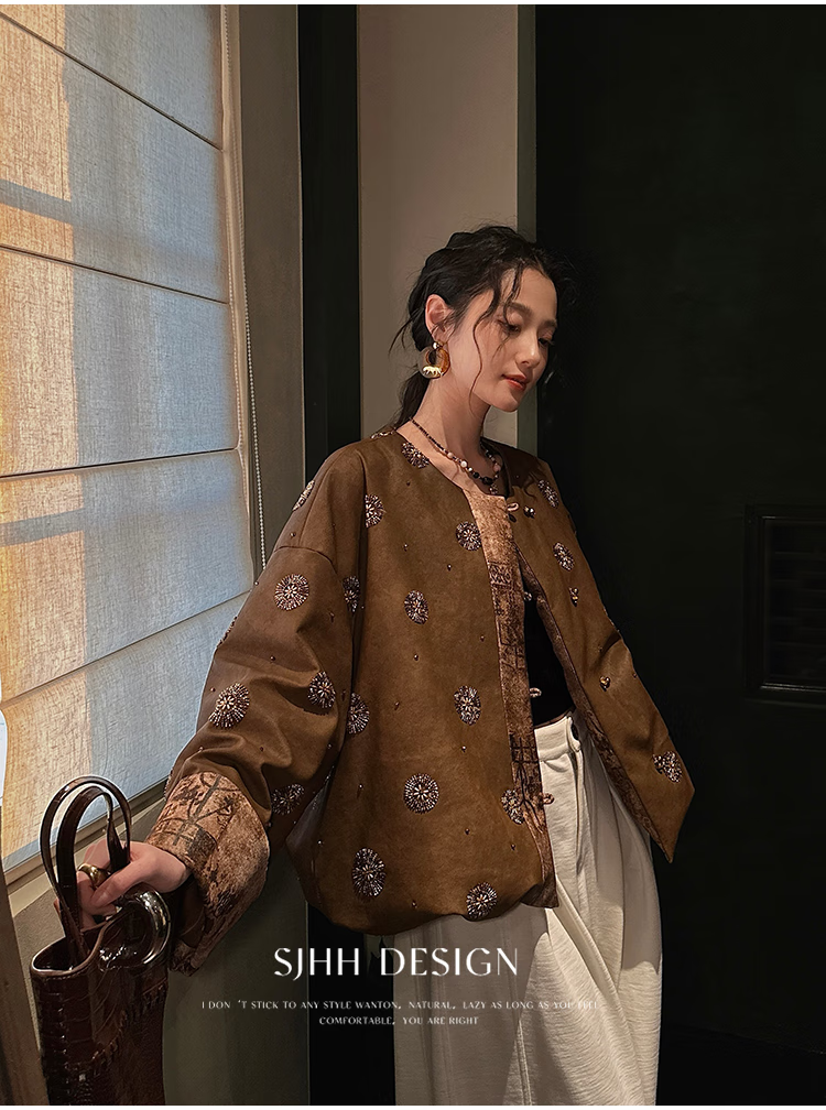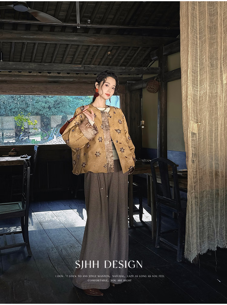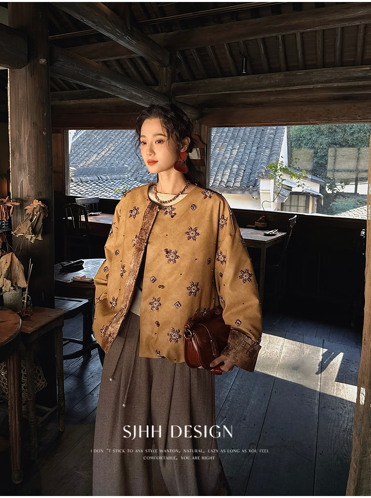 Sanji Black Flower Xin Nian New Chinese Style Short Bead Embroidered Down Jacket Winter Women's Jacket Very Beautiful Winter Clothes Moon White (Snowflake Bead Pattern) S