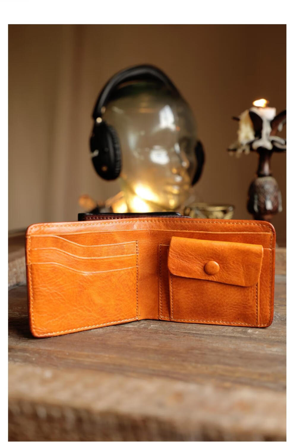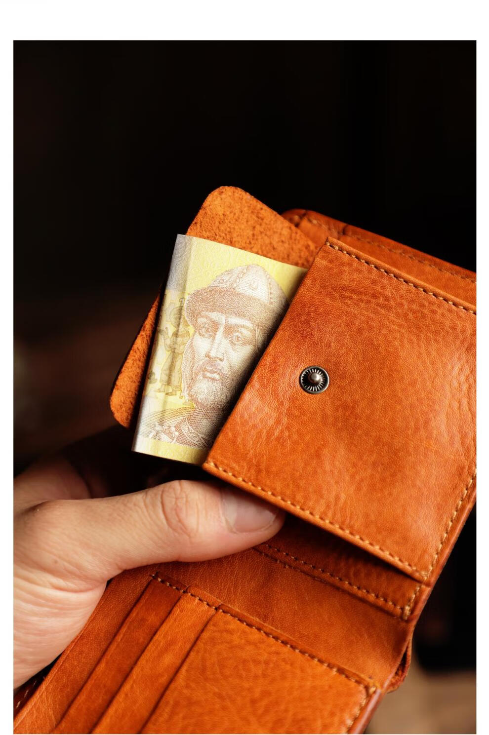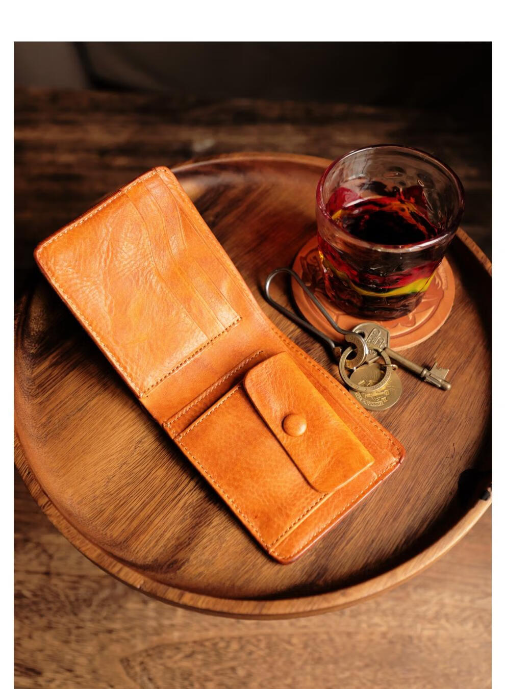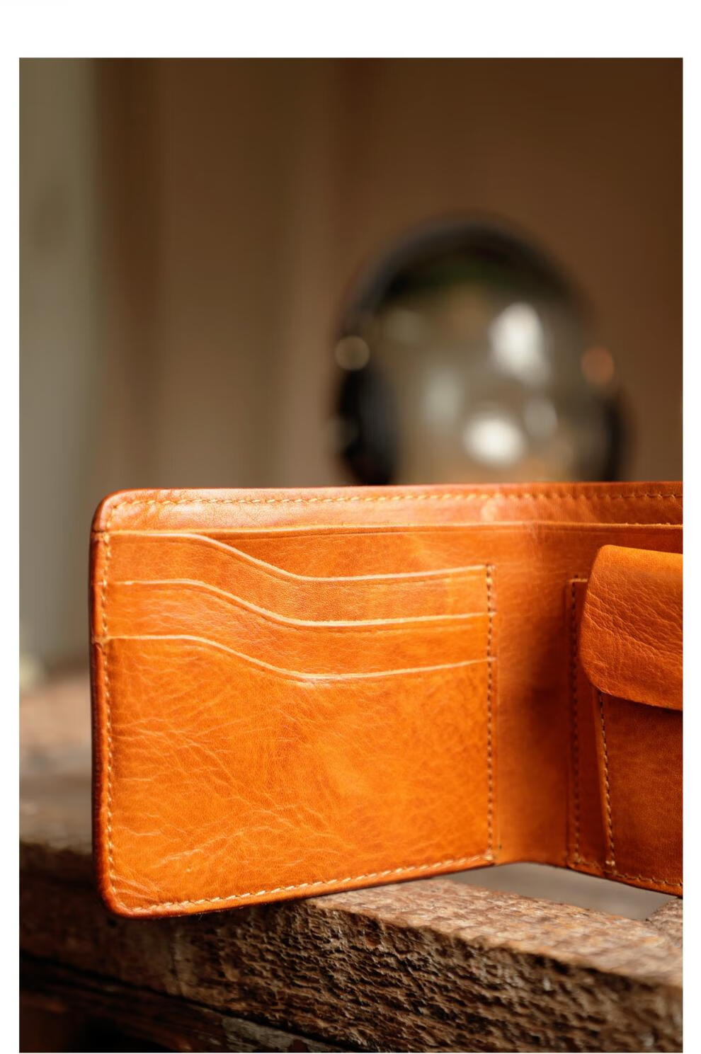 LISM international first-line brand washed top layer super soft cowhide handmade short retro wallet wallet card bag for men and women sunset yellow