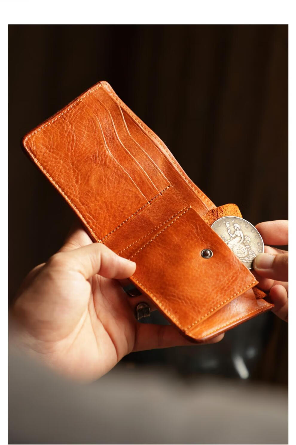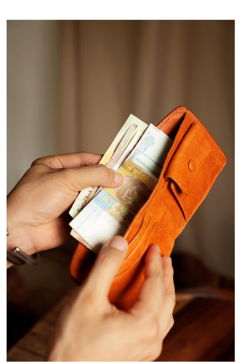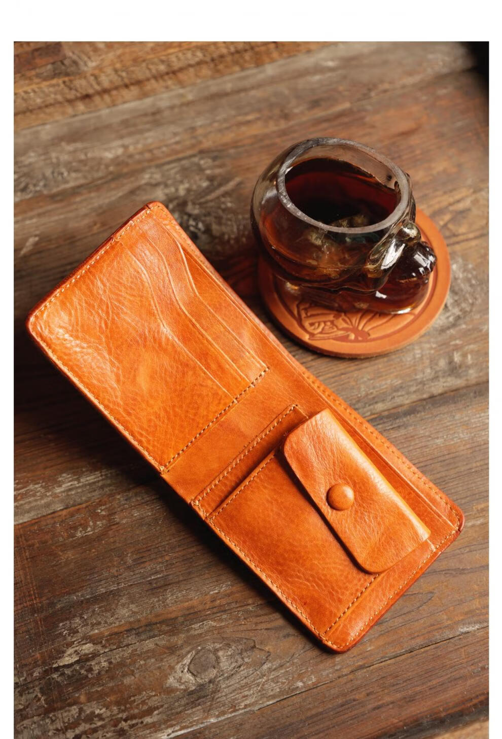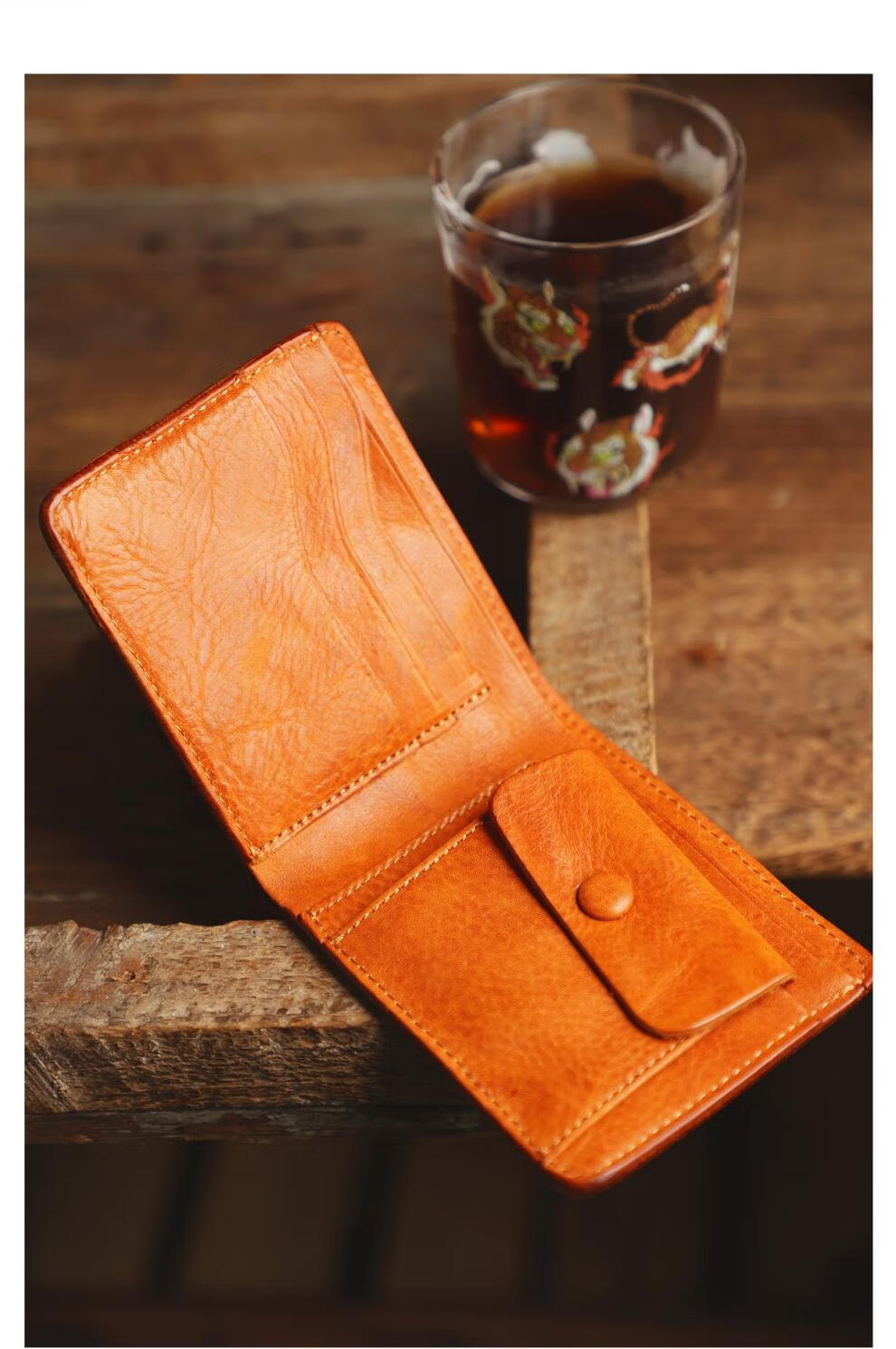 LISM international first-line brand washed top layer super soft cowhide handmade short retro wallet wallet card bag for men and women sunset yellow